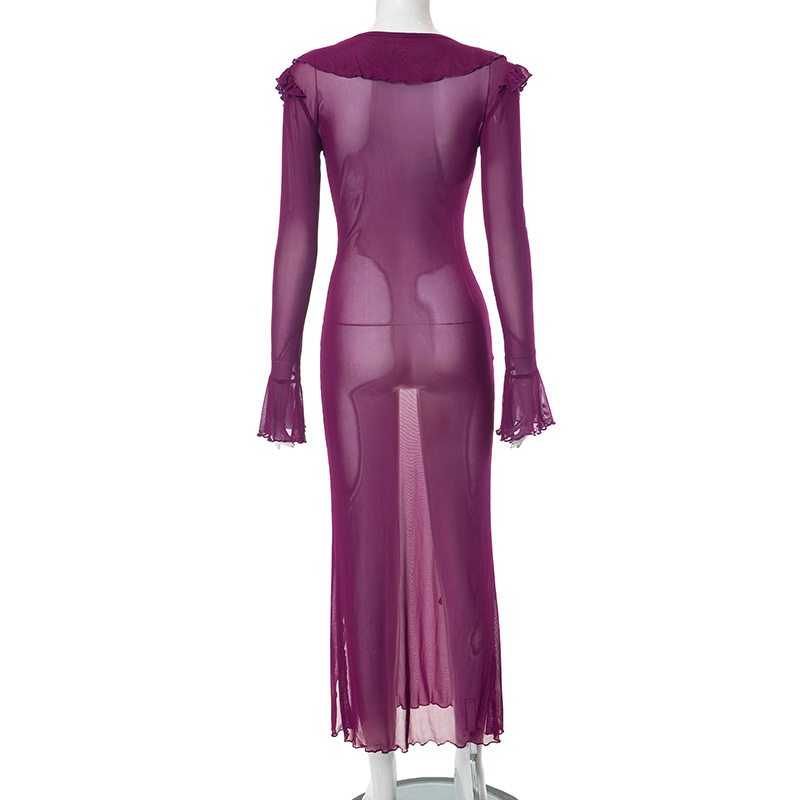 Elegant Black Sheer Beach Dress Women Sexy Flare Sleeve Mesh Tassel Bodycon Summer Dress Night Party Long Dress Cover-Ups