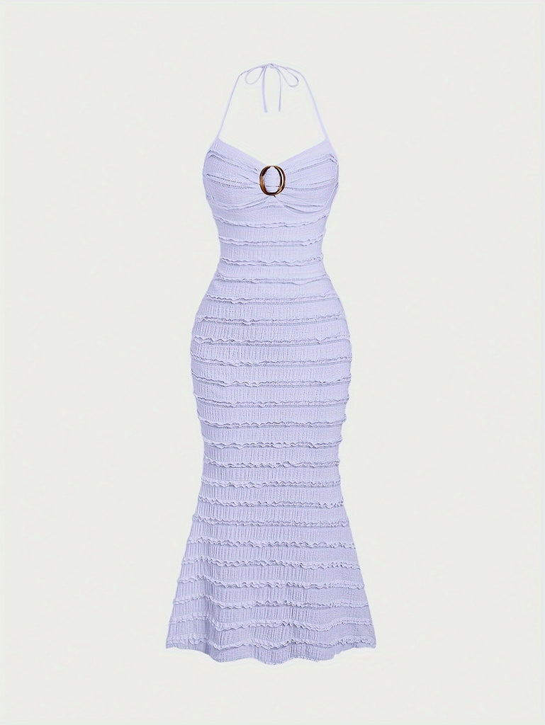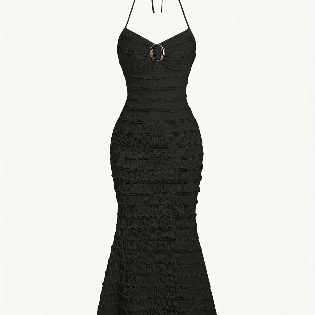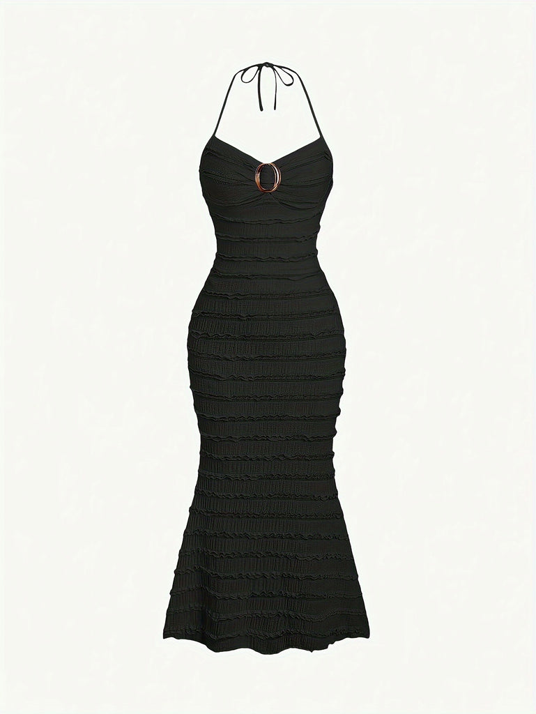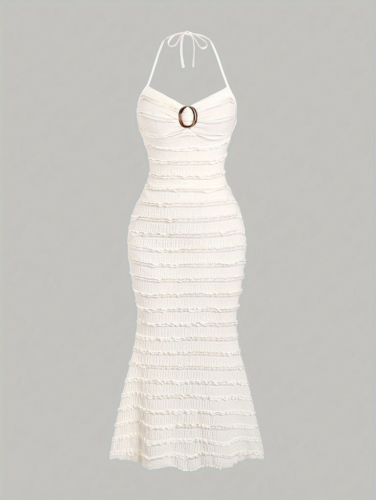 Elegant Mermaid Cami Dress by [Brand Name] - Stunning Ring Detail, V-Neckline, Stretchy Fabric for Comfort, Machine Washable, Perfect for Spring, Summer, and Fall Seasons