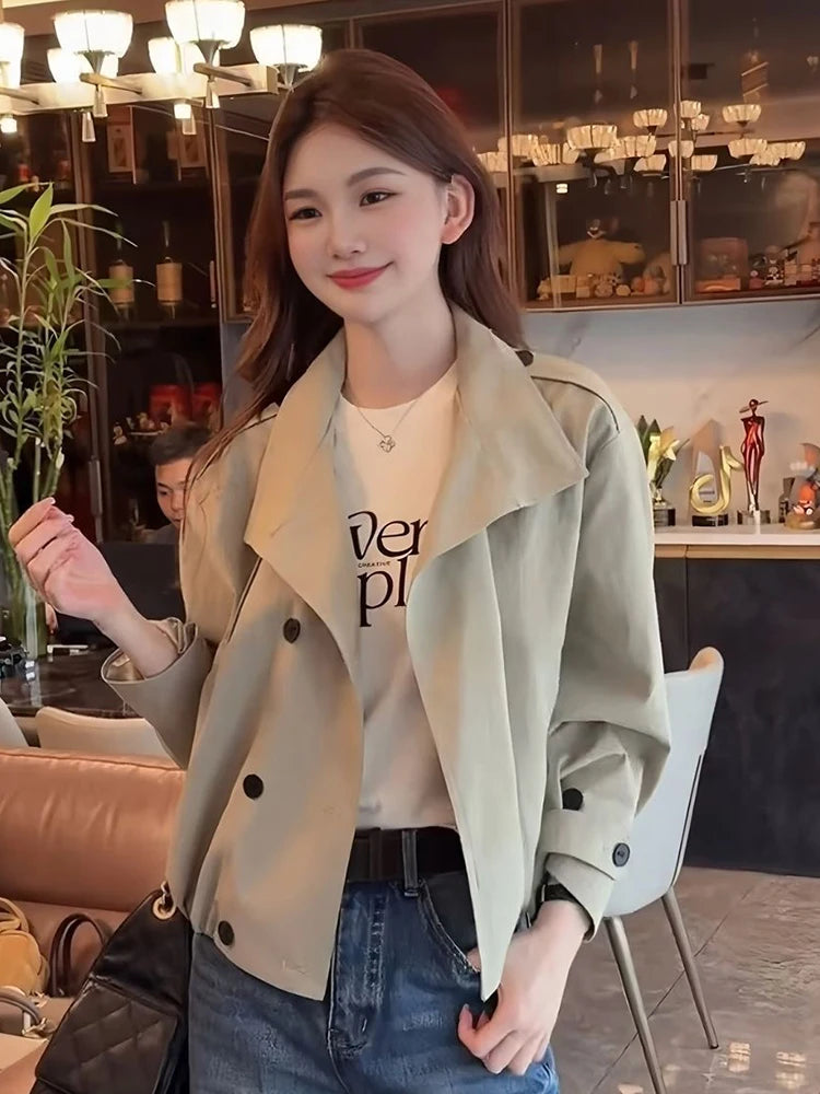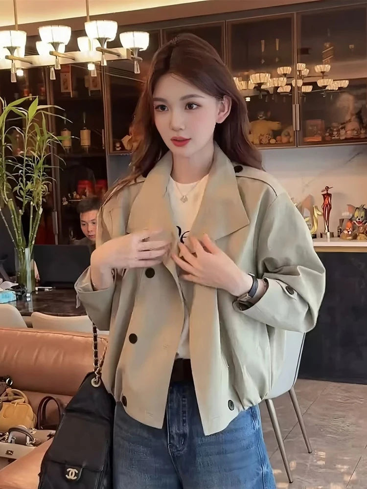 England Stand Collar Jacket Women Loose Long Sleeve Vintage Short Coat Fall Causal Double Breasted Lady Elegant Design Tops