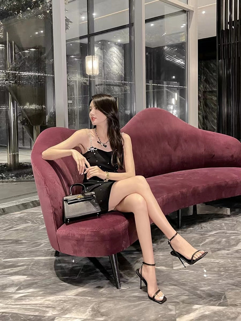 Fairy Style Sexy Square Toe Women's Sandals Summer Stiletto Temperament High Heels Women Office Career Fashion Shoes PU