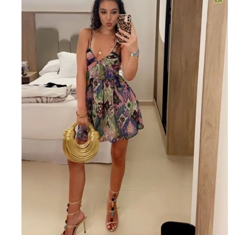 Fashion Bohemia Women Dress New V-neck Elastic Waist Fashion Summer Slip Dress Aesthetic Retro A-line Print Short Dress