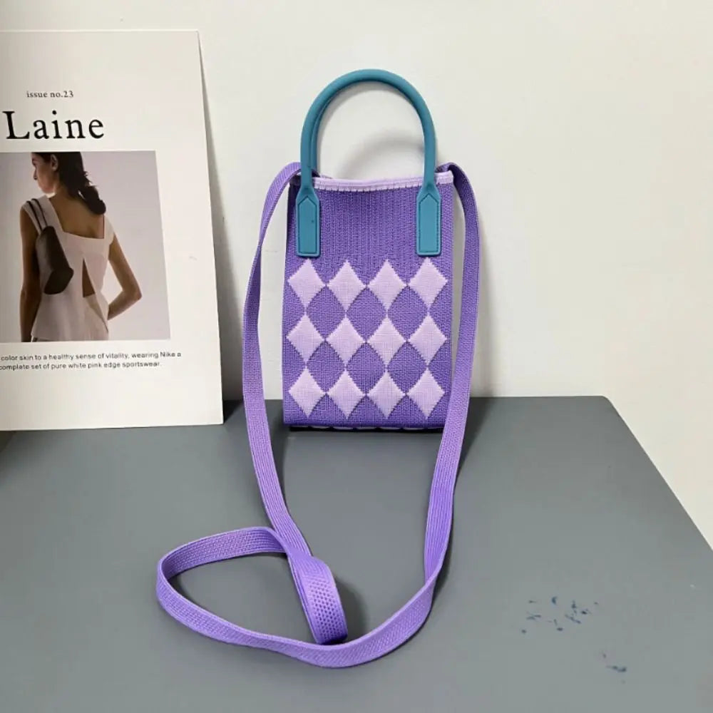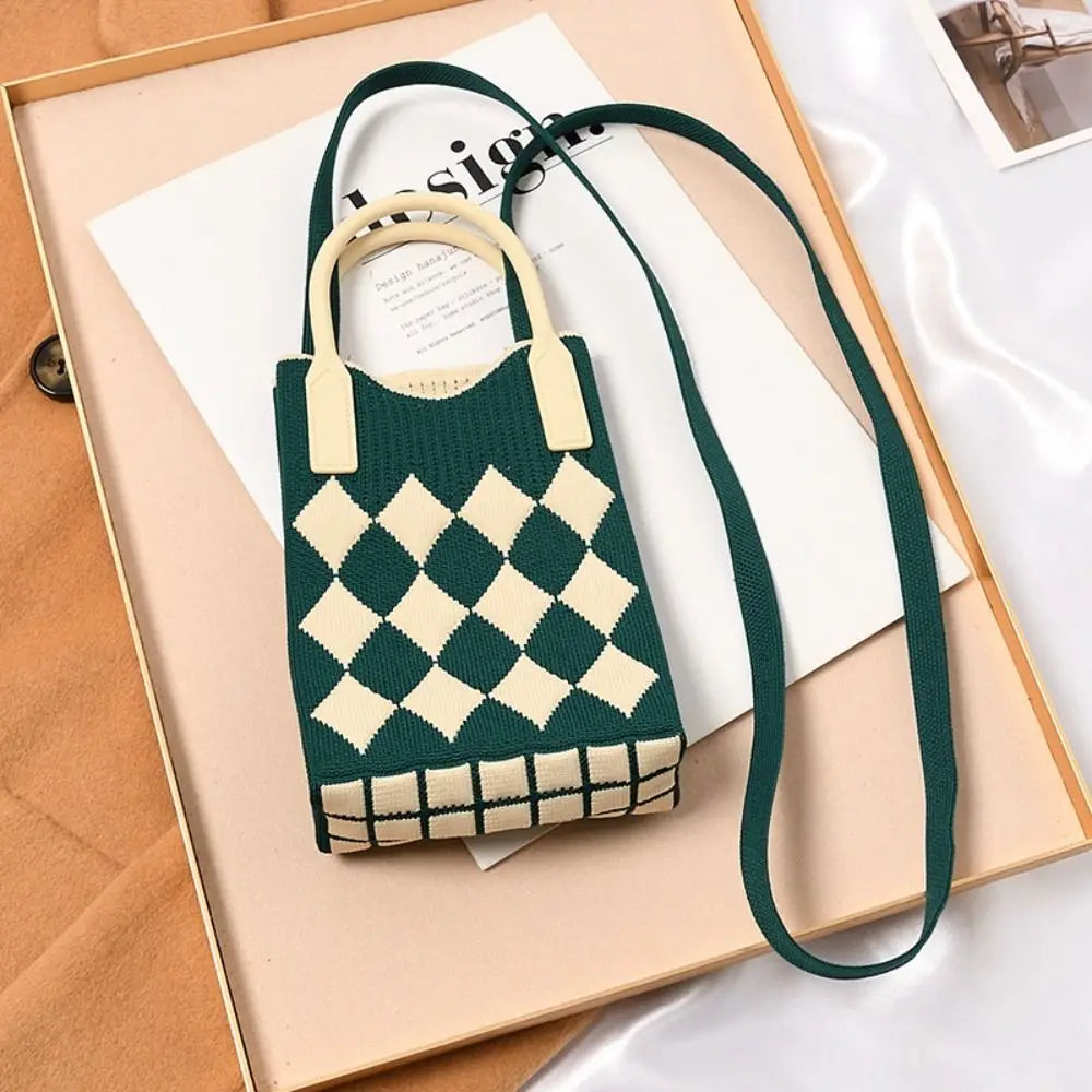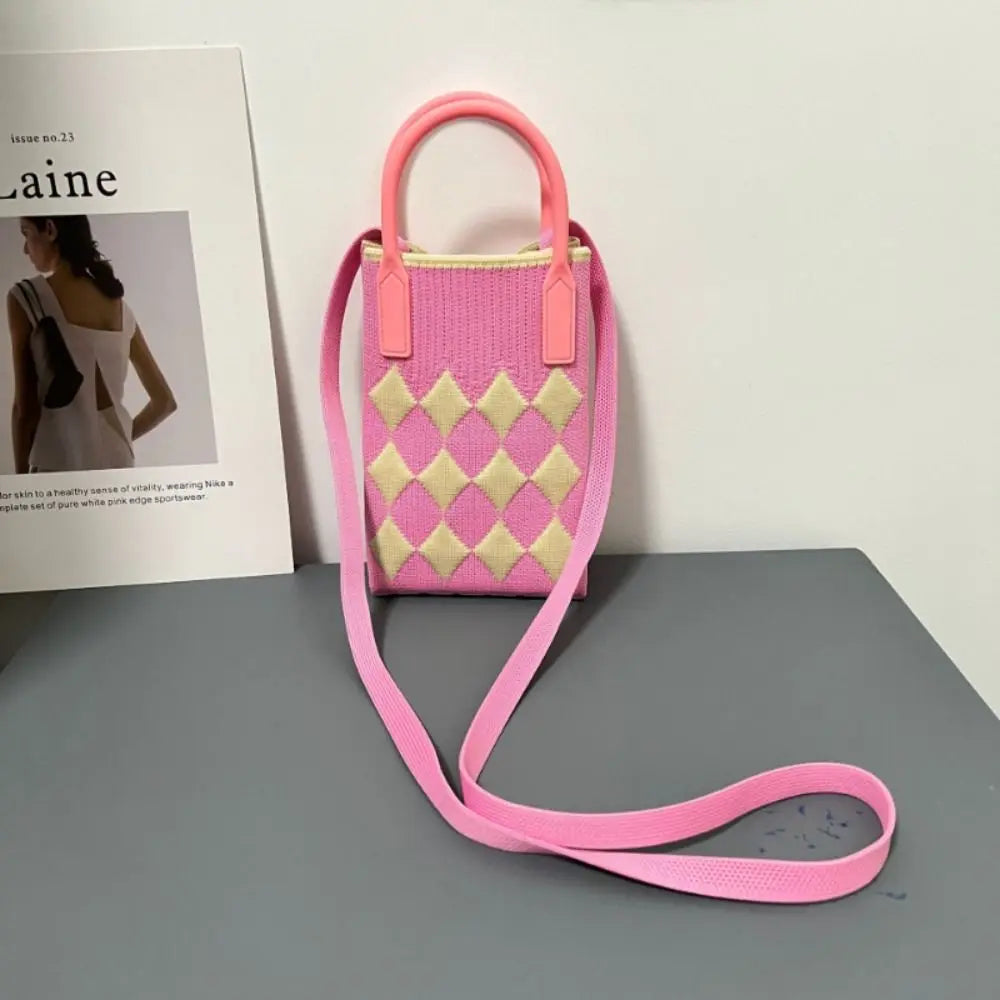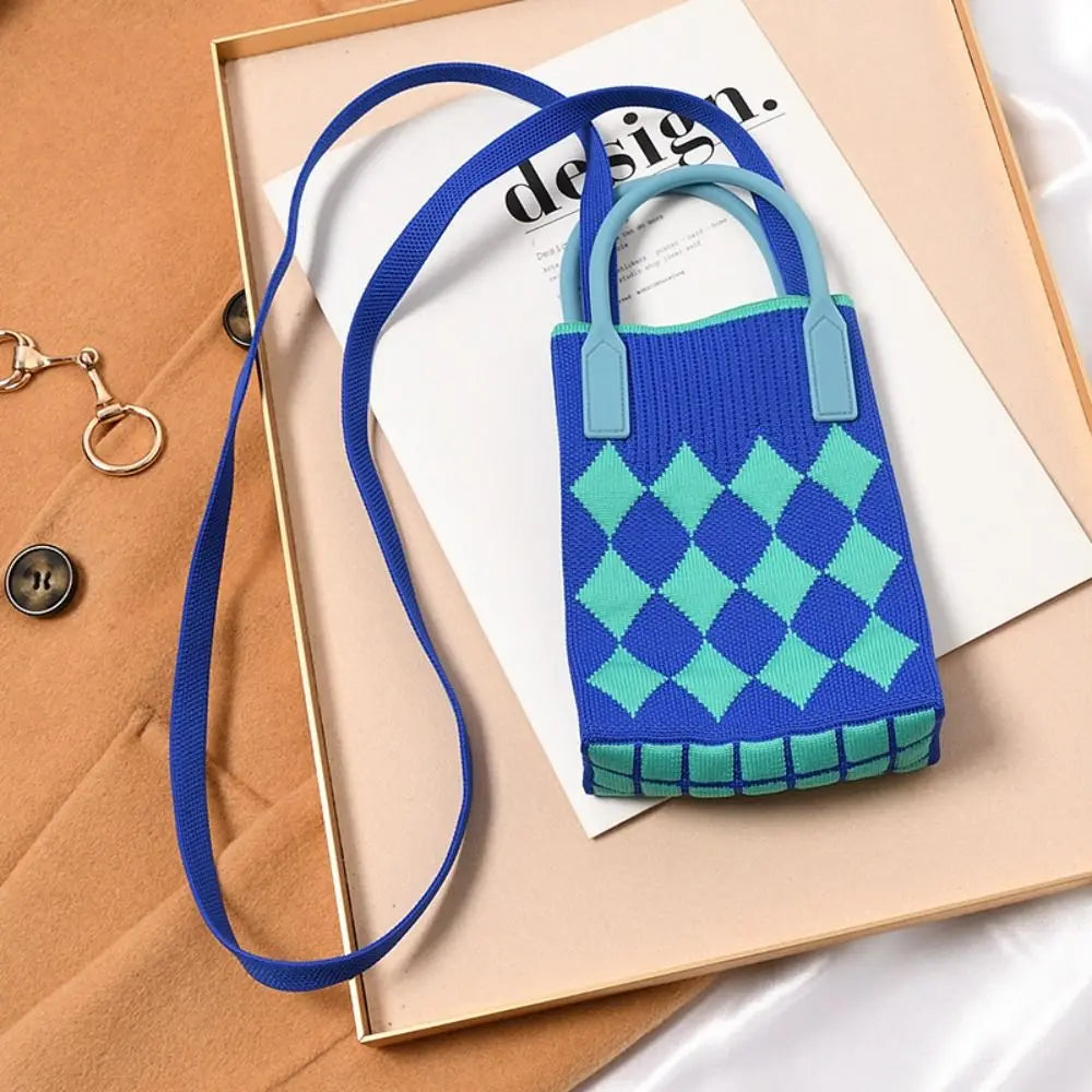 Fashion Geometric Pattern Mini Shoulder Bag Women's Knitted Handbag Female Woven Shopper Purse Design Chain Crossbody Bag