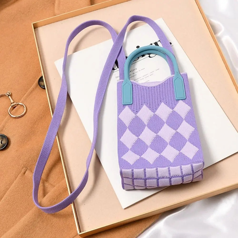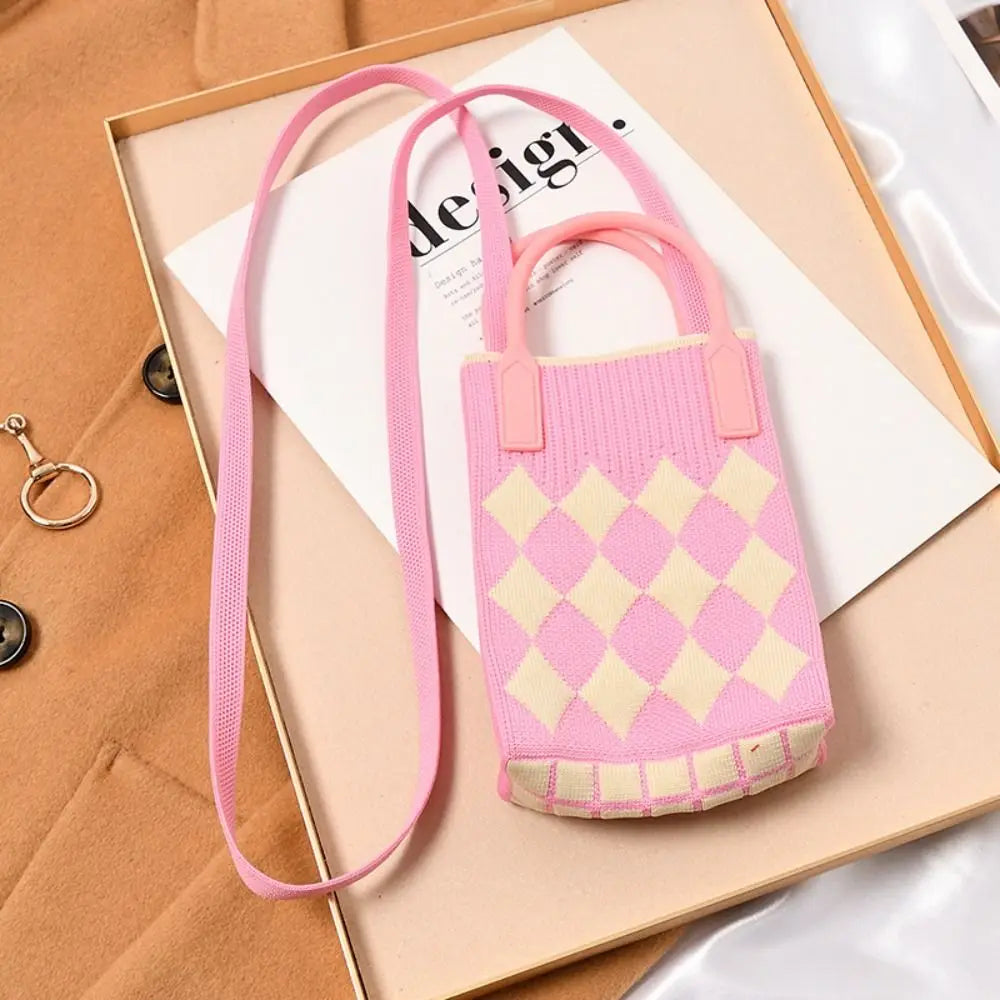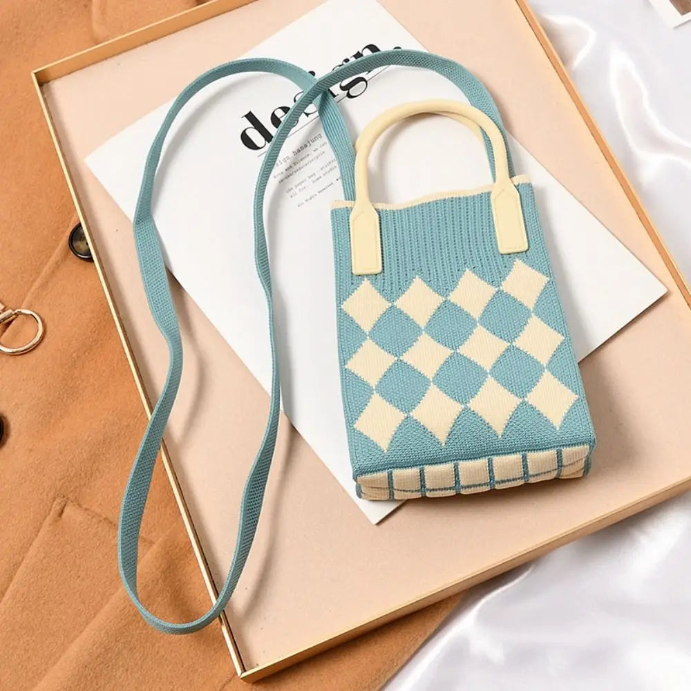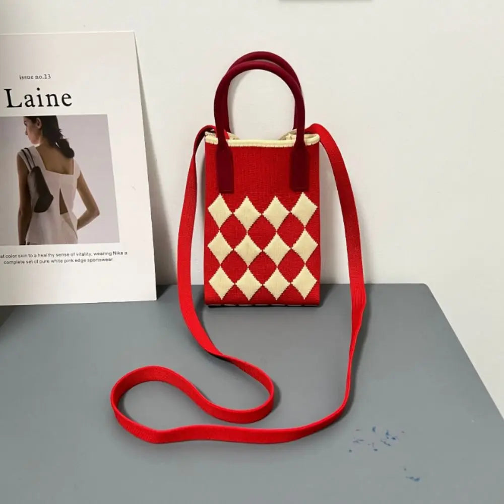 Fashion Geometric Pattern Mini Shoulder Bag Women's Knitted Handbag Female Woven Shopper Purse Design Chain Crossbody Bag