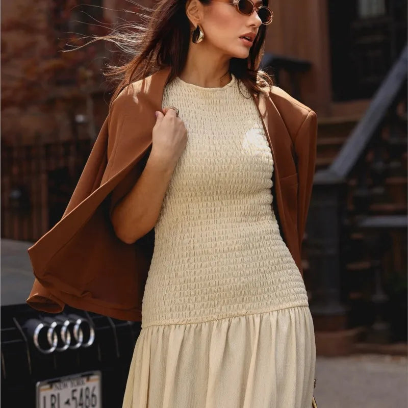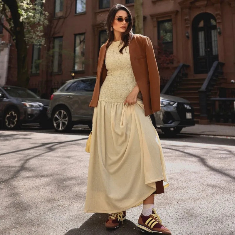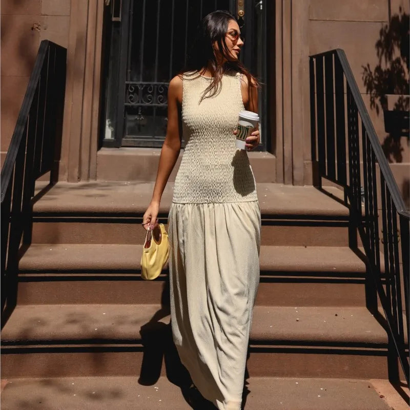 Fashion Simple Design Patchwork Long Dress New Sleeveless A-line Pleat Elegant Chic Summer Dress Streetwear Female Clothing