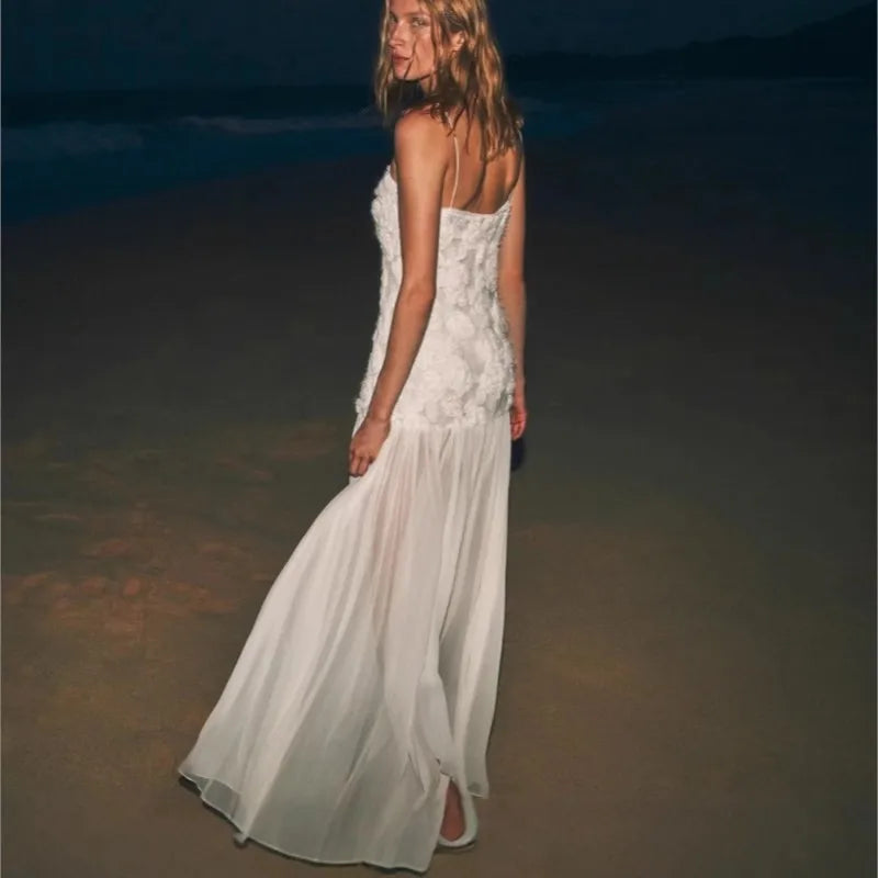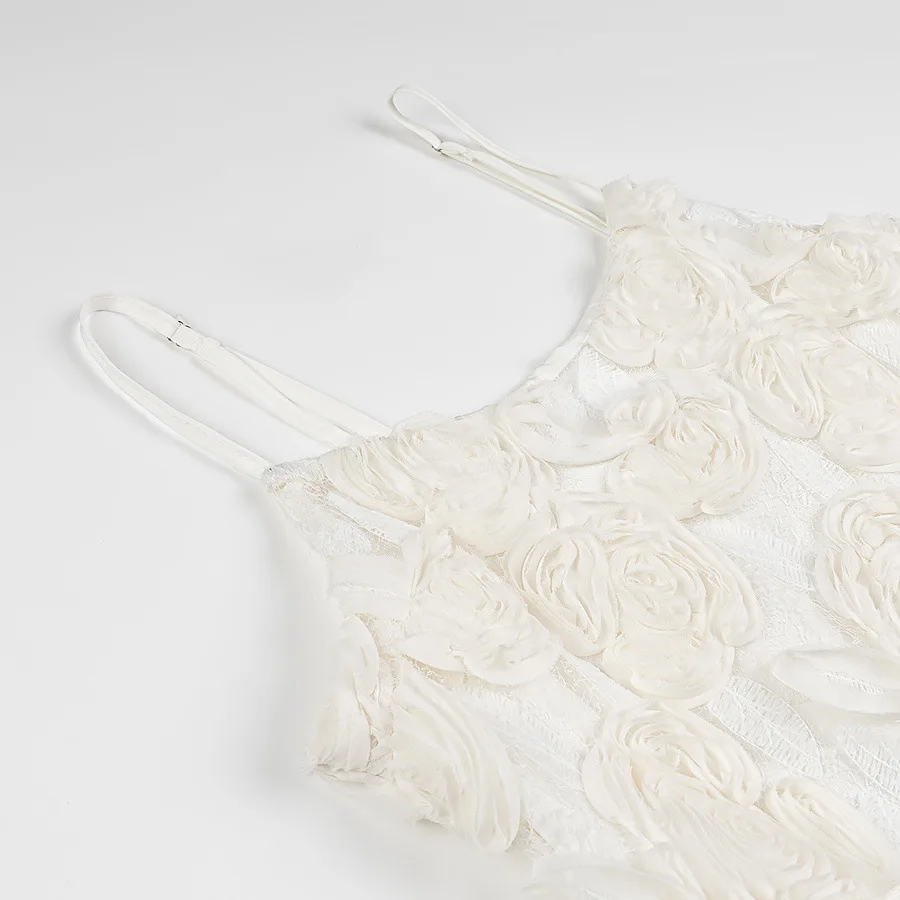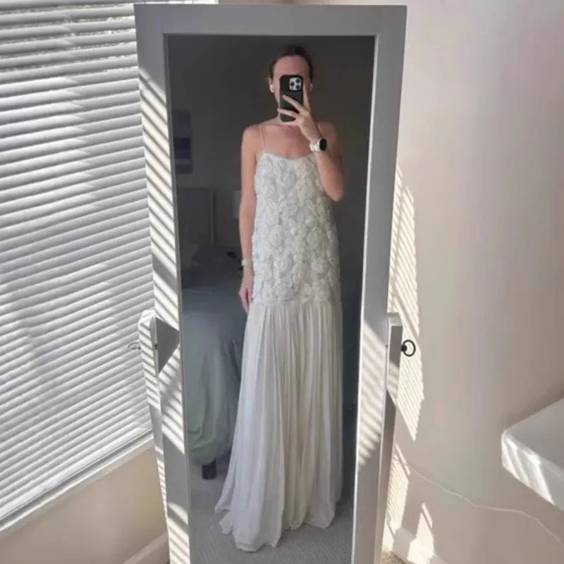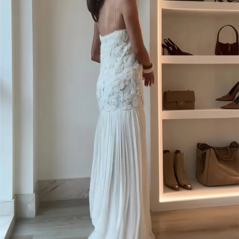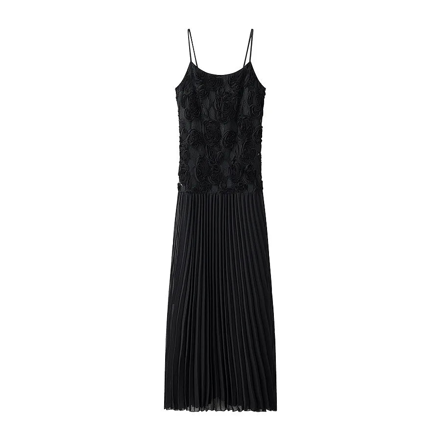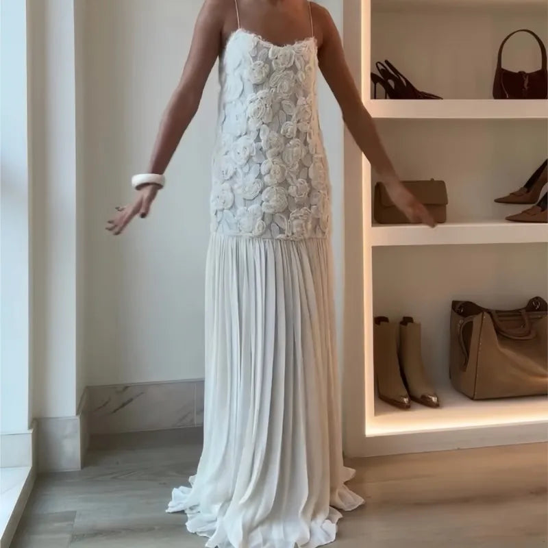 Fashion Sweet 3D Flower Patchwork Long Dress Chiffon Solid Color Pleated Party Dress 2025 New Summer Vacation Woman Clothing