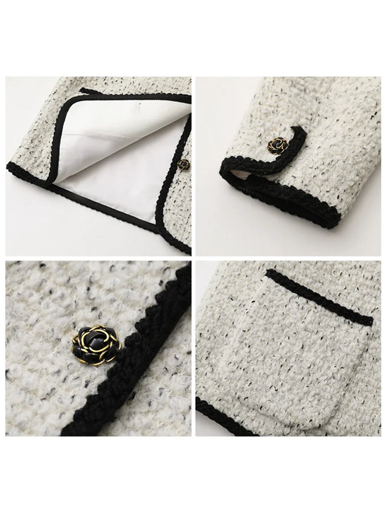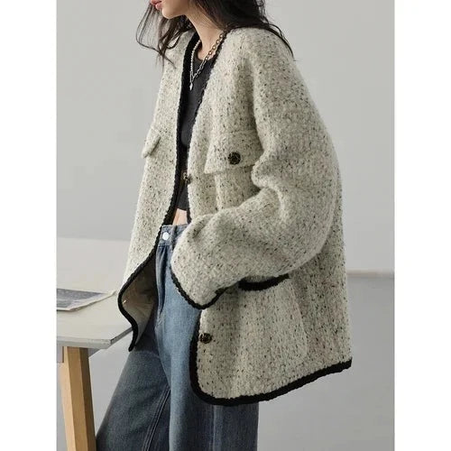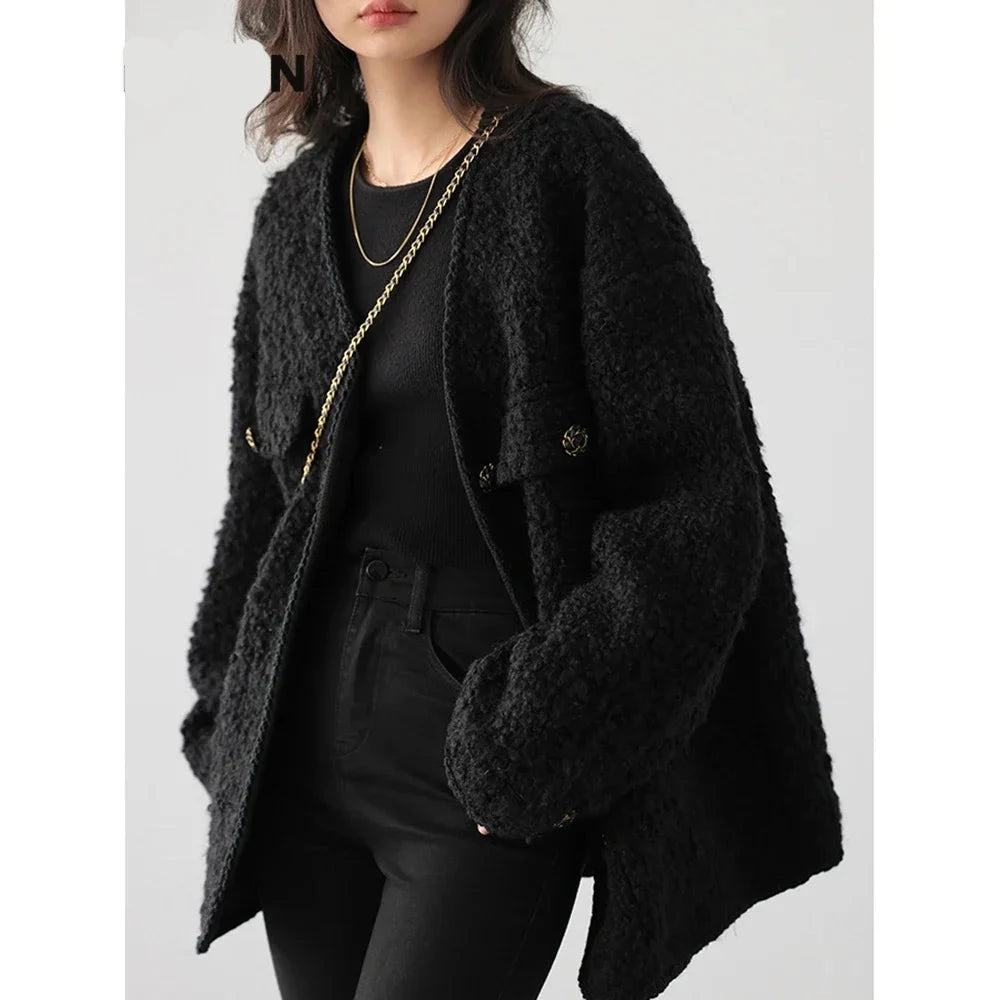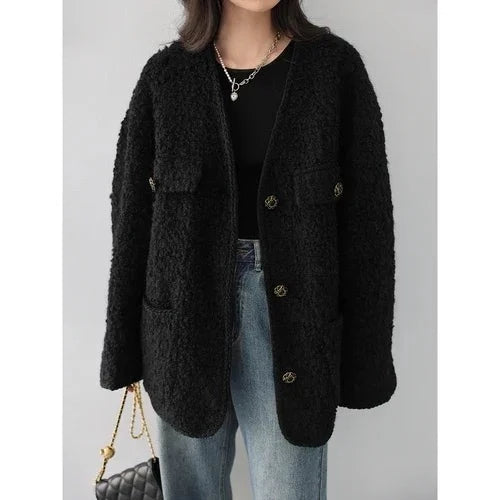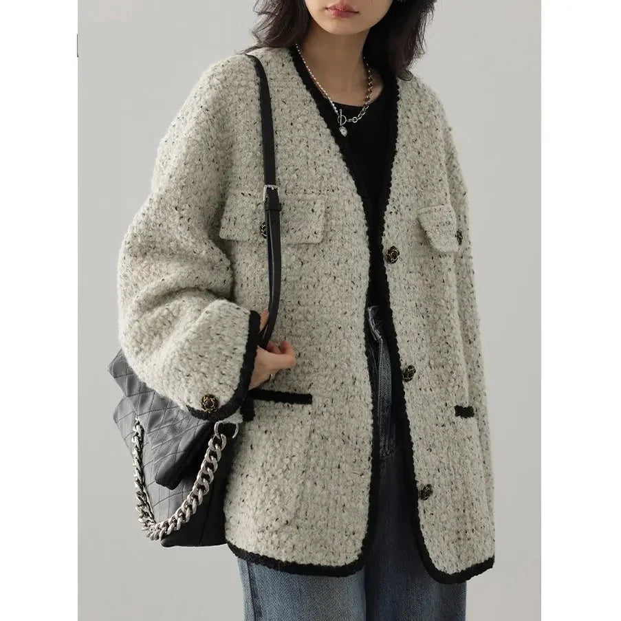 Fashion Women's Wool Coat Single Breasted Vintage Jacket V-Neck Office Lady Overcoat Female Tops Spring Autumn