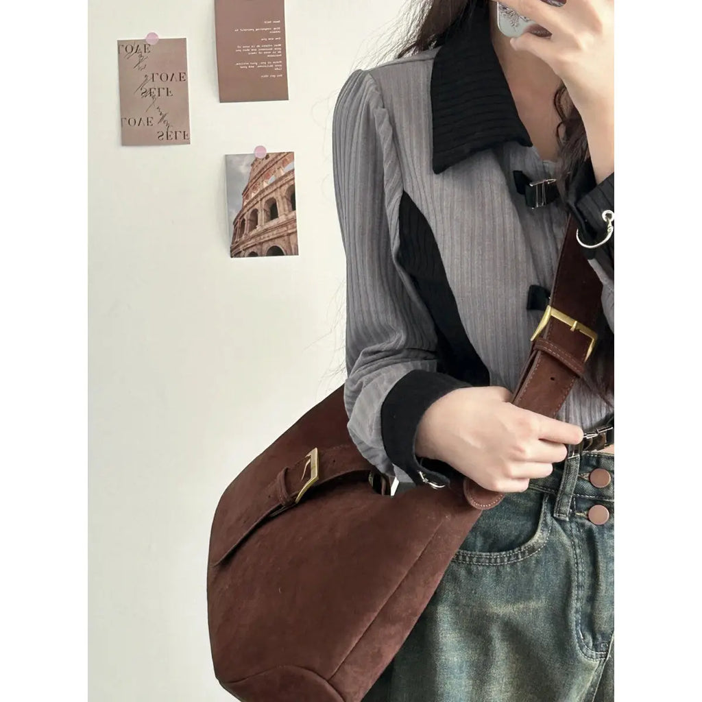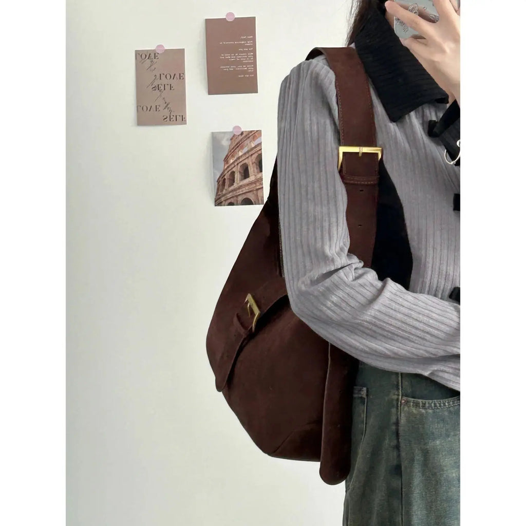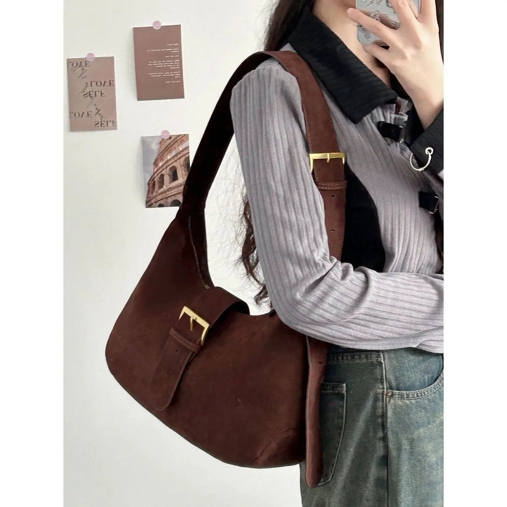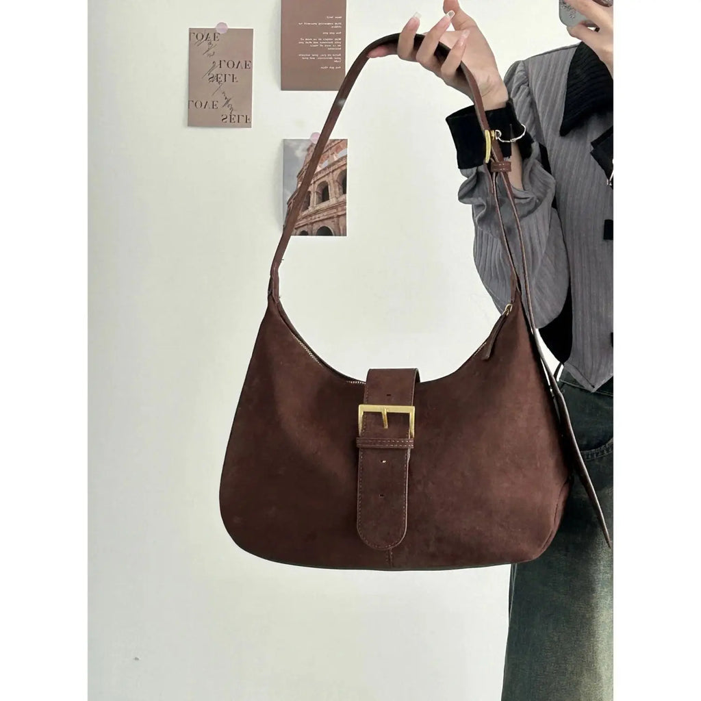 Faux Suede Women's Shoulder Crossbody Bag Matte Leather Female Underarm Bags Retro Design Ladies Large Handbags Saddle Bag Tote
