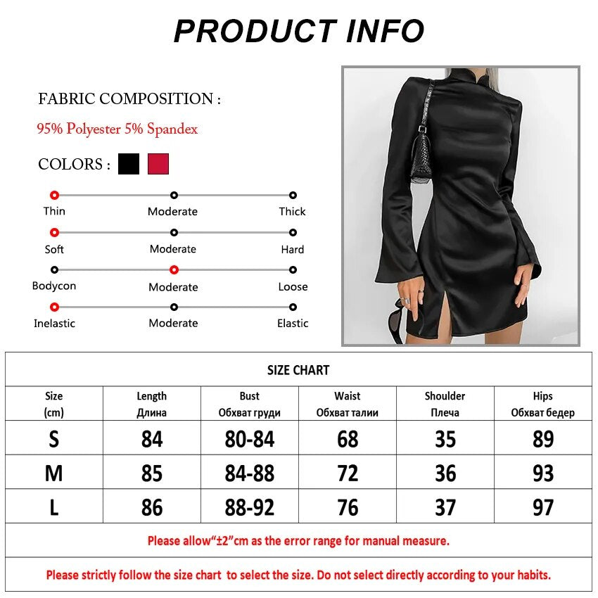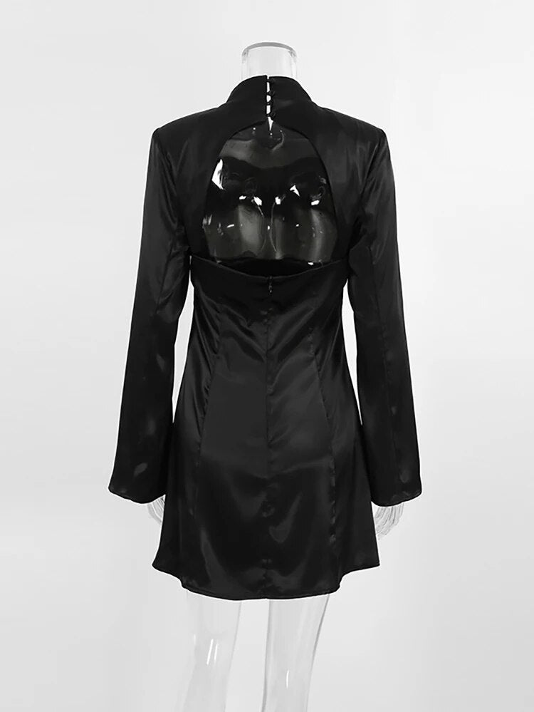 Flare Long Sleeve Black Backless Dress Women Club Slit Dress Spring Stand Collar Evening Mini Slim Dress Ladies