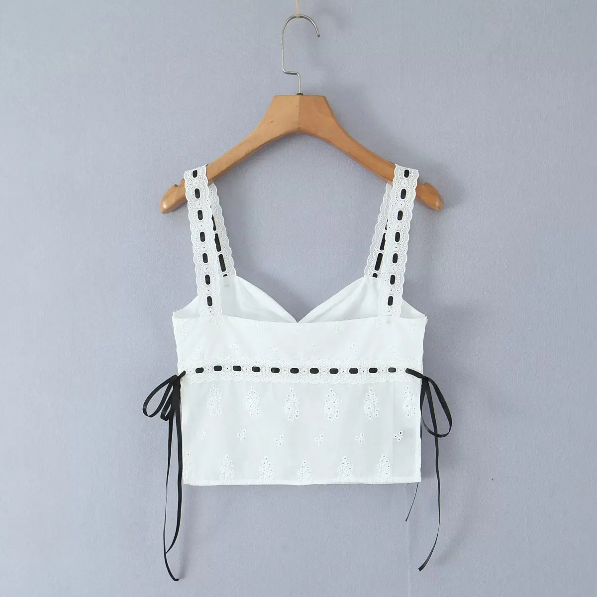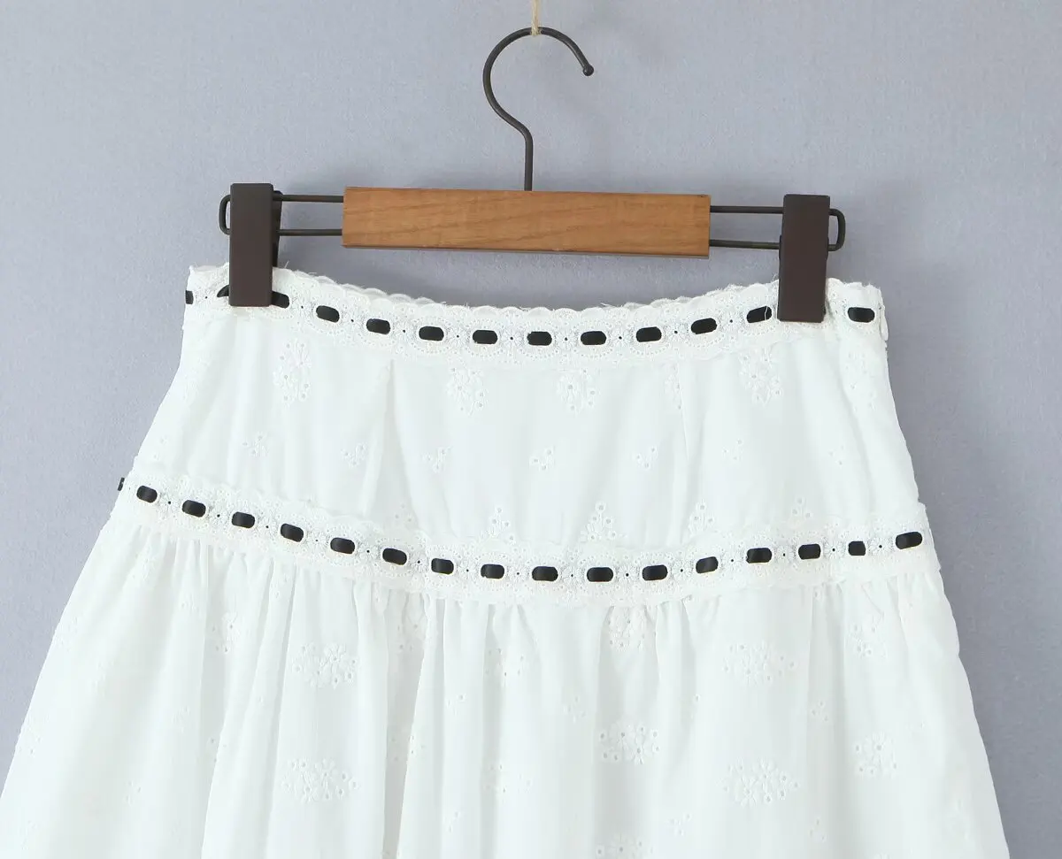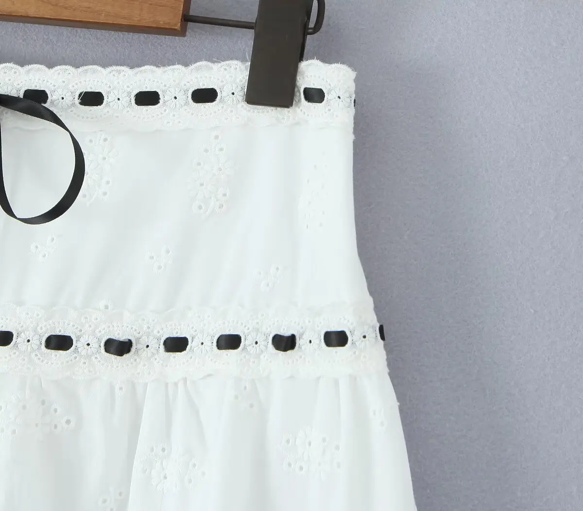 flower embroidery v-neck lace-up tank top and long skirt summer outfits 2pc patchwork white casual vacation beach women set