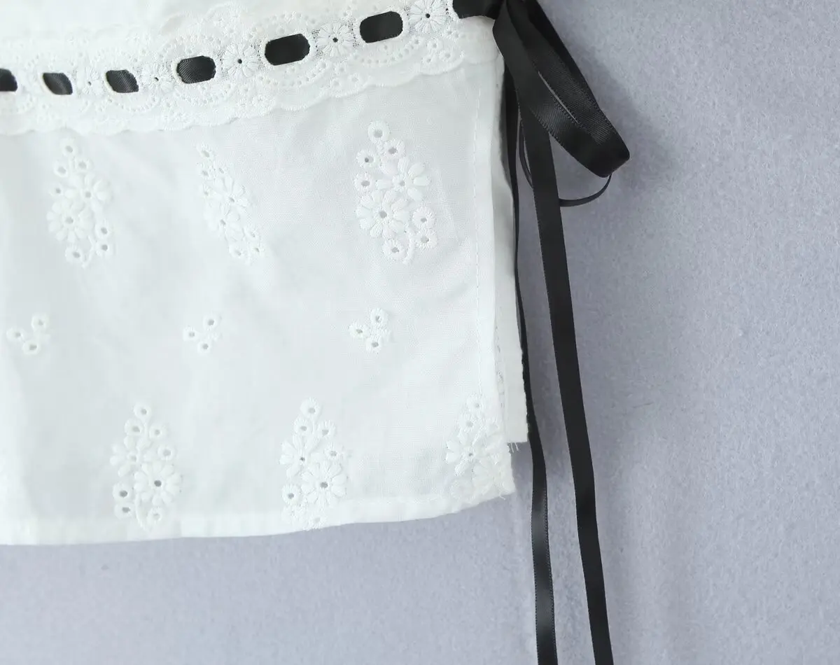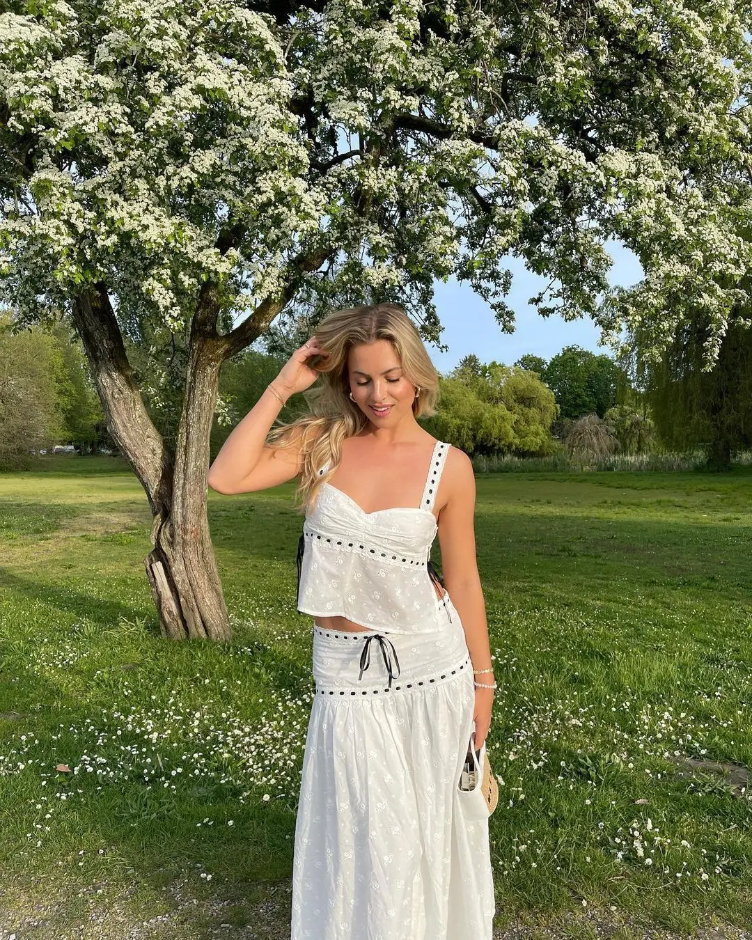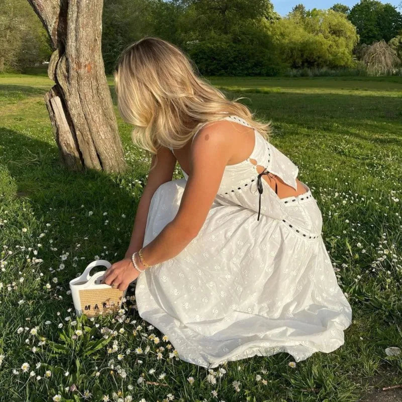 flower embroidery v-neck lace-up tank top and long skirt summer outfits 2pc patchwork white casual vacation beach women set