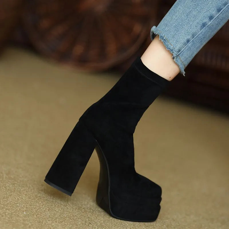 Footwear Chunky Women's Ankle Boots Very High Heels Booties Heeled Short Shoes for Woman Suede Platform Sock with Free Shipping