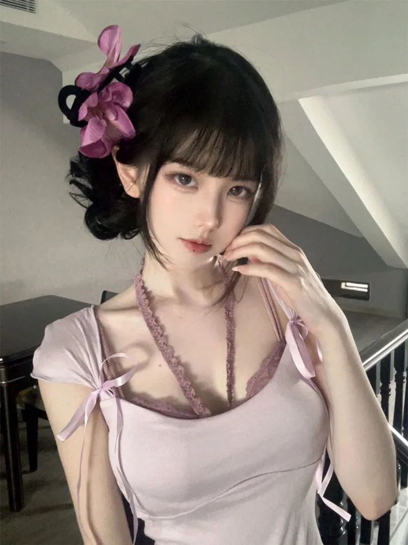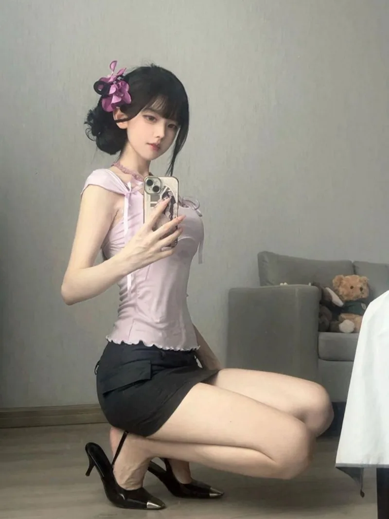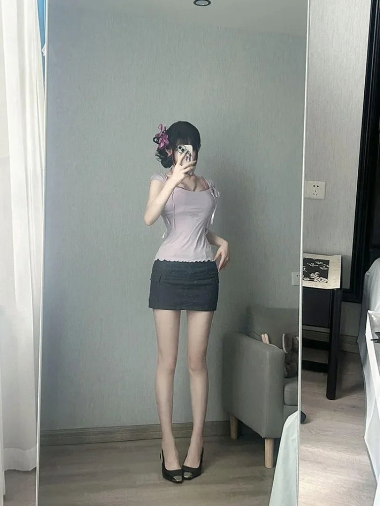 French Elegant All Match Square Off The Hsoulder Tops Y2k Aesthetic Japan Haeajuku Summer Base Girl Clothing Sweet Punk Tees
