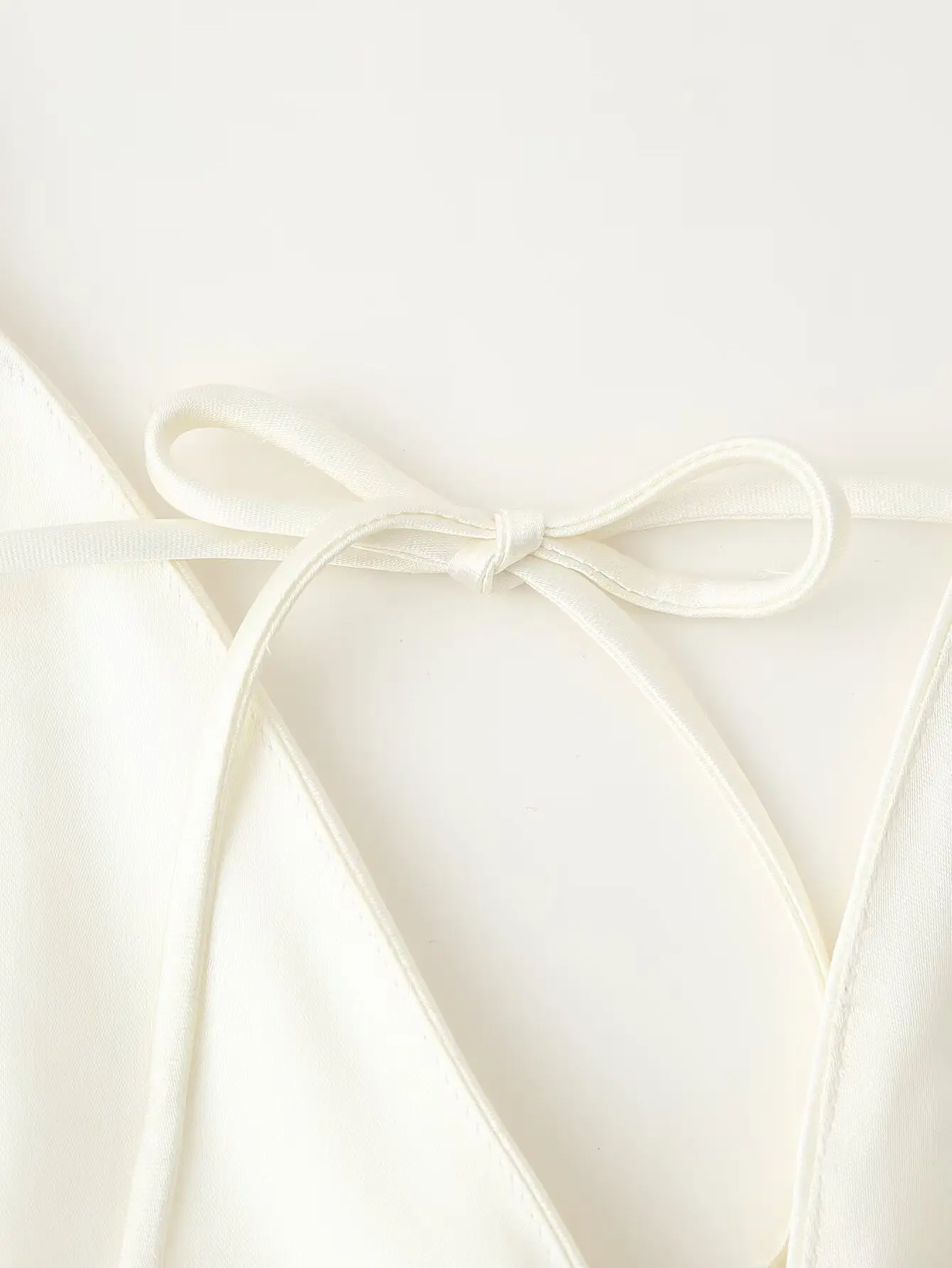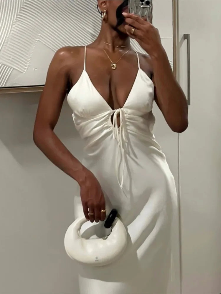 French Vacation Satin Long Dress Fashion Backless Sexy Slip Dress For Women New Light Beige Party Beach Summer Vestidos