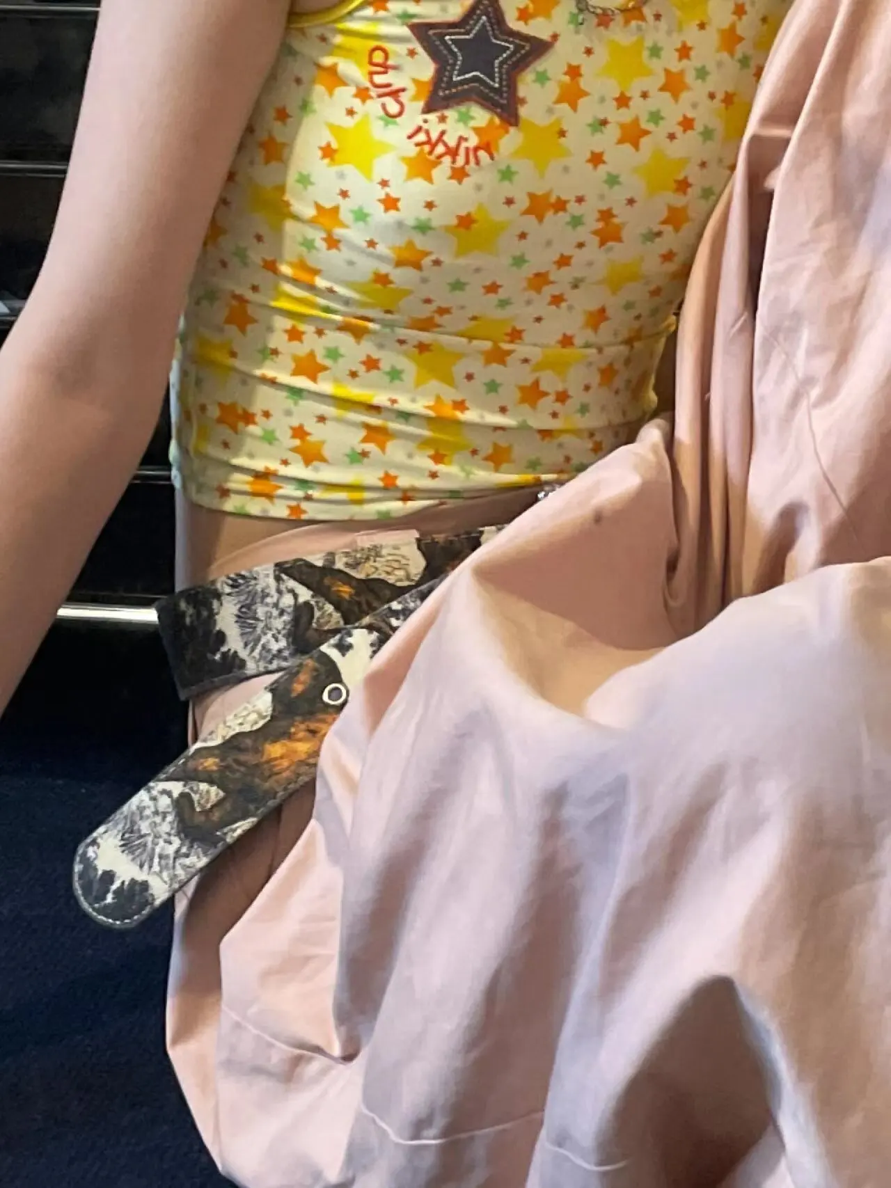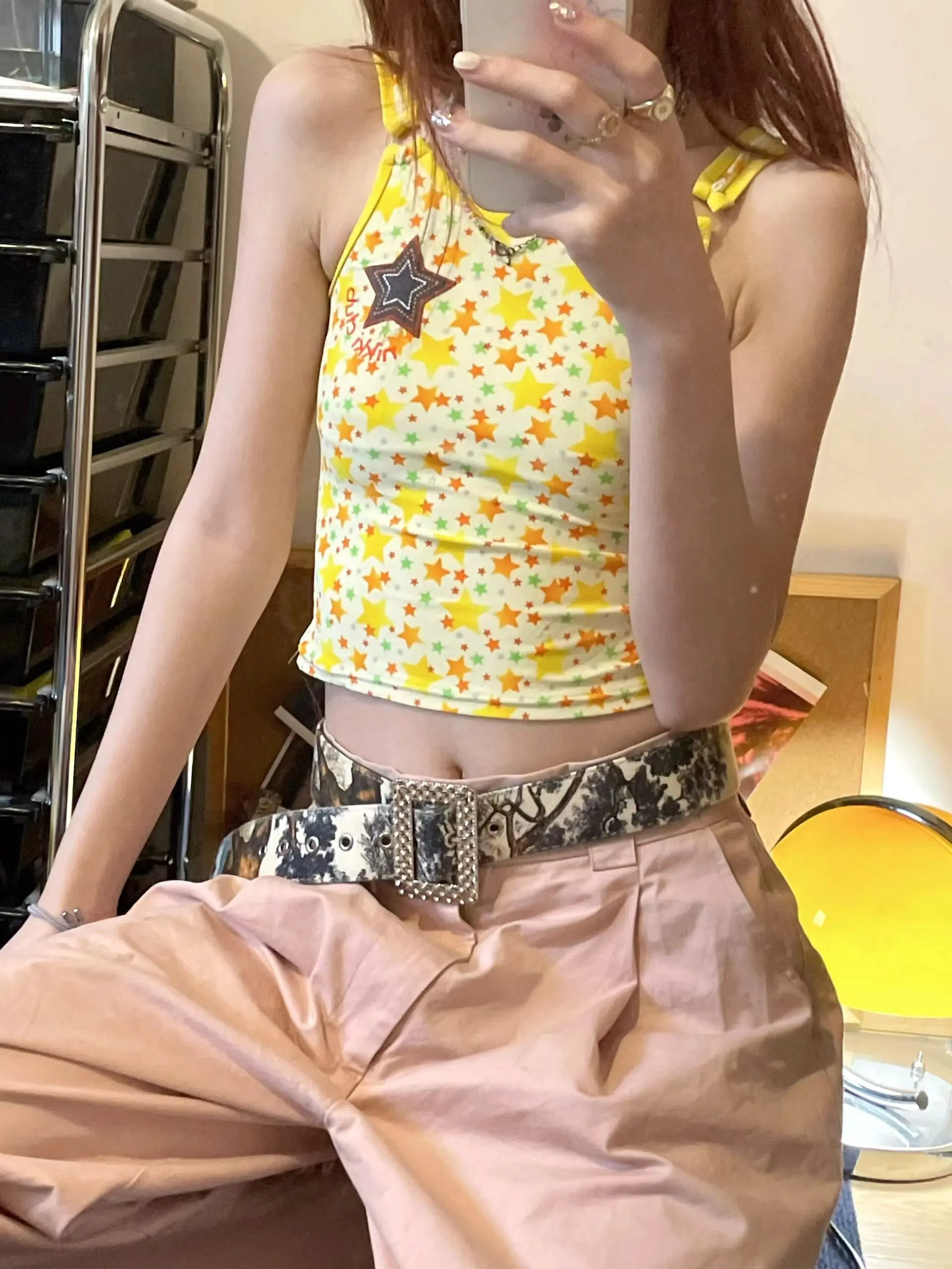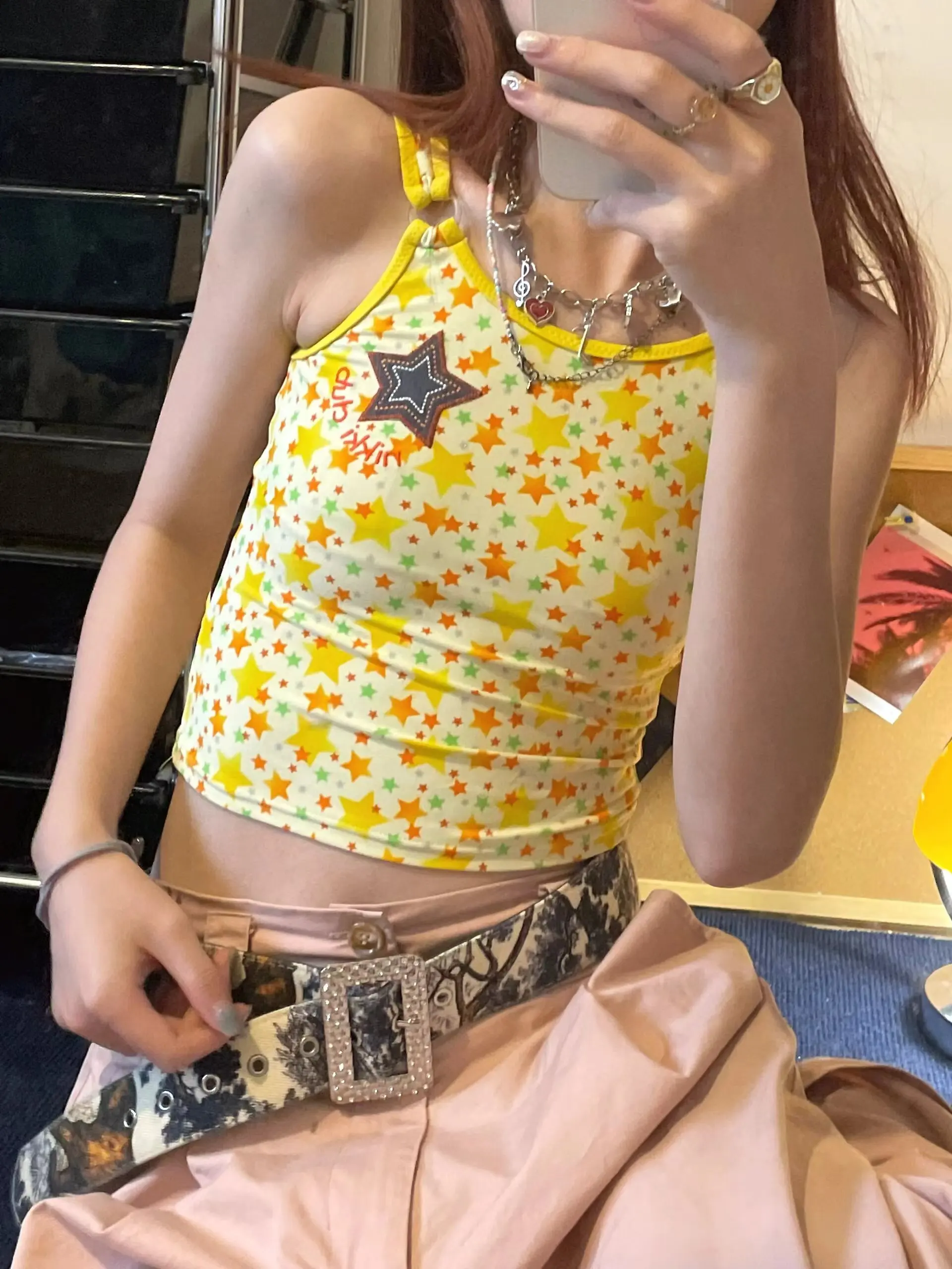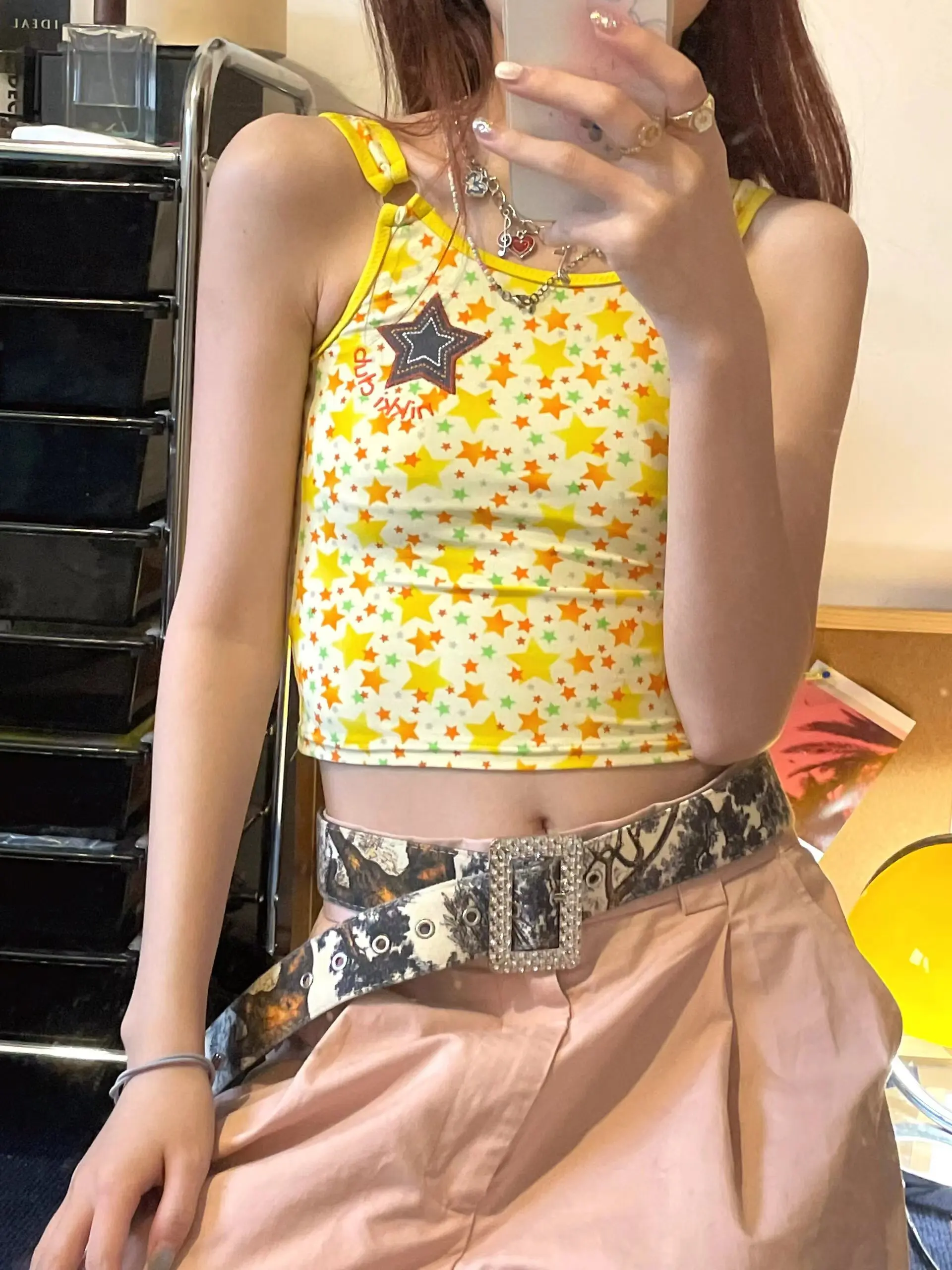 Summer Vintage Tank Tops Y2k Sleevelss Print Star Camis Tops Streetwear 2000s Japanese Crop Tops Beach Wear Retro Tank