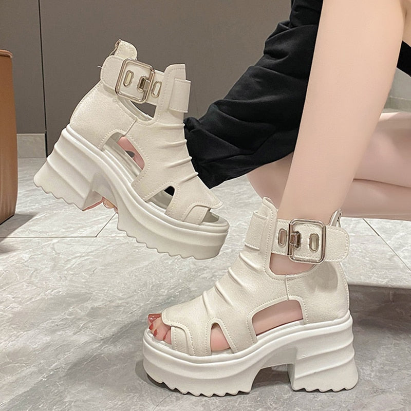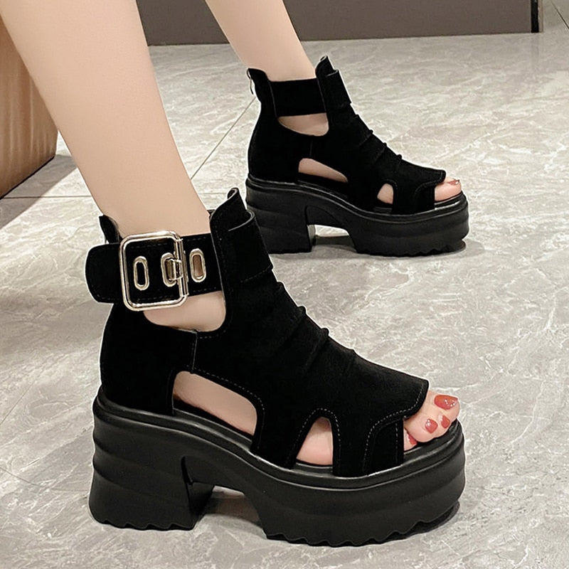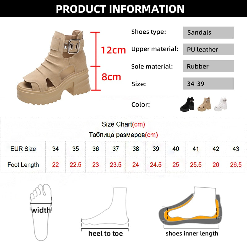 Gothic Chunky Platform Sandals Women Summer Wedges Peep Toe Gladiator Shoes Woman Thick Bottom High Heels