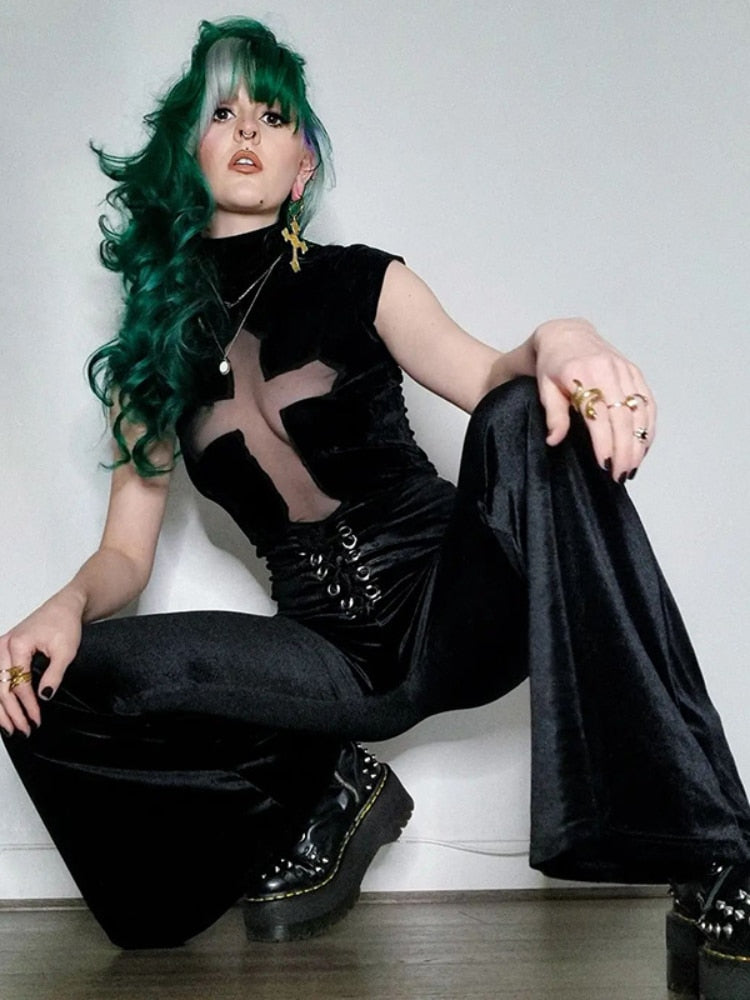Gothic Women T-shirts Grunge Aesthetic Punk Sexy Emo Black Top Streetwear Fashion Alternative Clothes