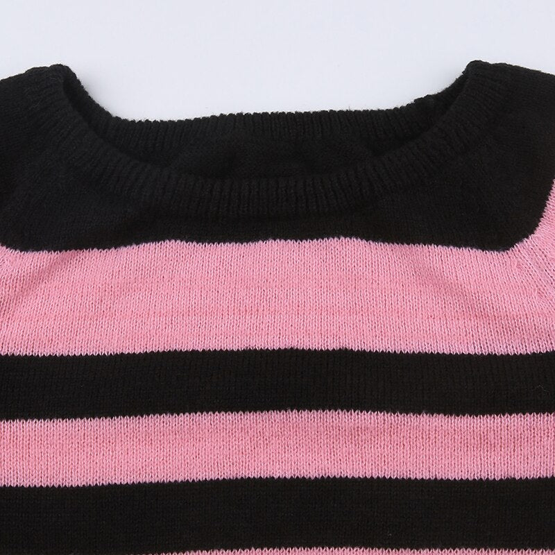 Stripe Off-Shoulder Sweater Mini Retro Dress