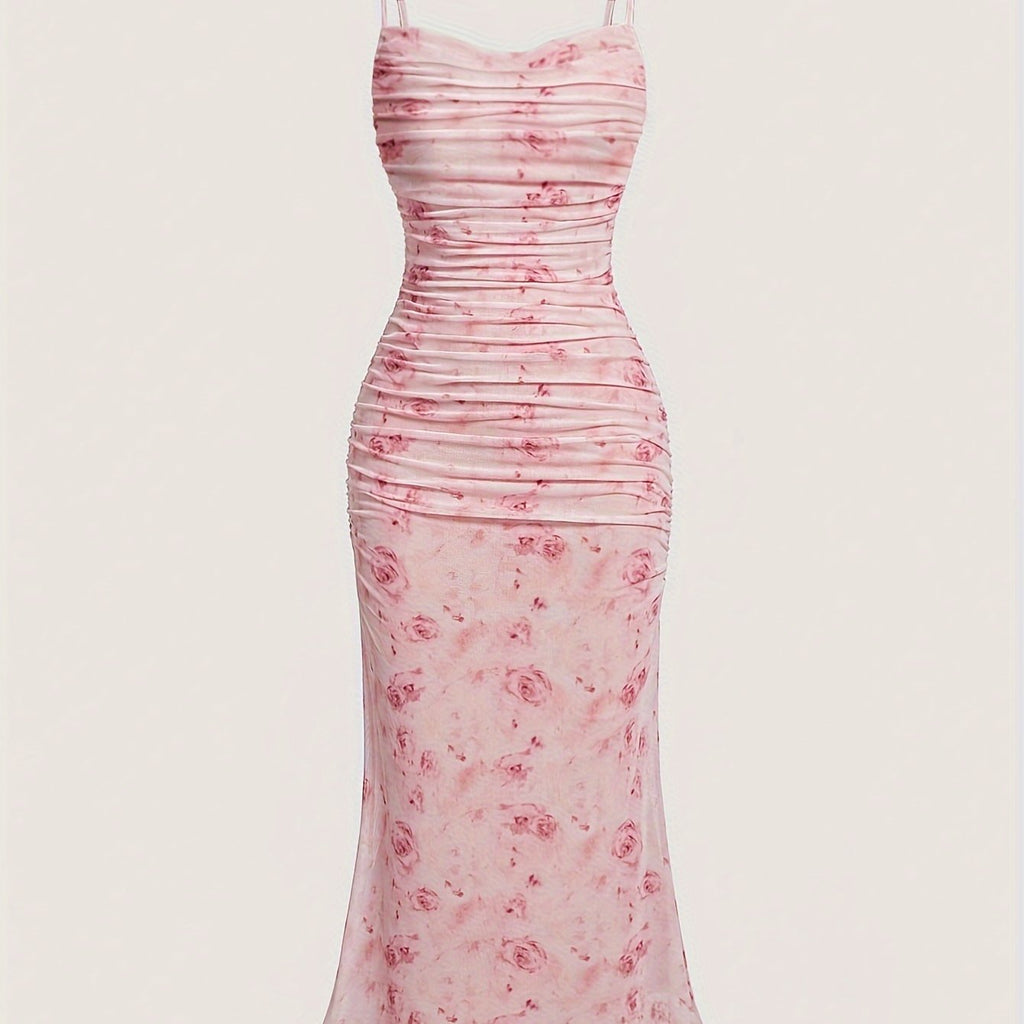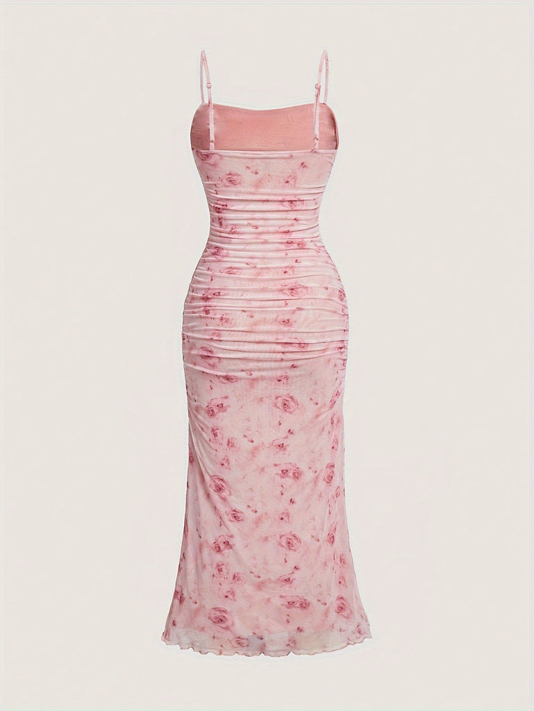 High Stretch Floral Print Mesh Cami Dress - Machine Washable, Lettuce Hem - Perfect for All Seasons