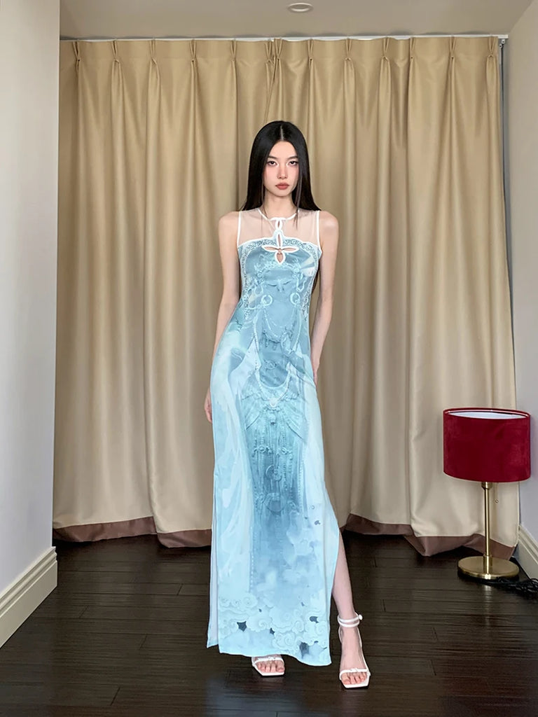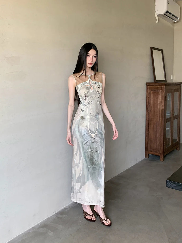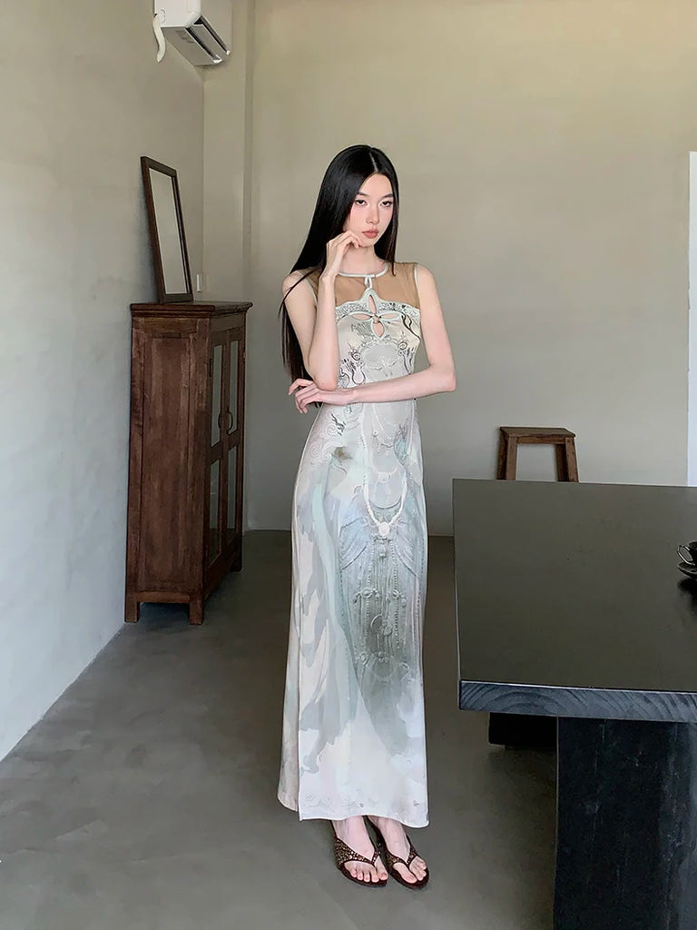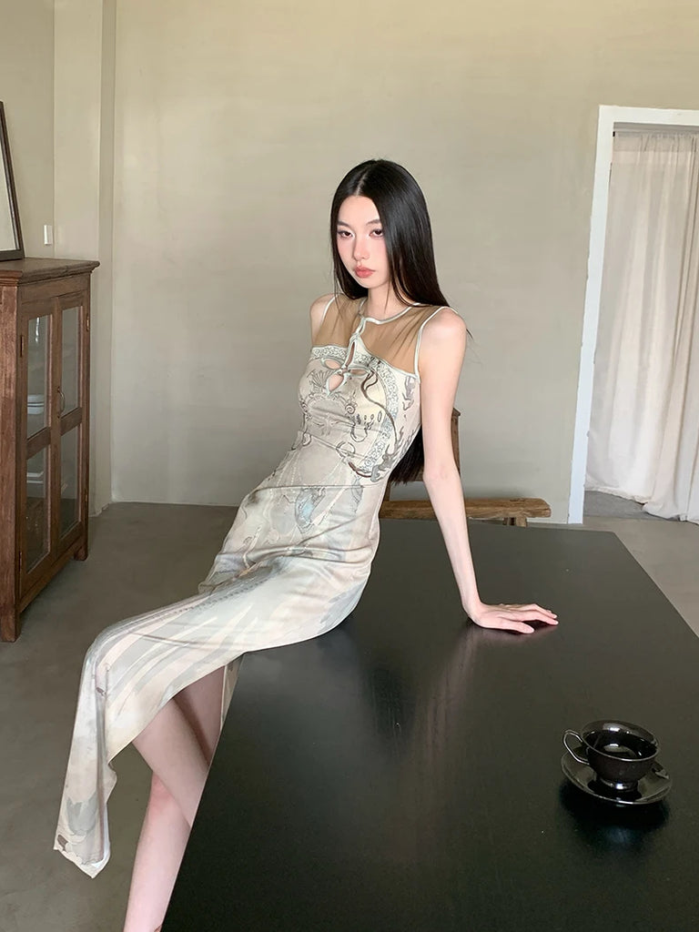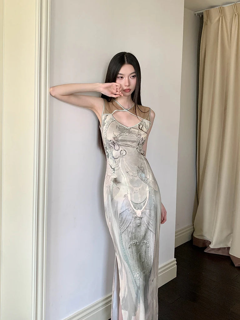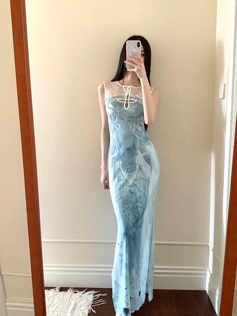Hollow Out Vintage Bodycon Long Dress For Woman Summer 2025 Sleeveless Tunics Modest Evening Party Ladies Midi Dress