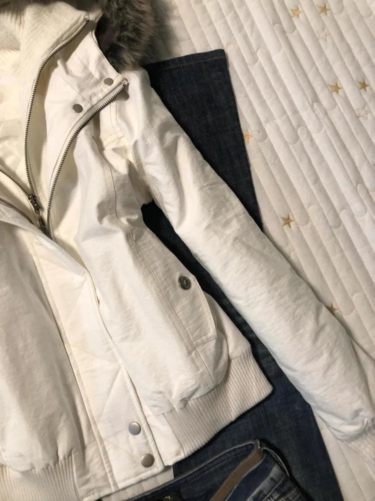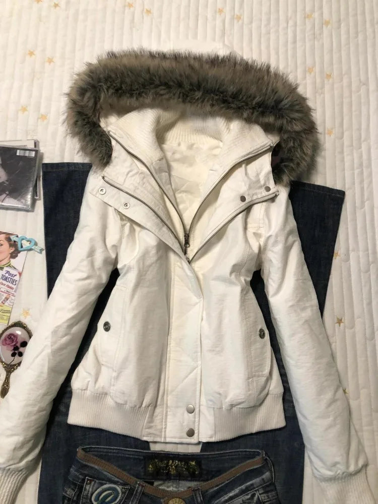 Jackets Women 2025 Autumn Winter Vintage Furry Patchwork Hooded Slim 2000s Fashion Coats Female Y2k Aesthetic Harajuku