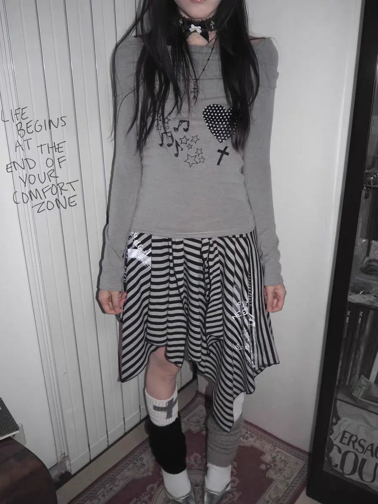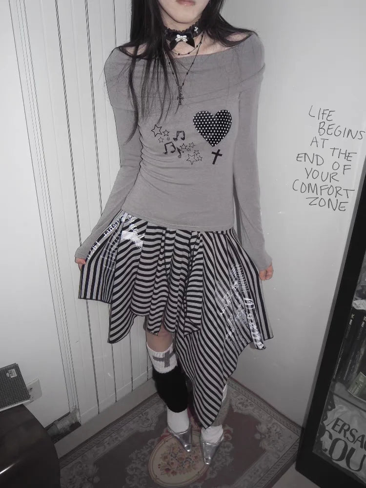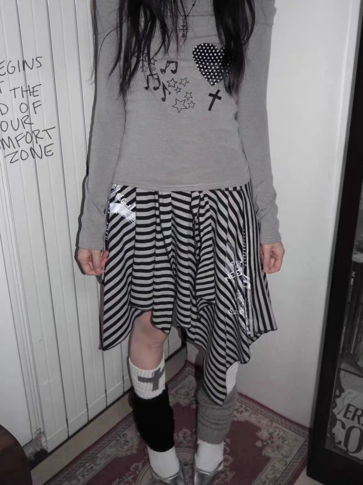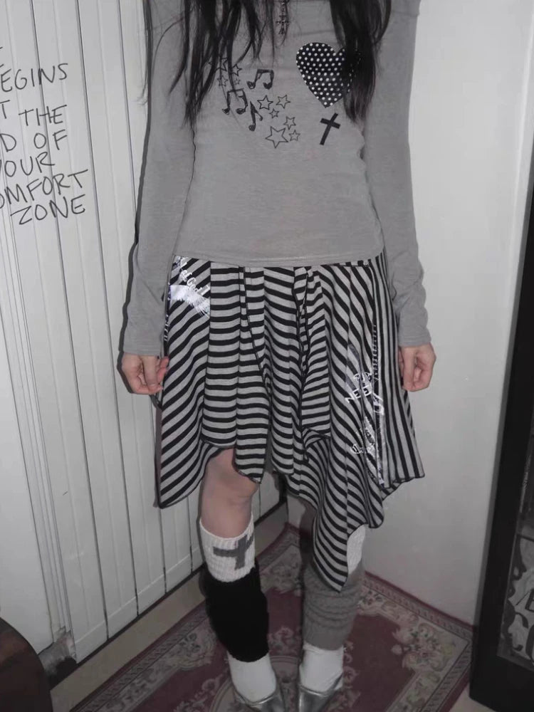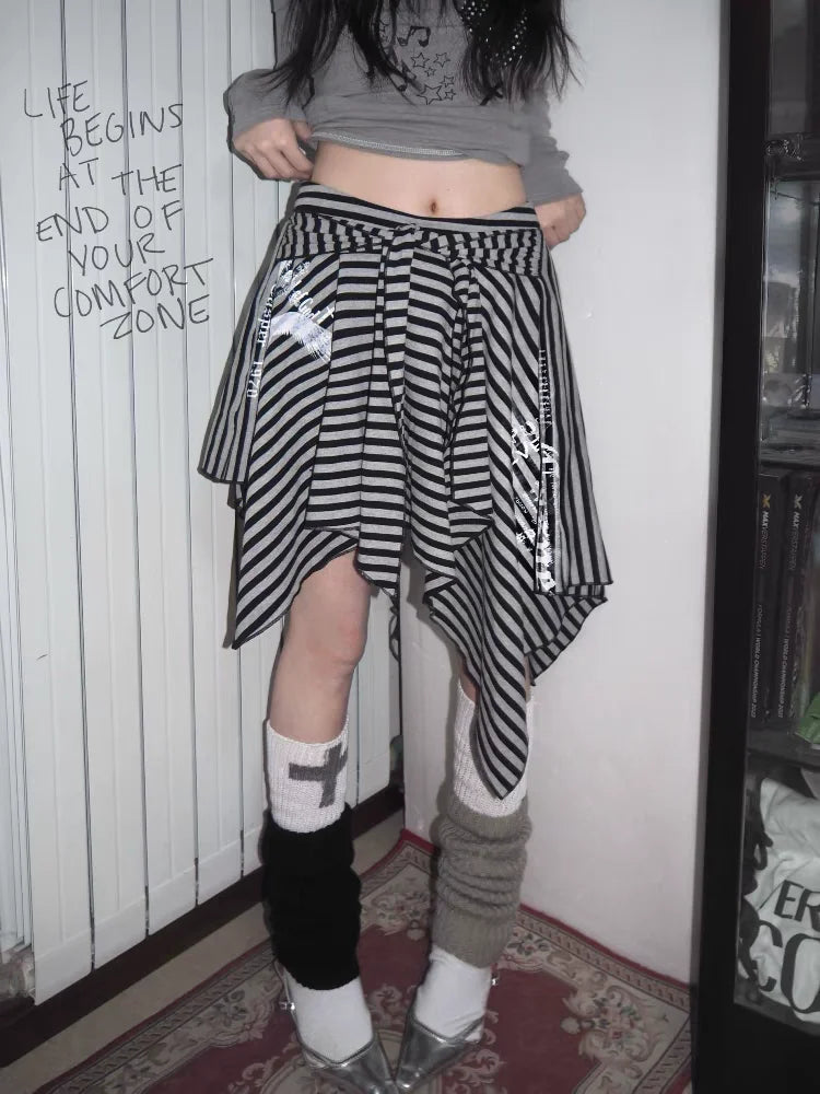 Japanese Style Harajuku Striped Skirt Women Vintage Gothic Y2k Grunge Mini Skirt Punk Irregular Streetwear Short Skirts