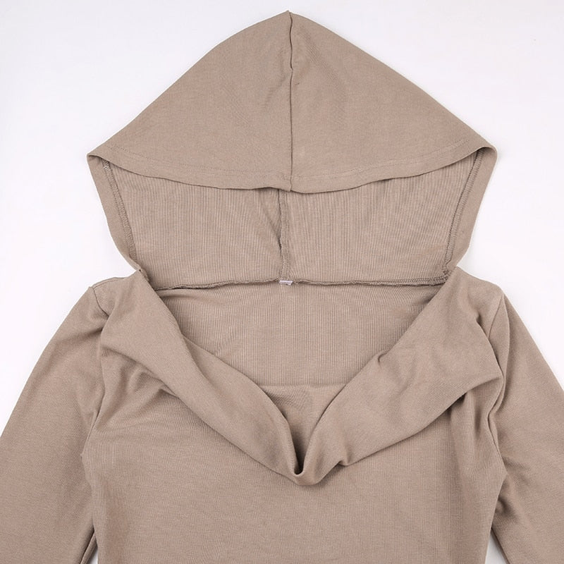 Khaki Hooded Bodycon Folds Long Sleeve Dress