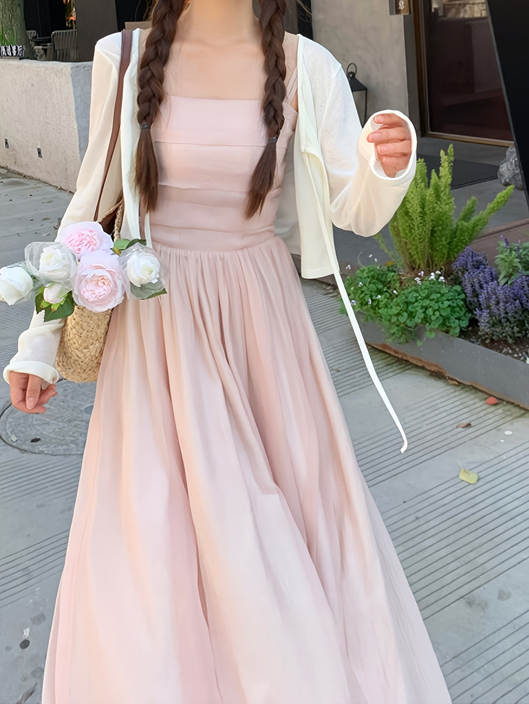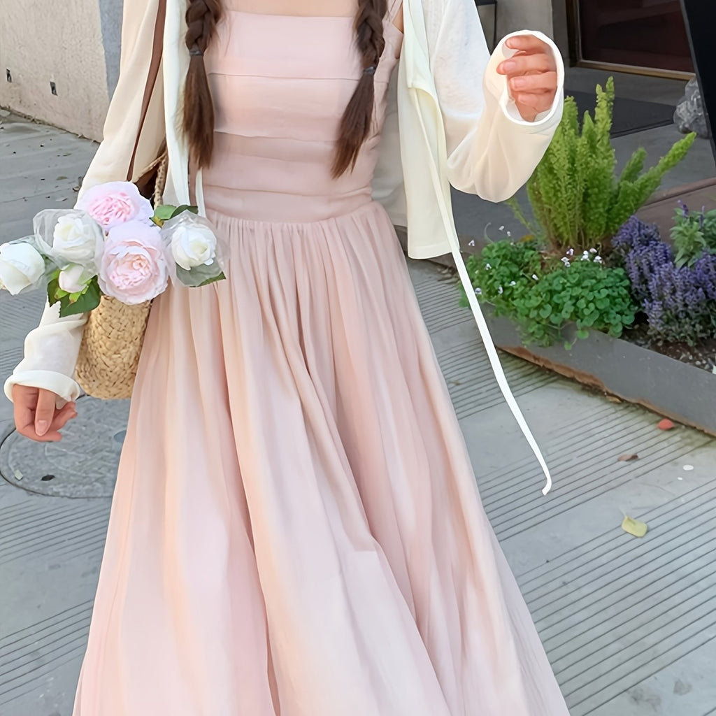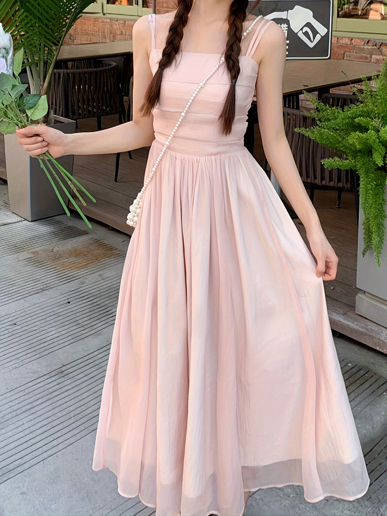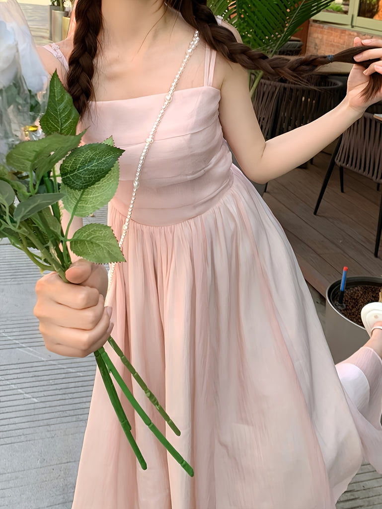 Korean-style Trendy Design Temperament Slimming Dating Vacation Pink Body-hugging Dress with Suspenders And Halter Neck