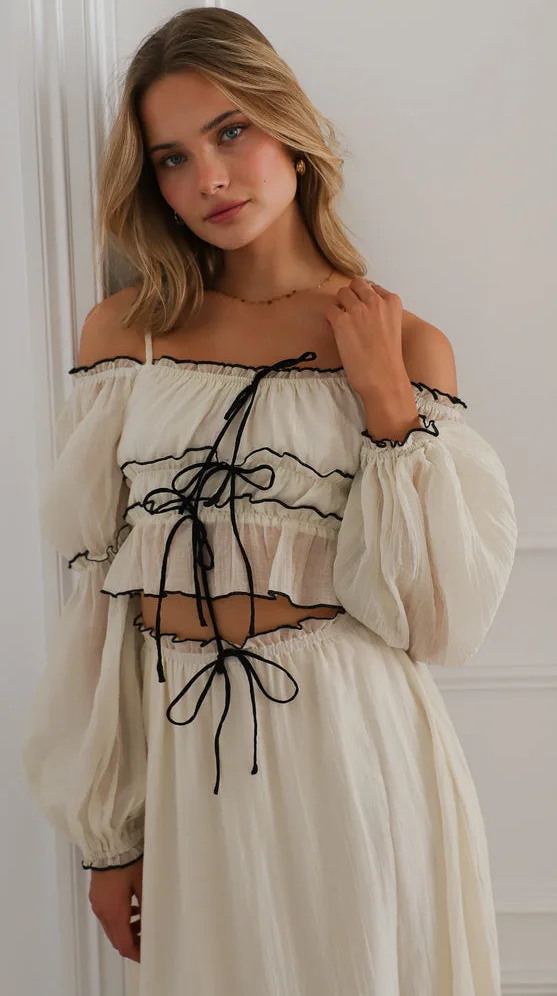Lantern Sleeve Chiffon Top And A-line Long Skirt Vacation Women Sets 2025 Spring Summer New Ruffle Tee Skirt Summer 2 Piece Set