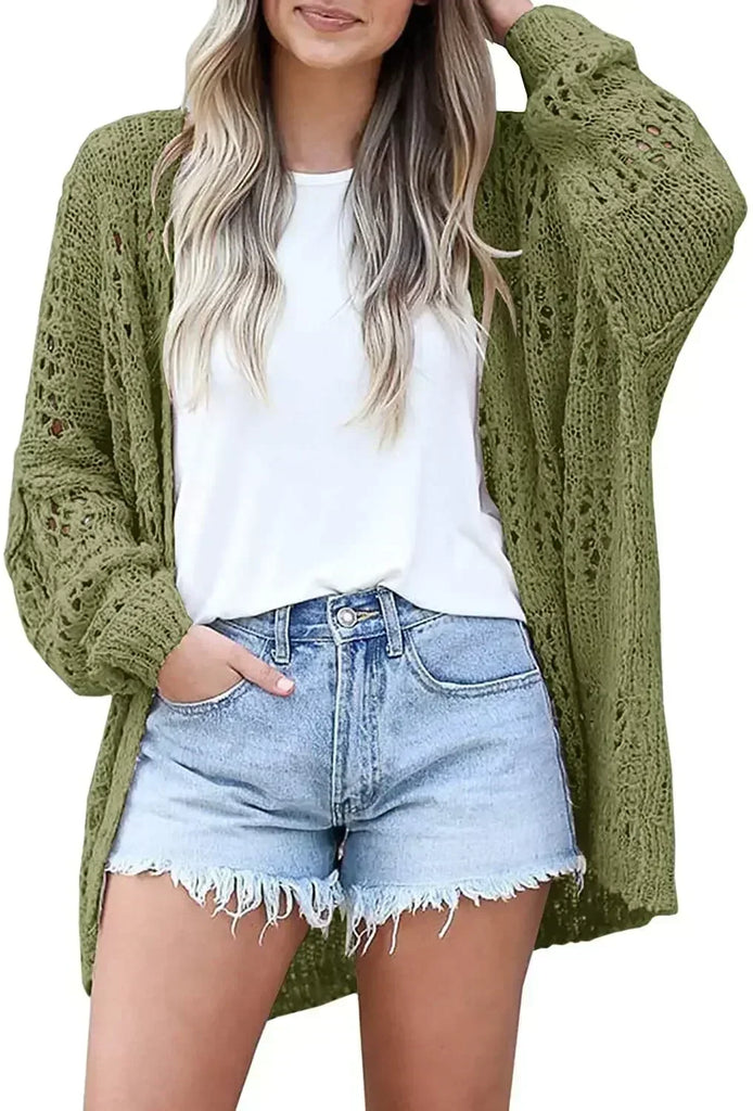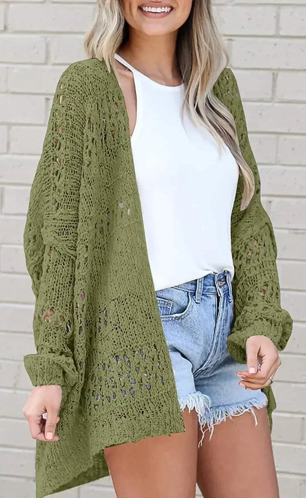 long crochet cardigan Women Cardigan Open stitch Sweater Hollow out Long Sleeve cardigan for women autumn solid outwear clothes
