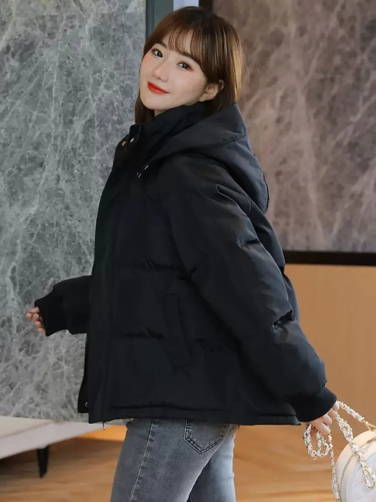 Loose Cotton Coat Women Autumn Winter New Fashion Korean Short Bread Clothing Thick Warmth Hooded Padded Jackets Feminina