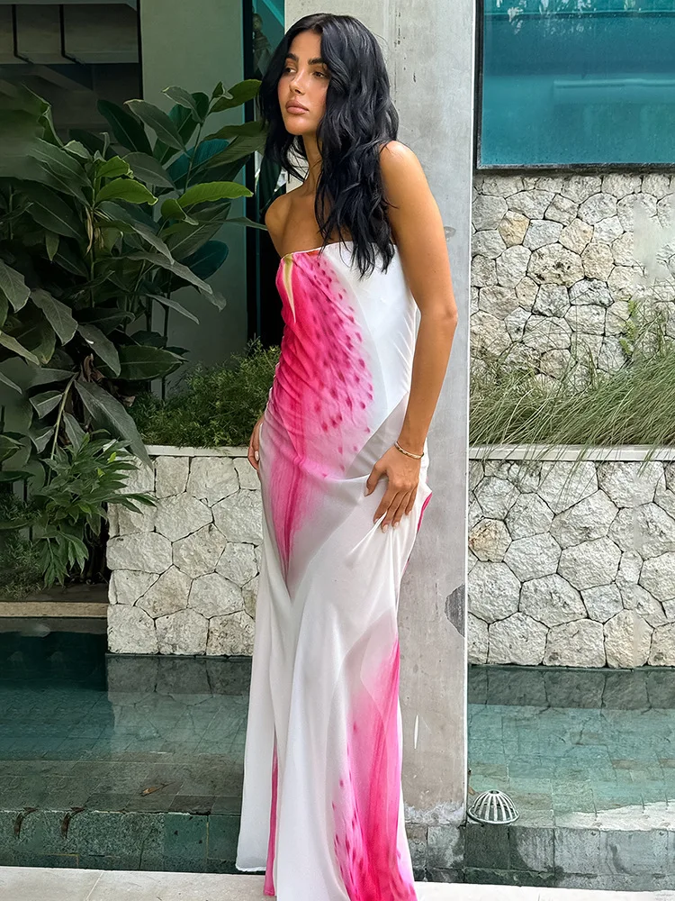 Floral Print Strapless Sexy Maxi Dress For Women Gown Patchwork Off-shoulder Backless Sleeveless Print Long Dress