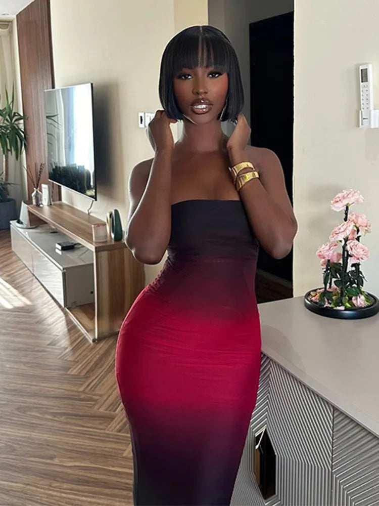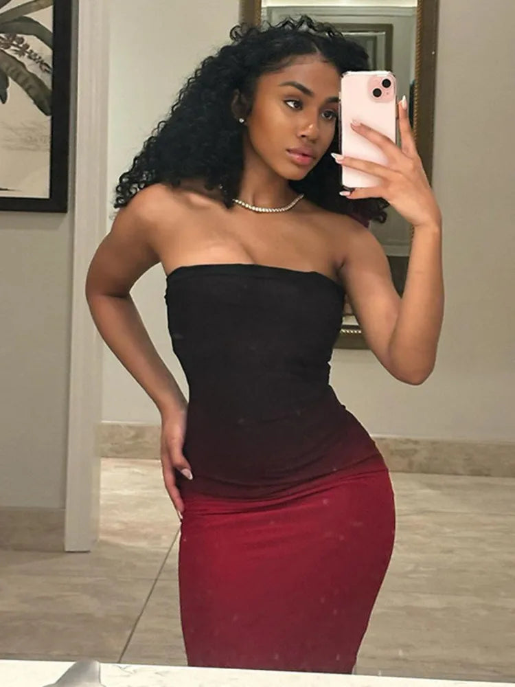 Off-shoulder Backless Sexy Maxi Dress For Women Gown Gradient Strapless Sleeveless Bodycon Club Long Dress Vestido