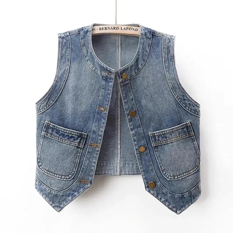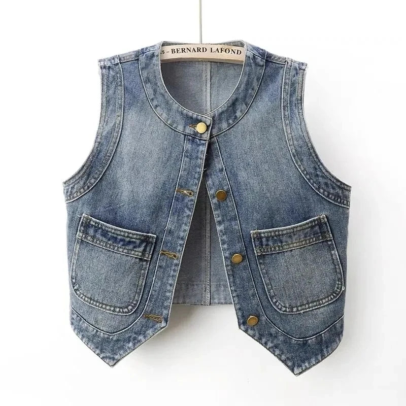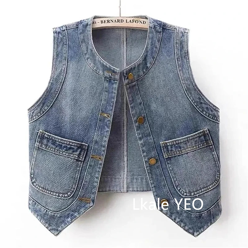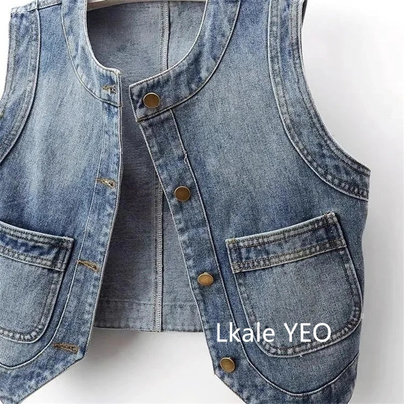 New Ladies Denim Vest Jacket 2025 Summer Retro Versatile Women's Waistcoat Tops Round Neck Sleeveless Female Cowboy Horse Clip