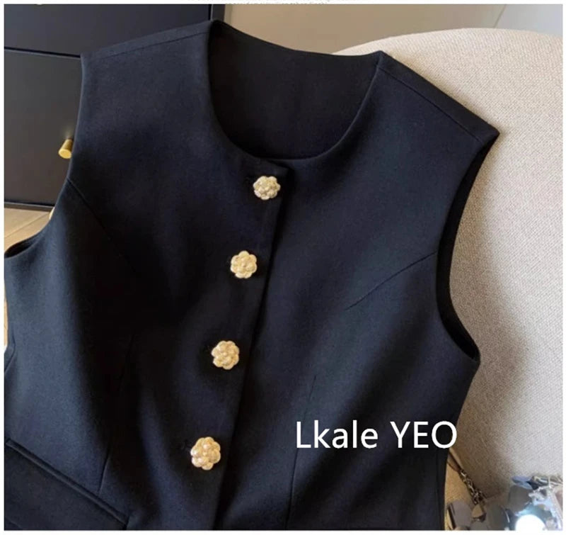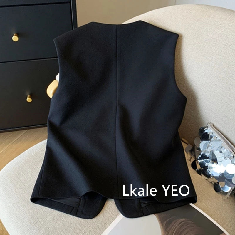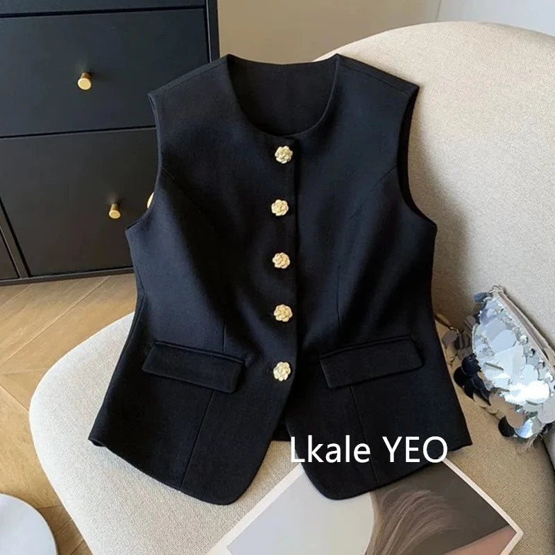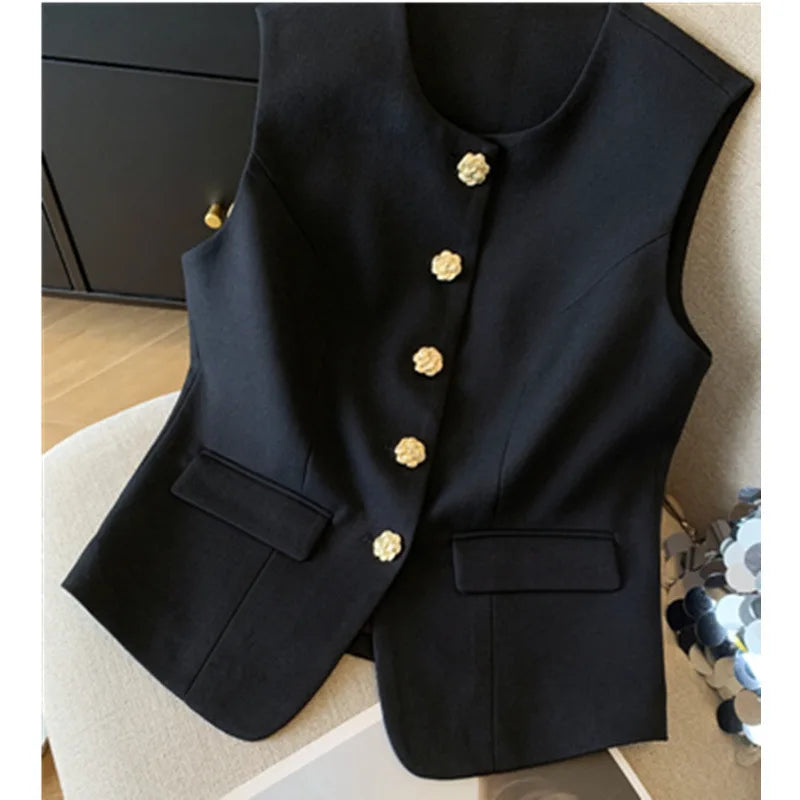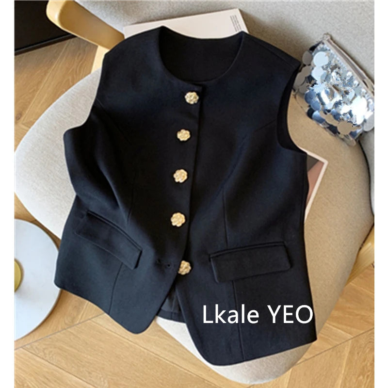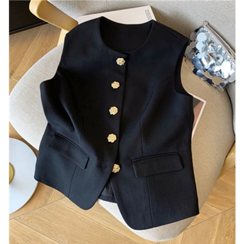 New Ladies Vest Coat 2025 Spring Sleeveless Design Sense Women's Waistcoat Jacket Solid Color High End Short Lady Horse Clip