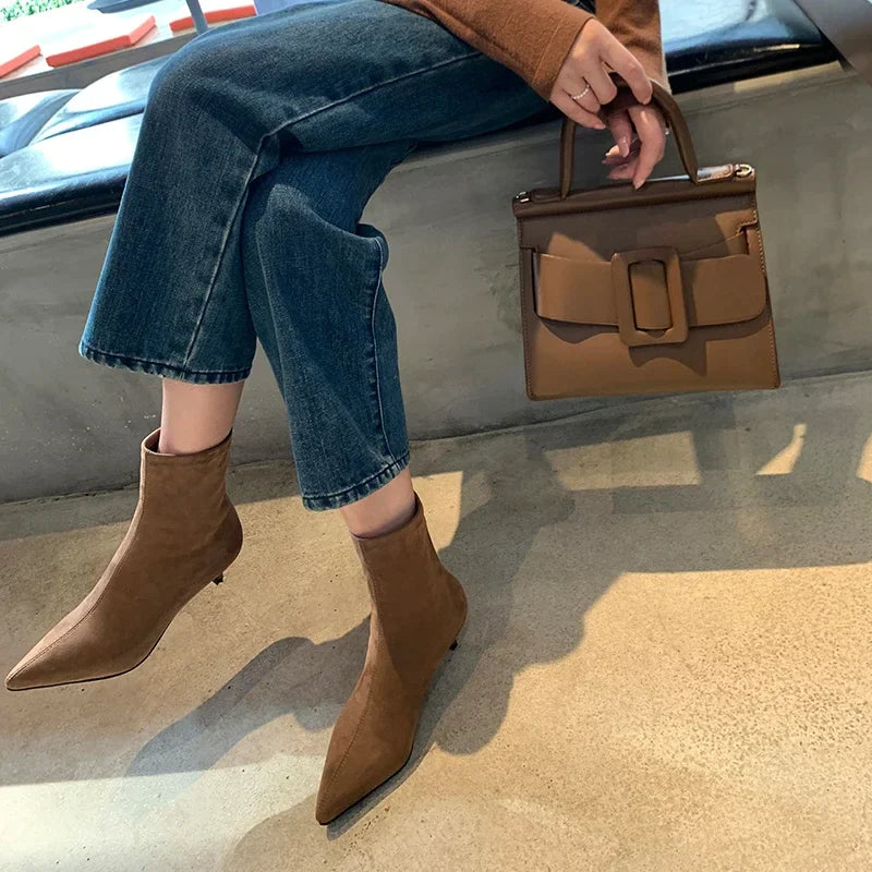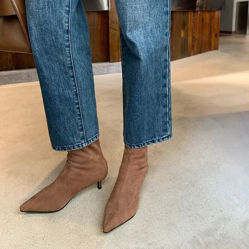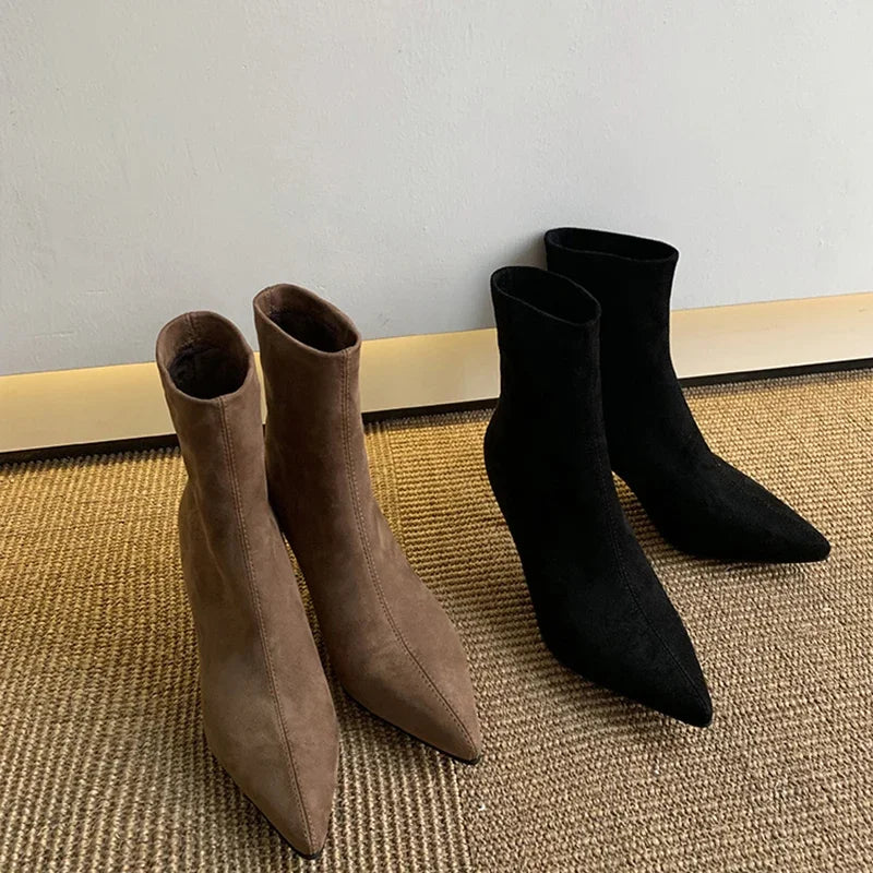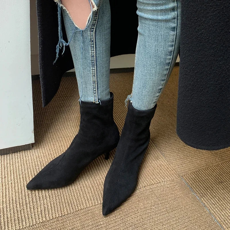 New Women Sock Ankle Boots Fashion Black Slip On Ladies Elegant Dress Short Boot Thin High Heel Dress Chelsea Shoes