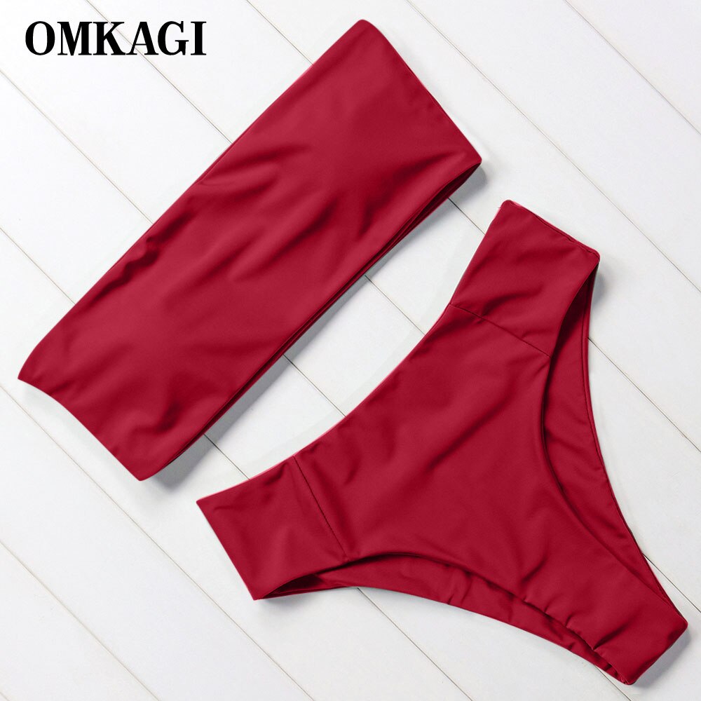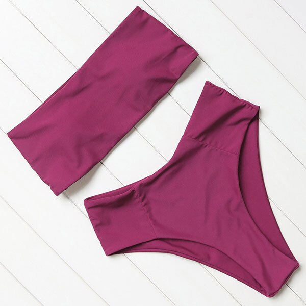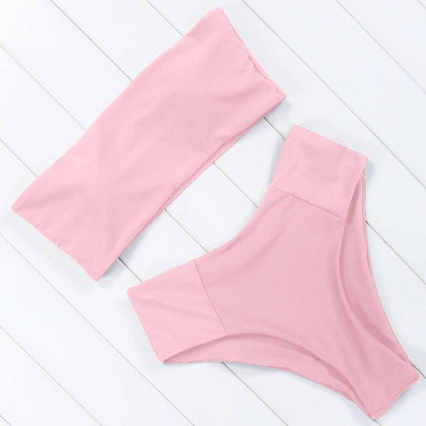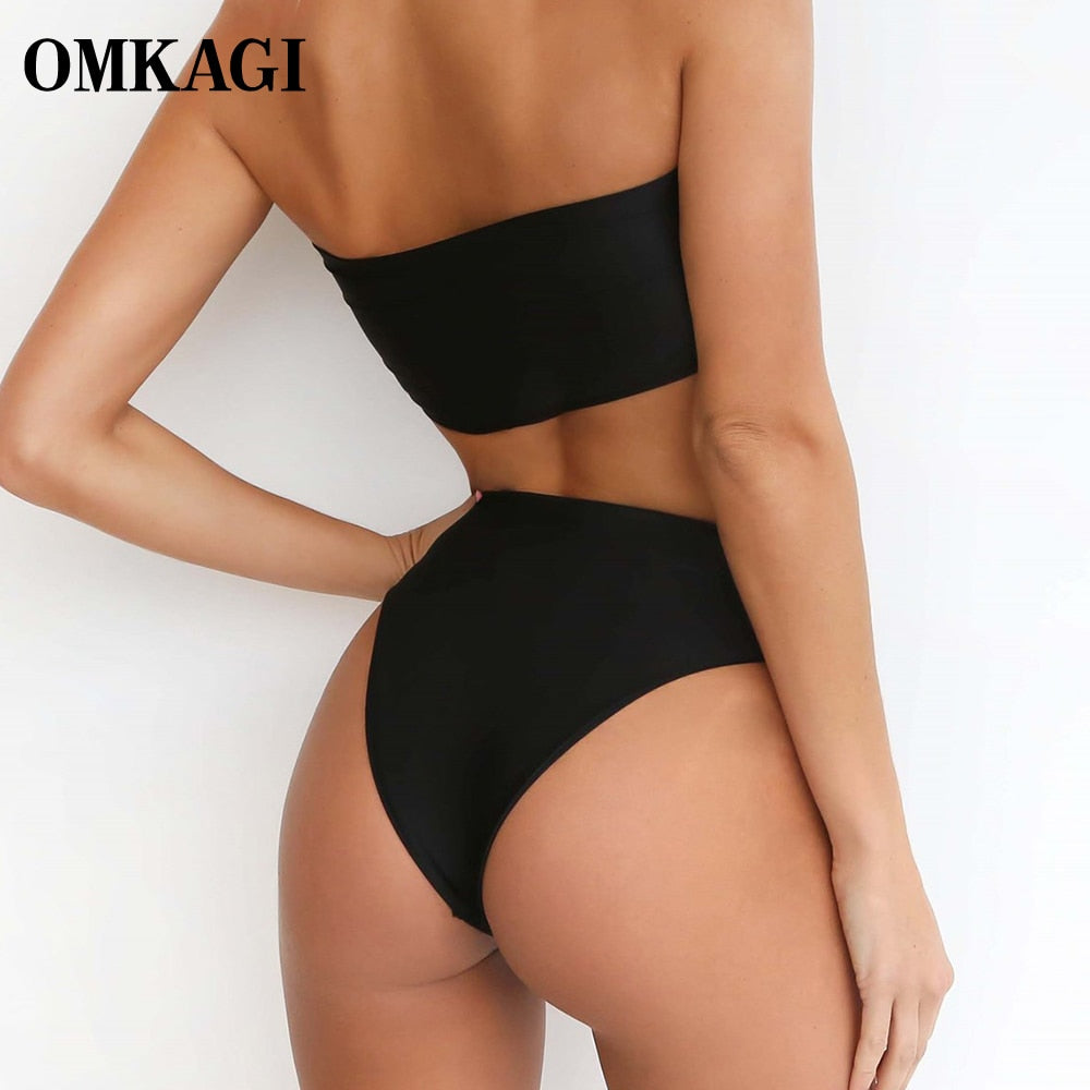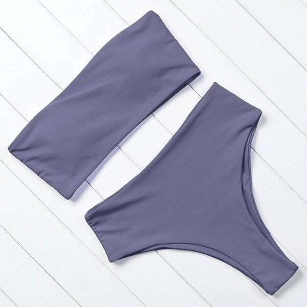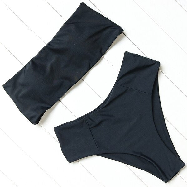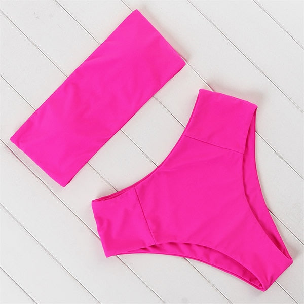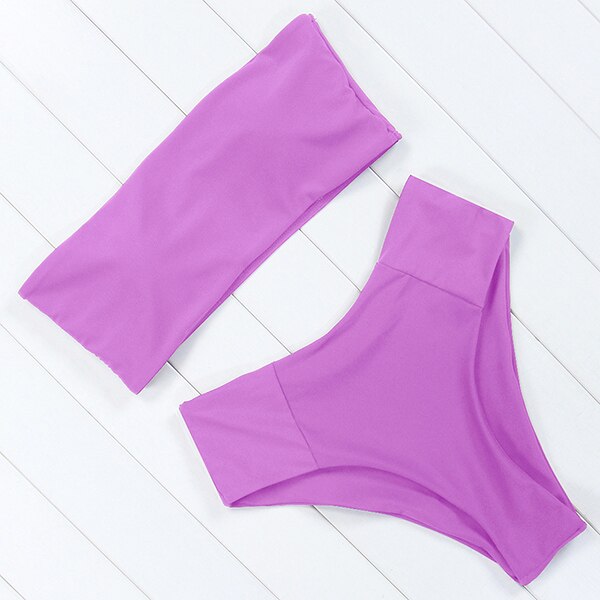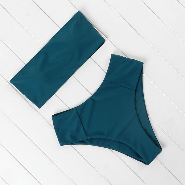 Bandeau Swimwear Women Solid Bikini High Waist Swimsuit Swimming Bathing Suit Biquini Maillot De Bain Femme