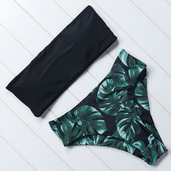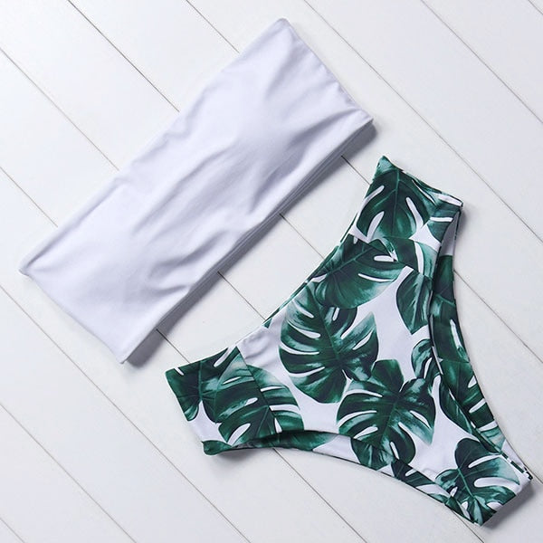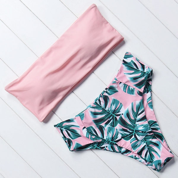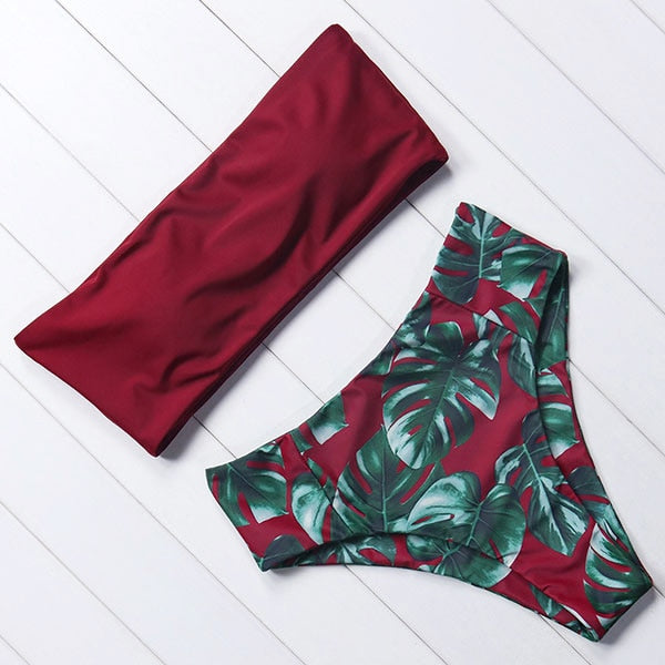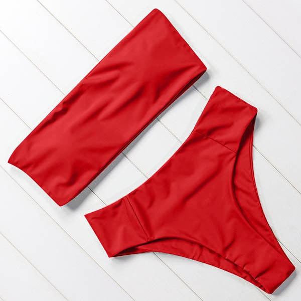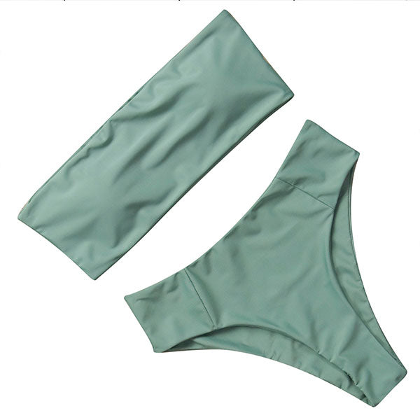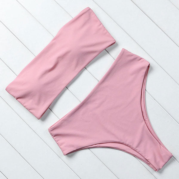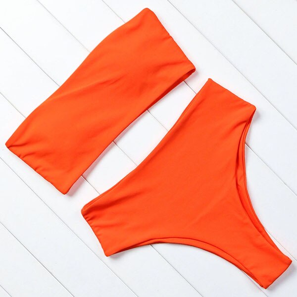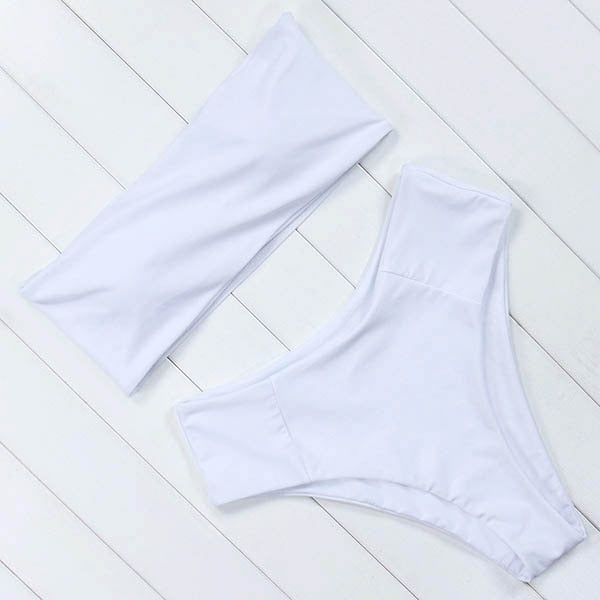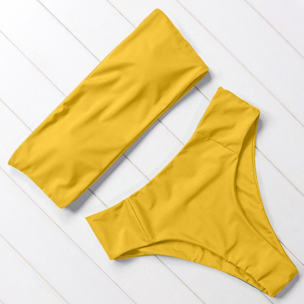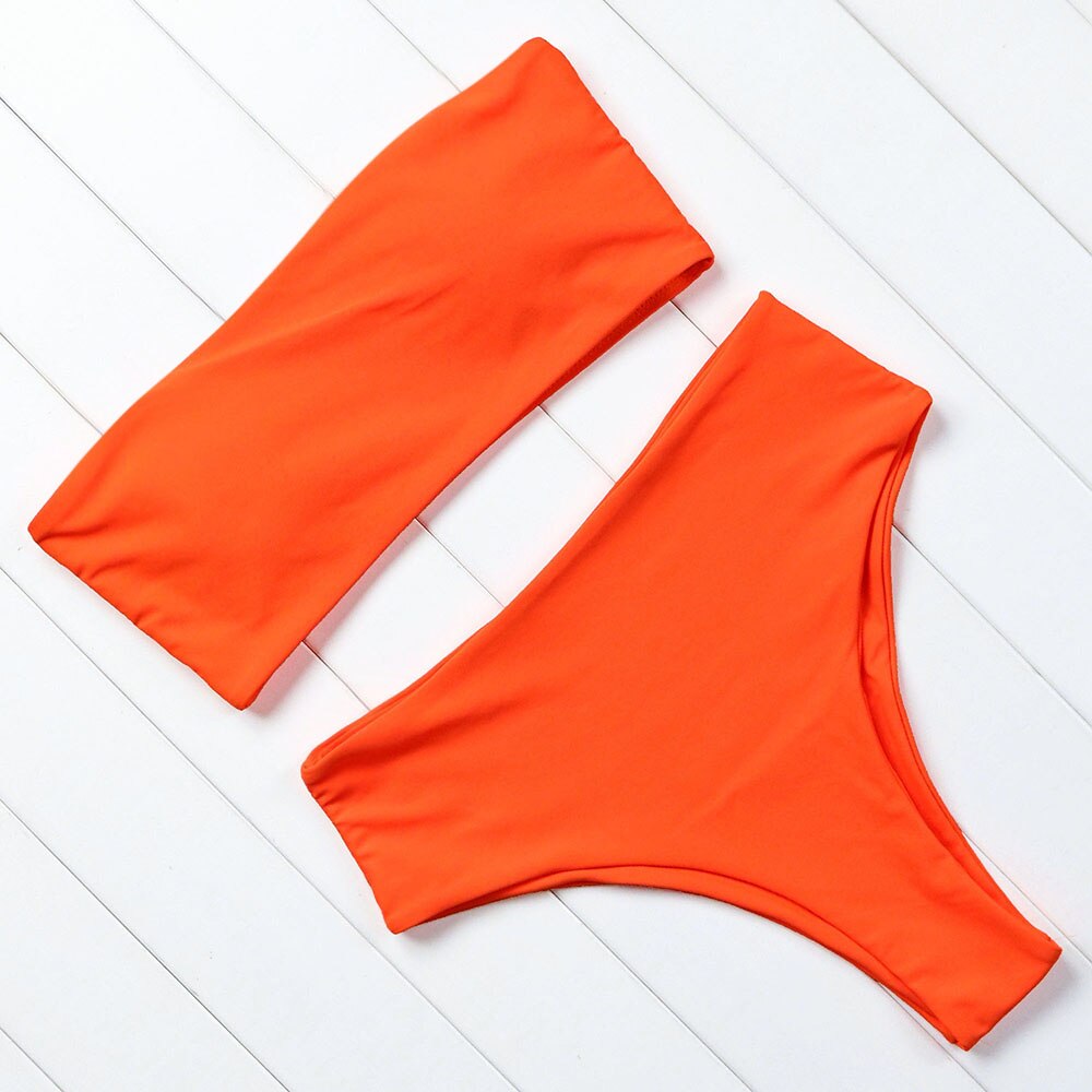 Bandeau Swimwear Women Solid Bikini High Waist Swimsuit Swimming Bathing Suit Biquini Maillot De Bain Femme