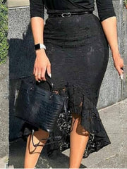 Pbong mid size graduation outfit romantic style teen swag clean girl ideas 90s latina aestheticWomen Black Lace Skirt High Waist Slim Midi Modest Classy Irregular Length Female Package Hip Jupes Falad Office Elegant Fashion