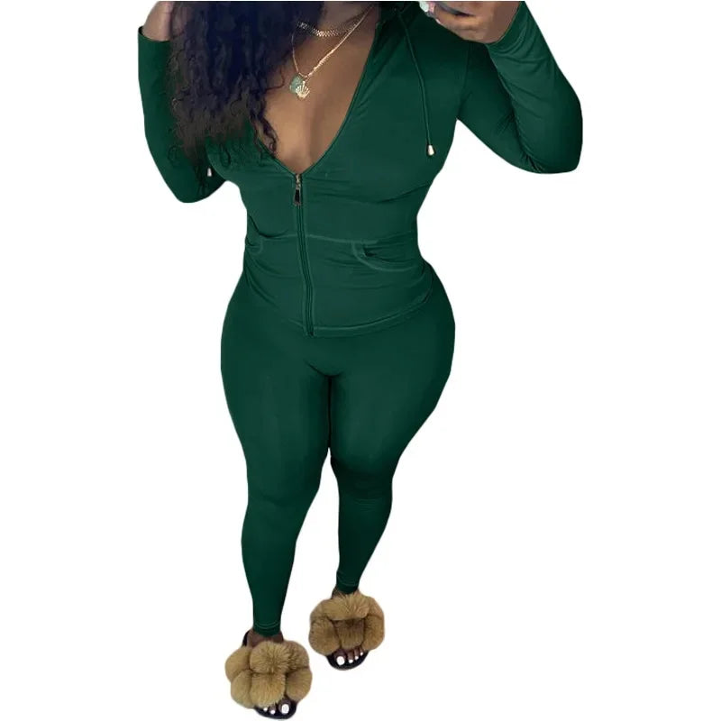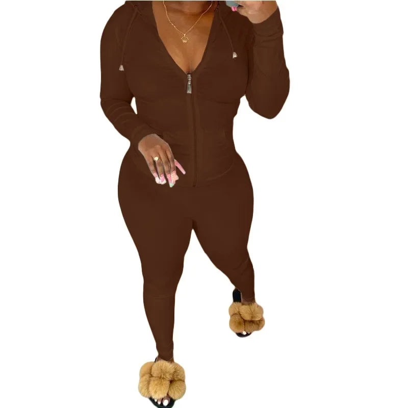 Pbong Amazon INS Autumn European Women's Fashion Hooded Cardigan Slims Casual Suit Smooths Your Silhouette Sports Casualwear