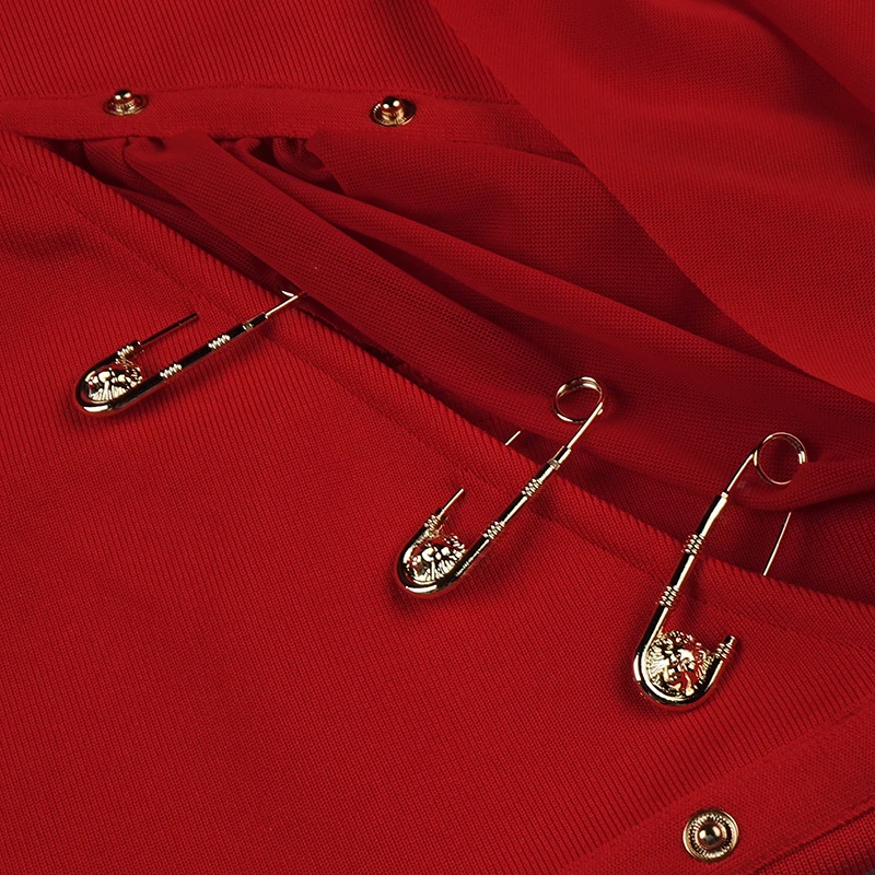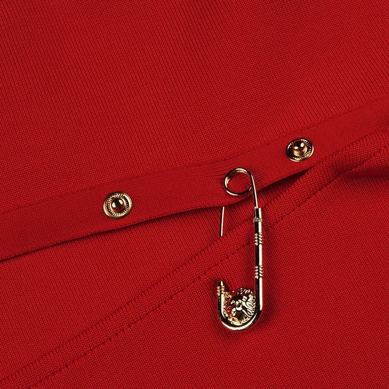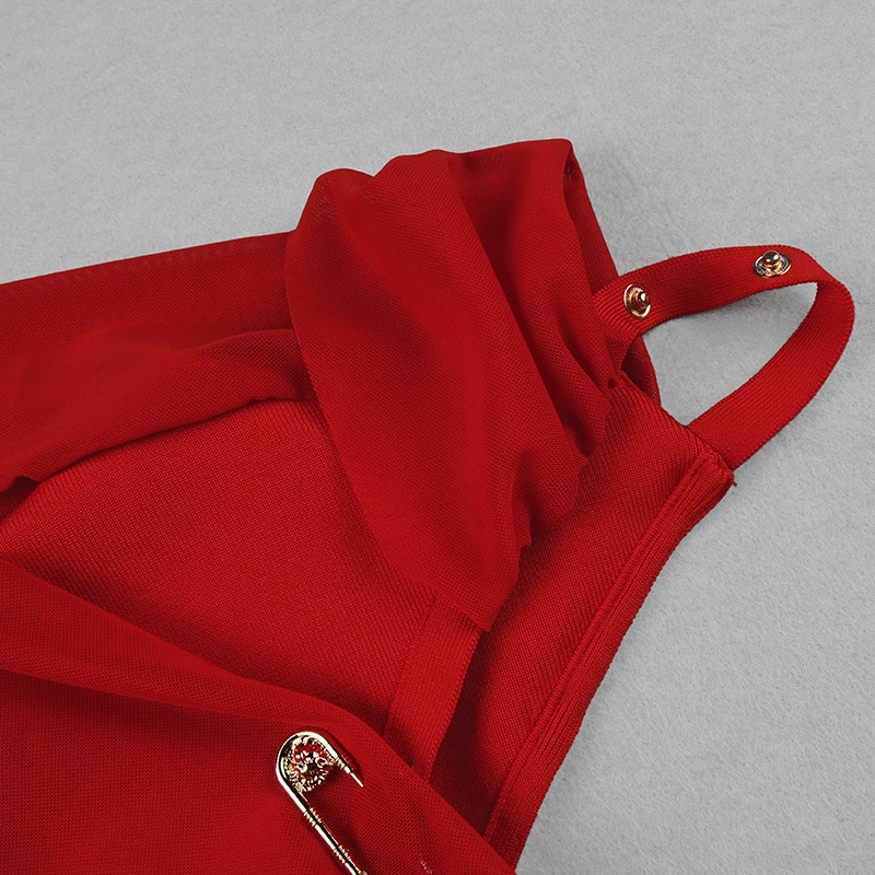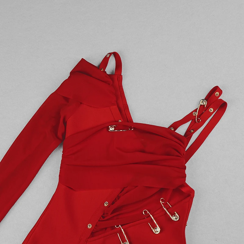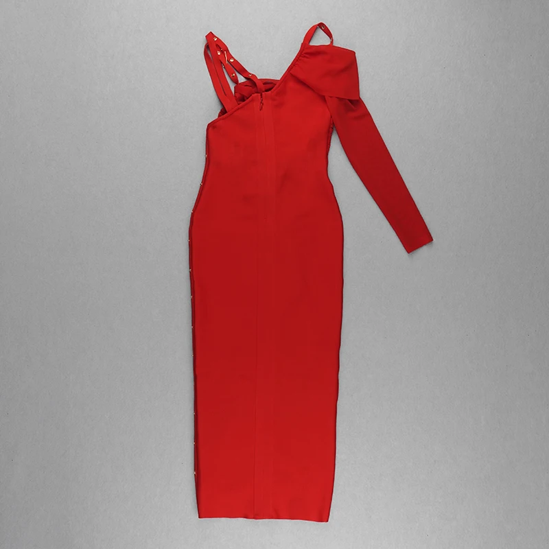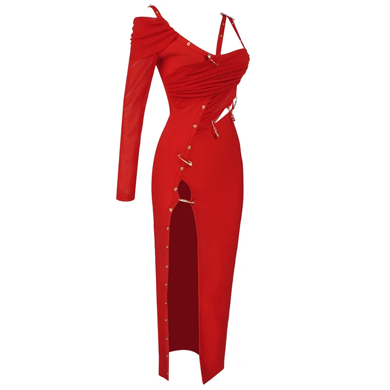 High Quality Black Long Sleeve One Shoulder Open Fork Rayon Bandage Dress Cocktail Party Bodycon Dress - Red / S