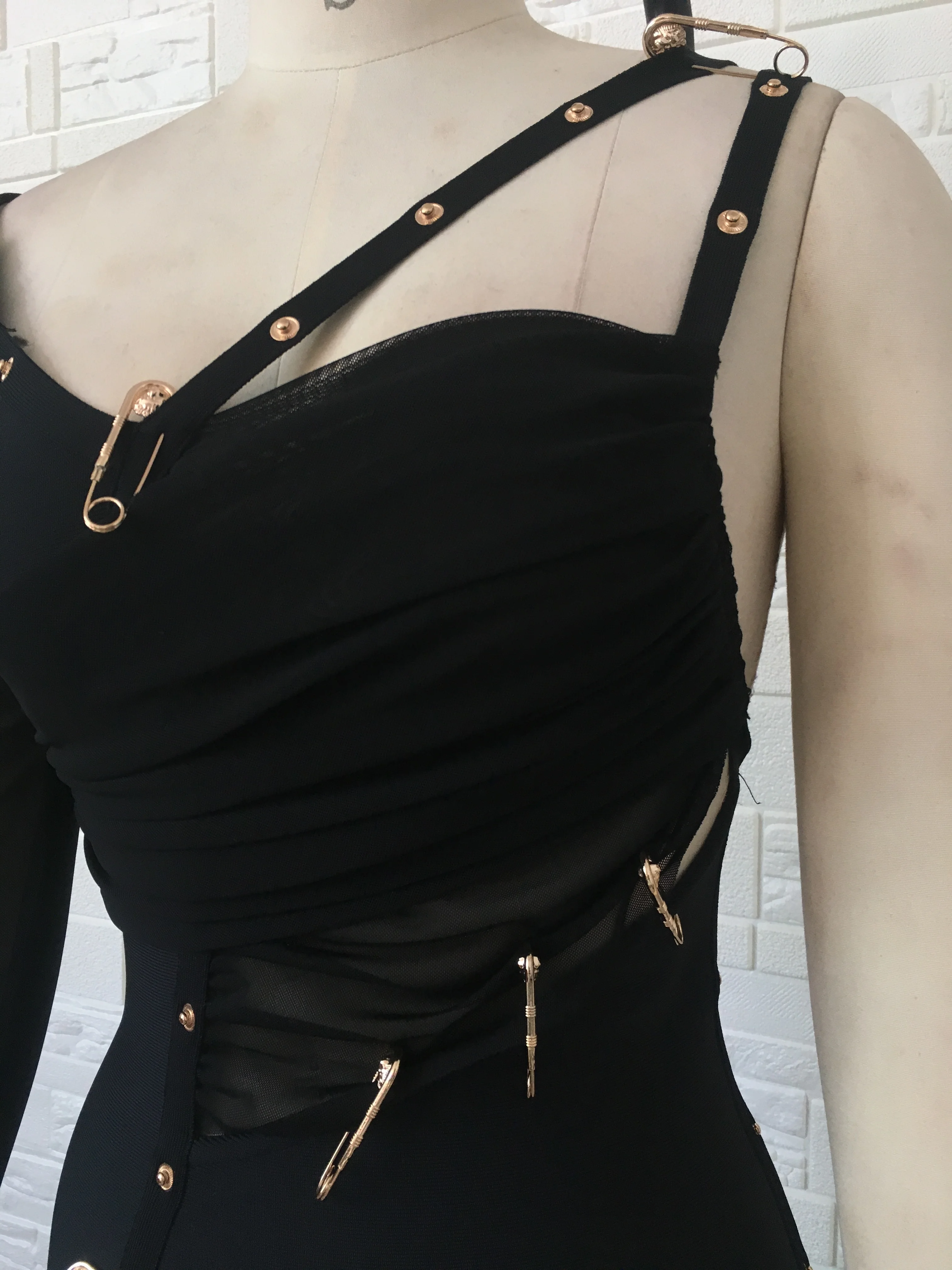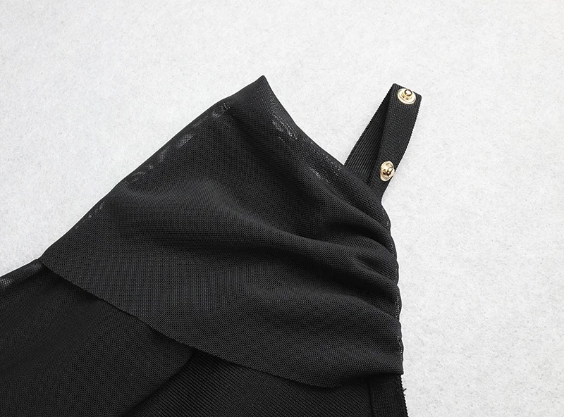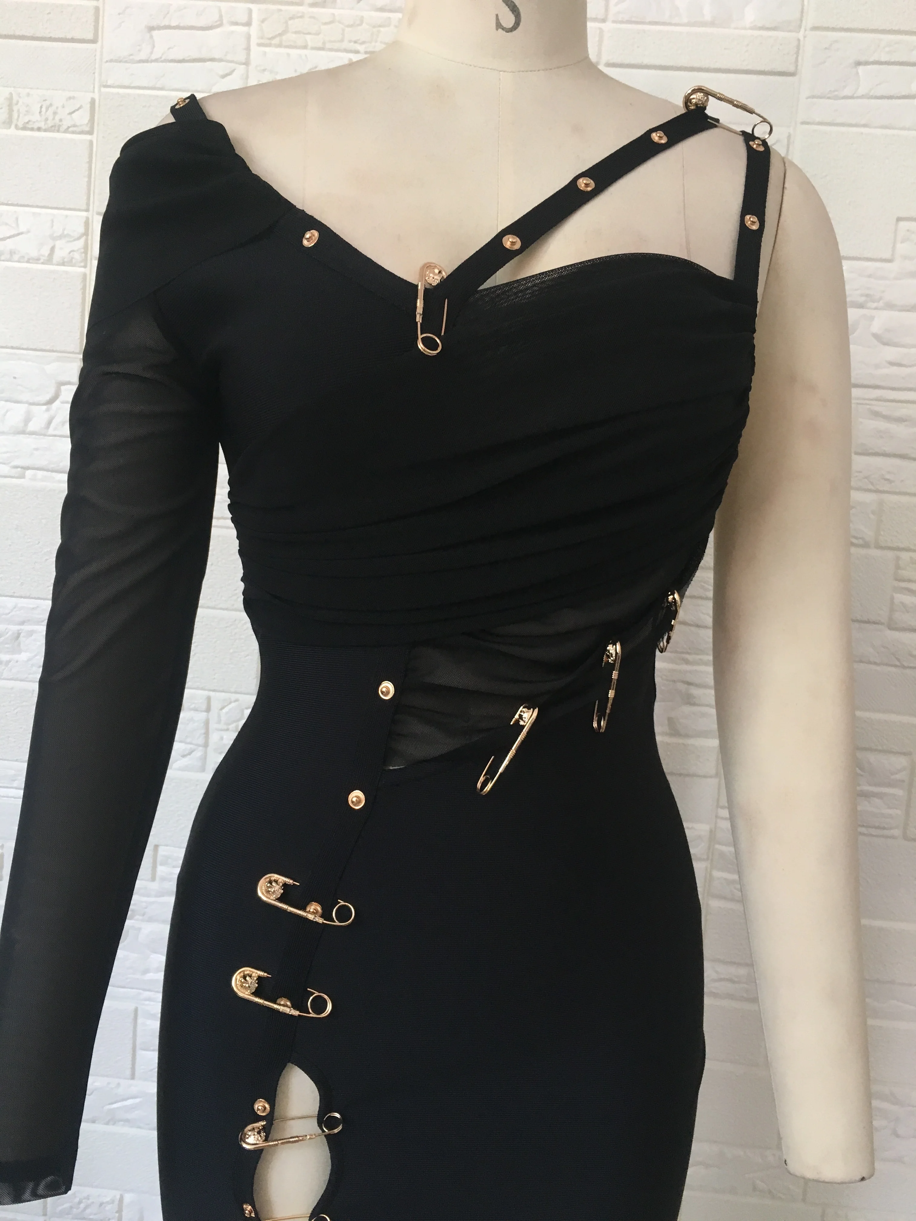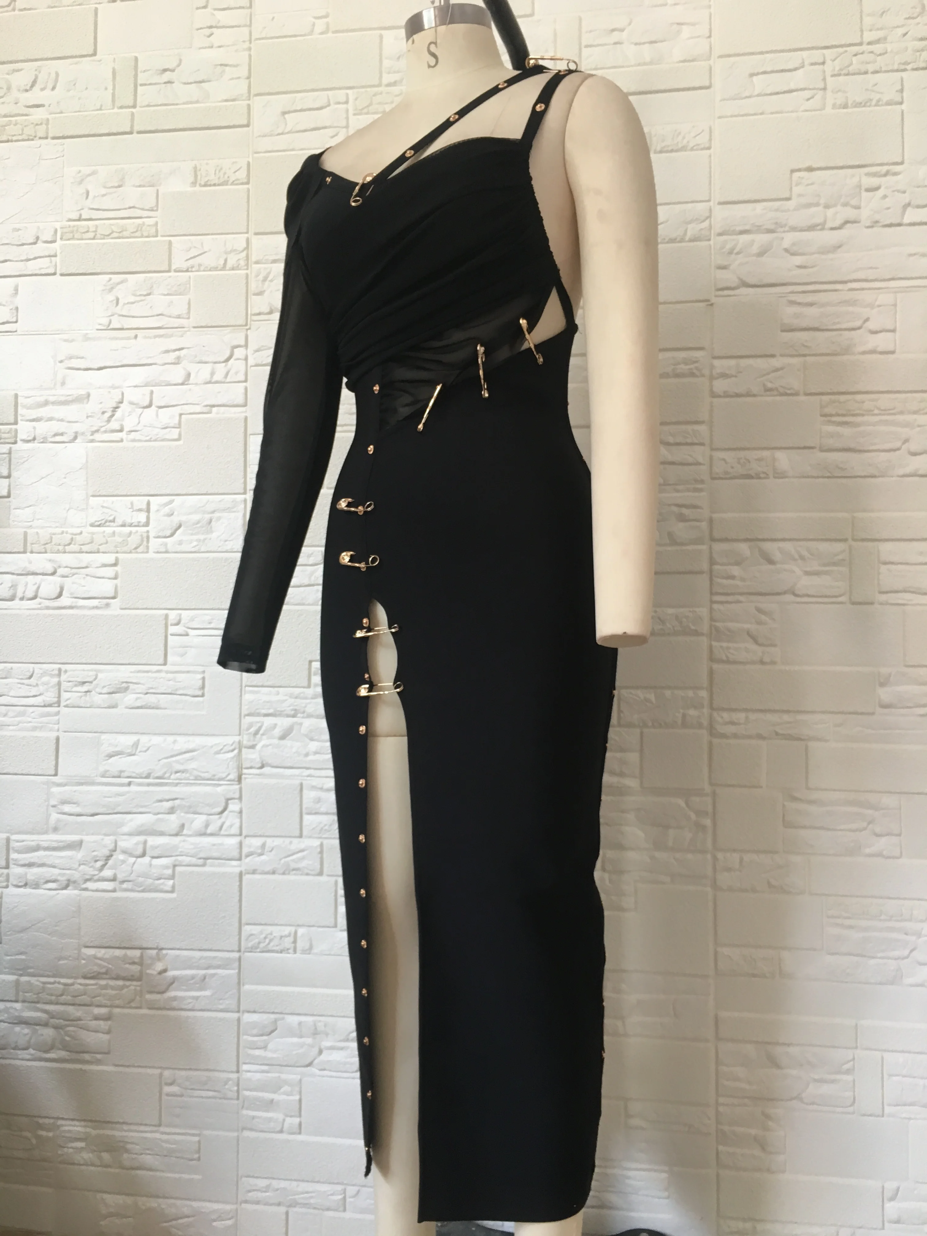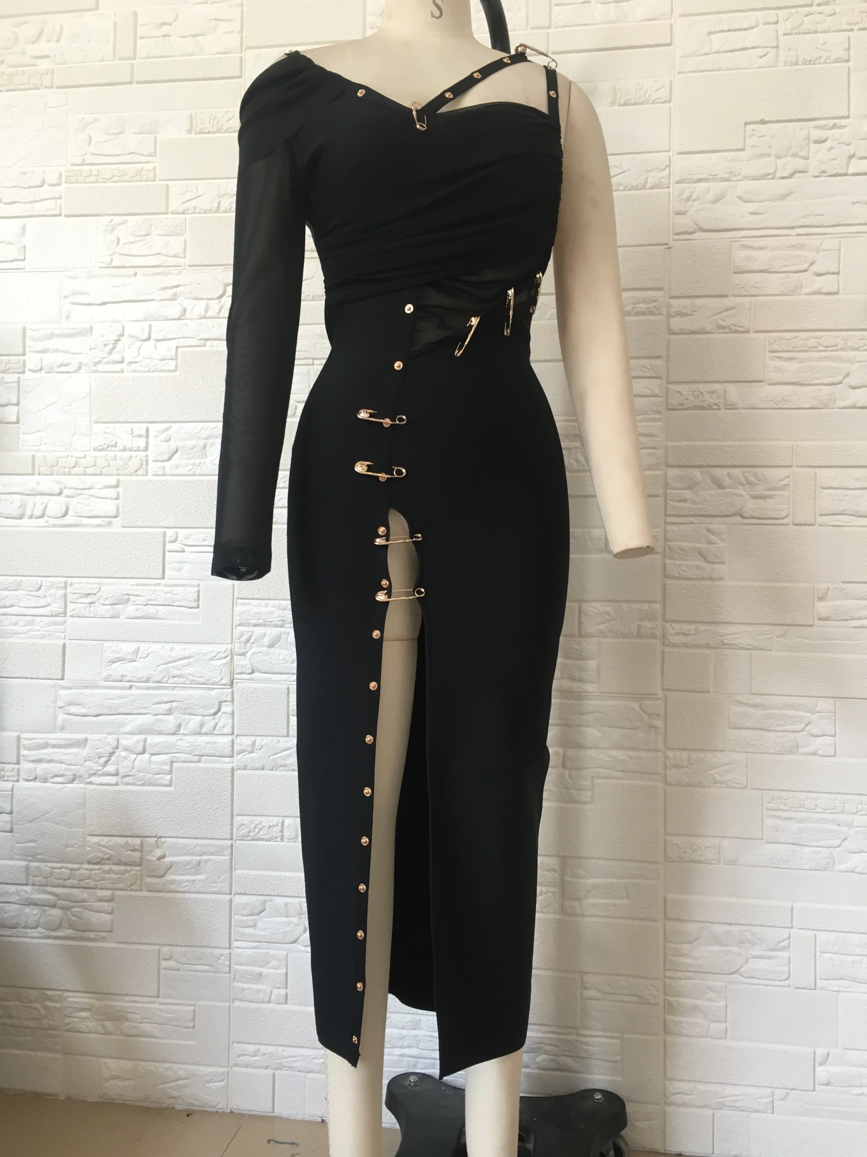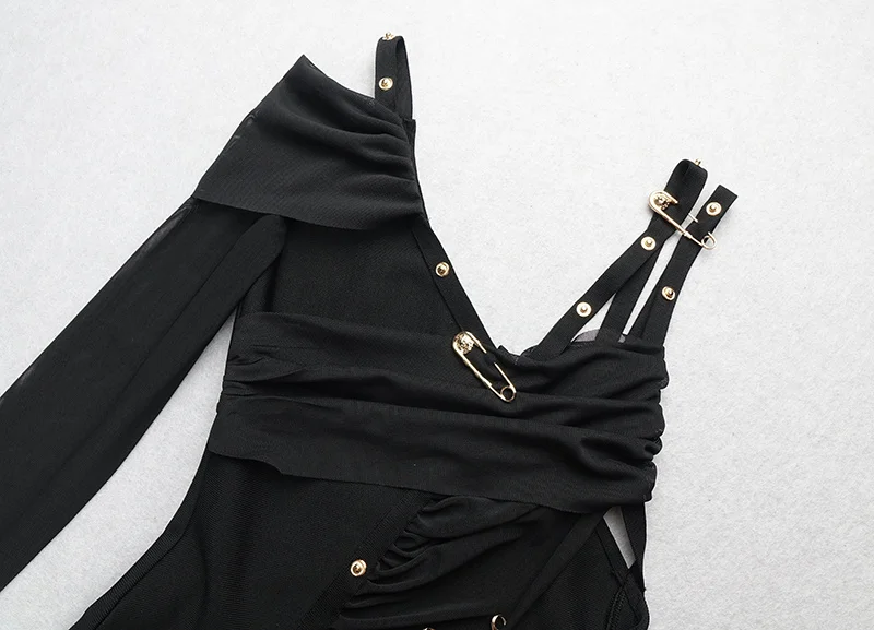 Pbong High Quality Black Long Sleeve One Shoulder Open Fork Rayon Bandage Dress Cocktail Party Bodycon Dress