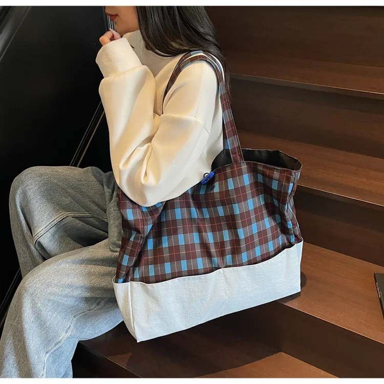 Pbong Korean Canvas Shoulder Shopper Bag for Women Zipper Large Woman Tote Bookbag Fashion Brand Female Handbags Sac A Main Femme