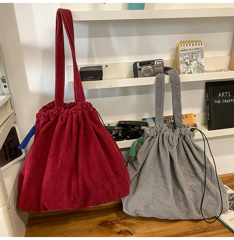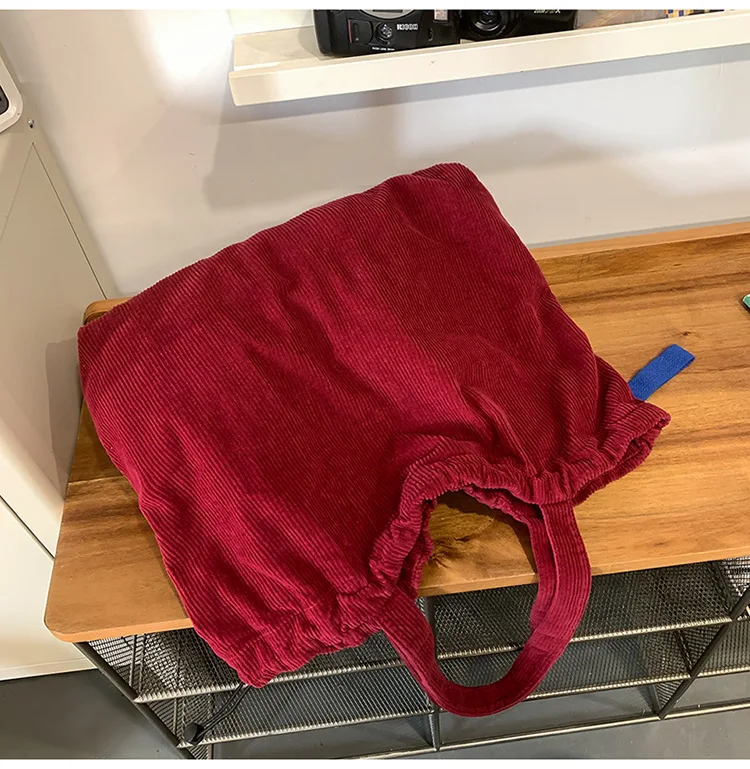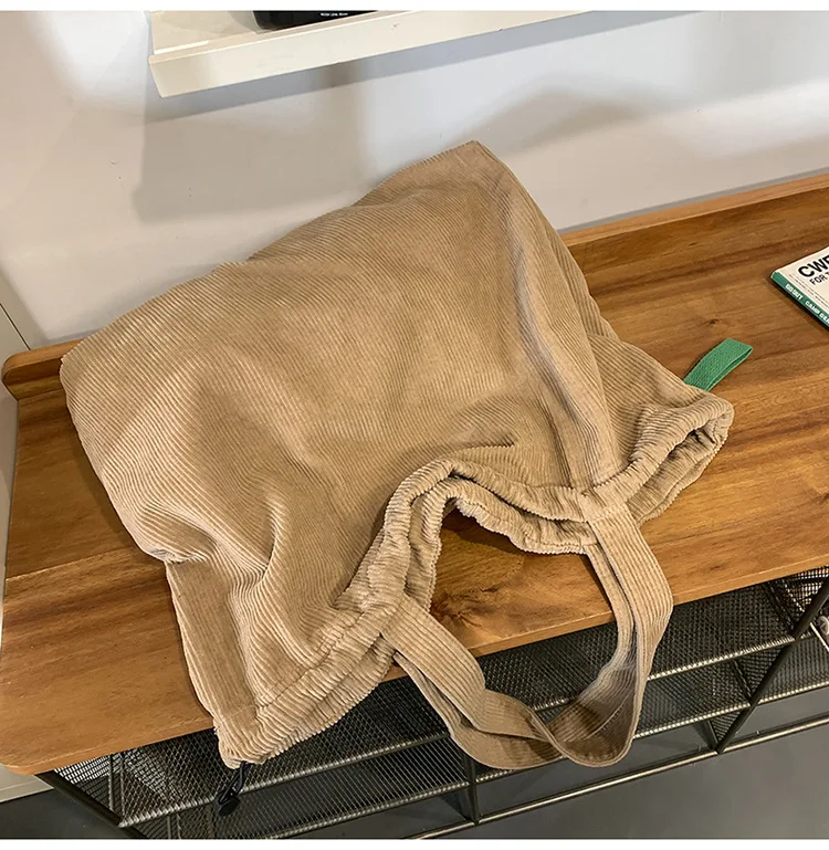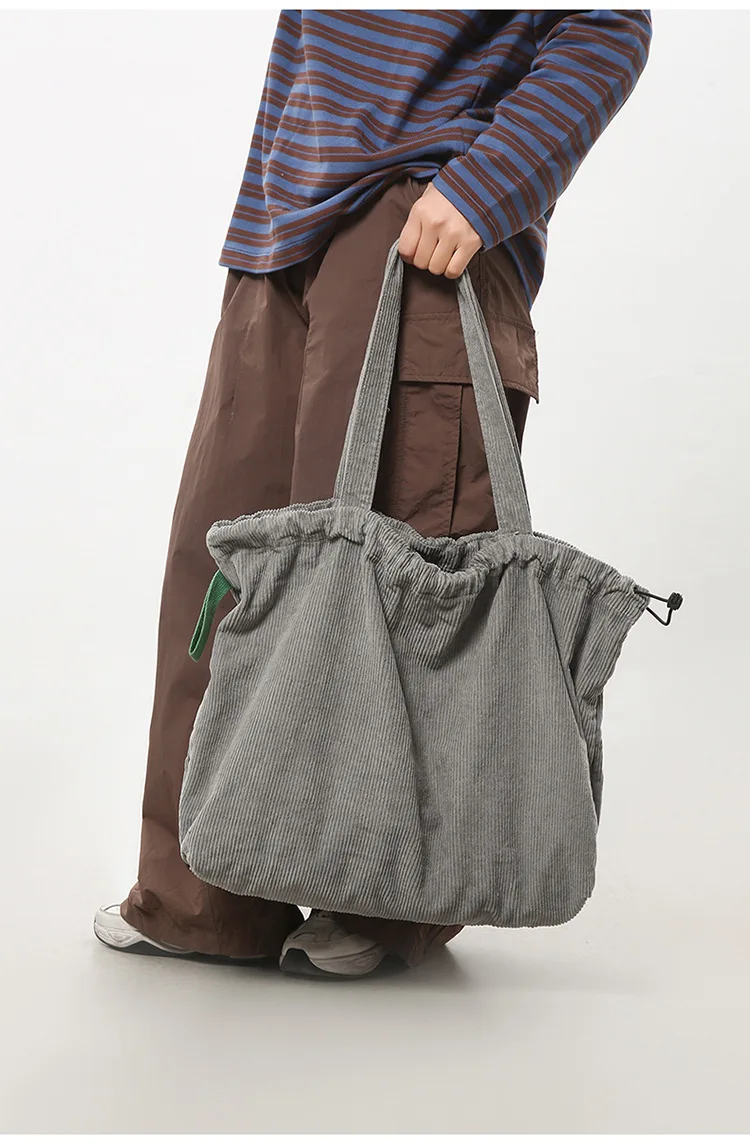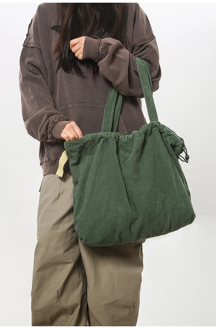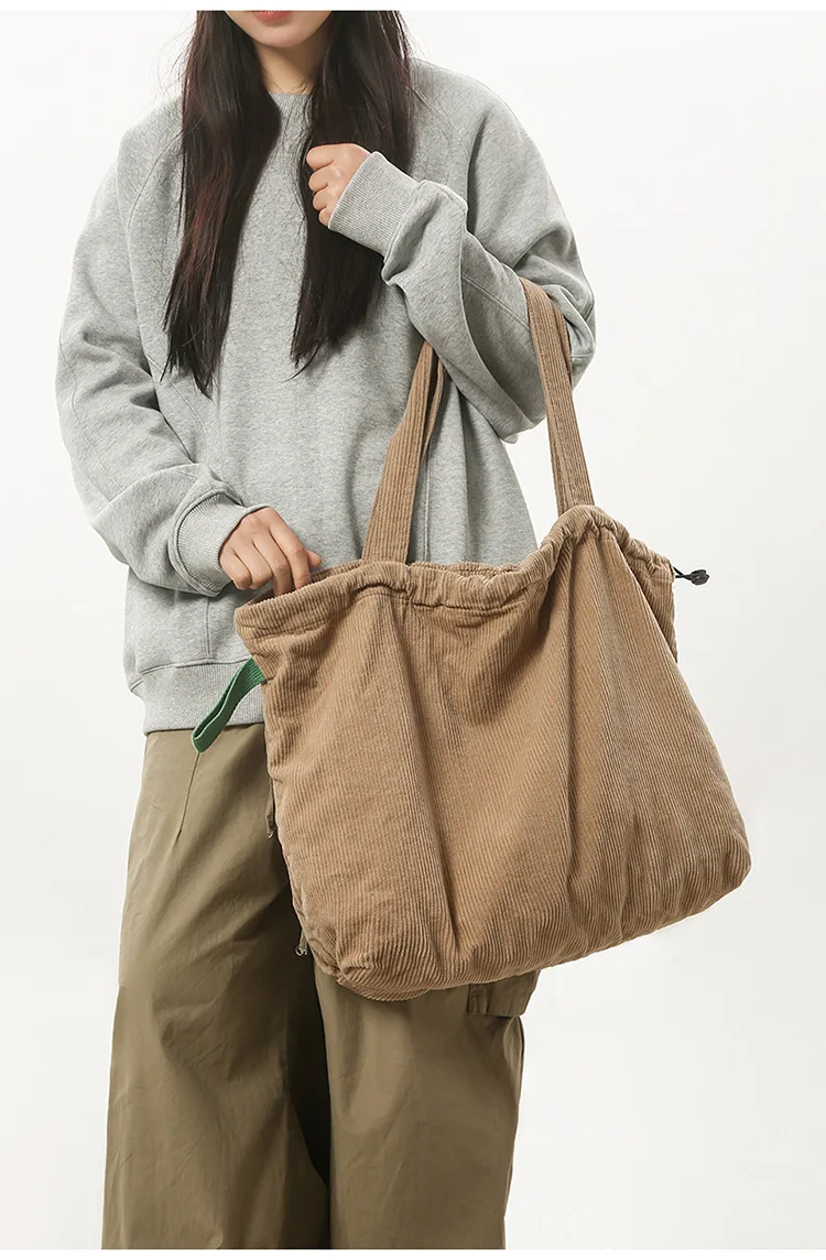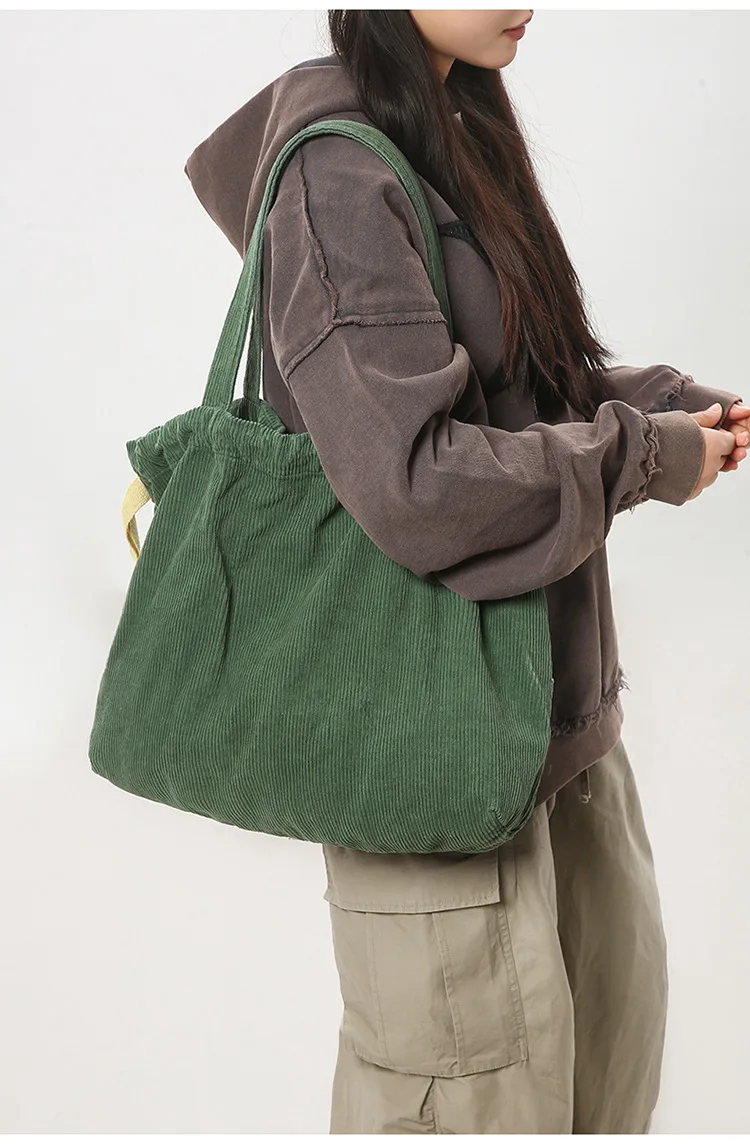 Pbong Korean Canvas Women Shoulder Bag Female Student Tote Shopper Bag Large Fashion Corduroy Ladies Hand Bags Woman Handbags