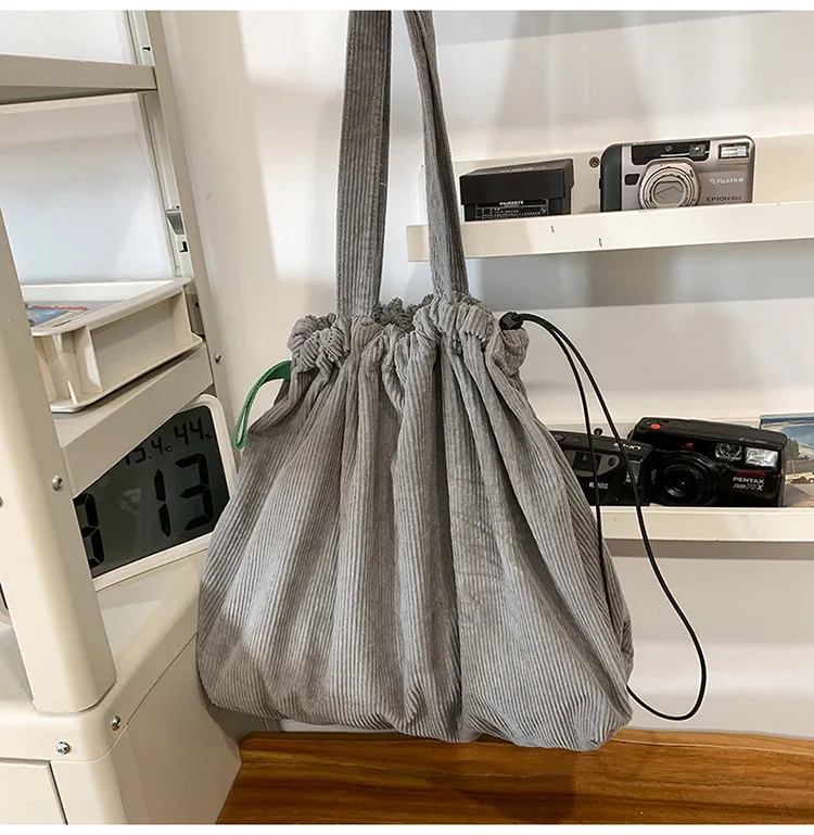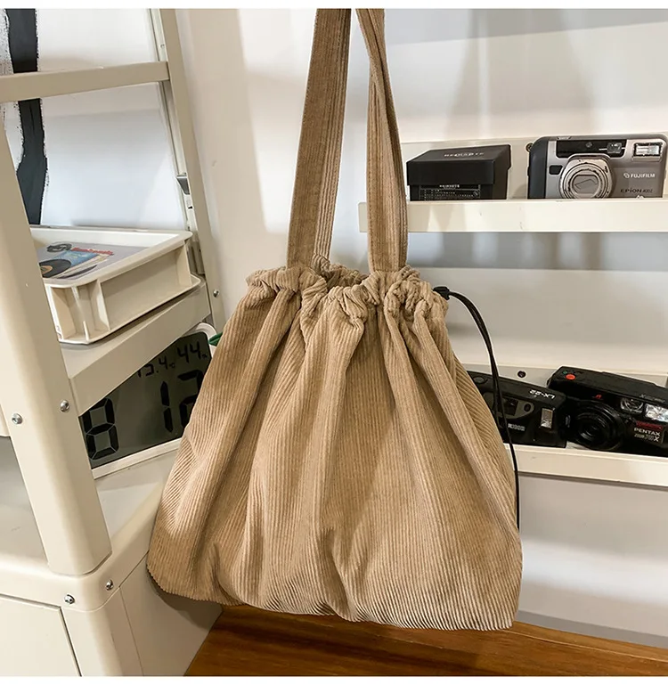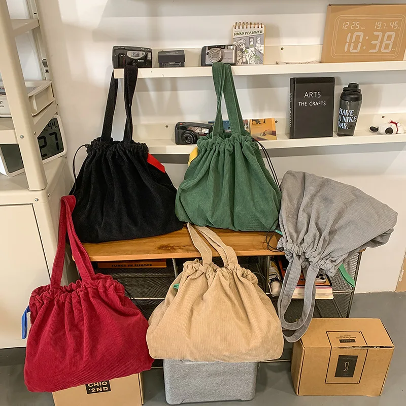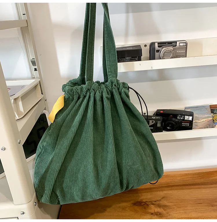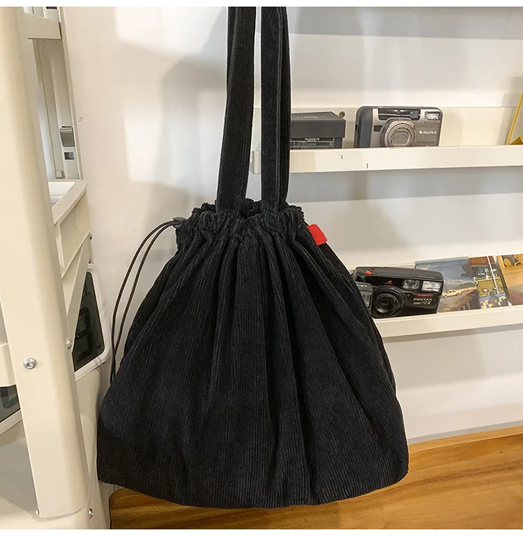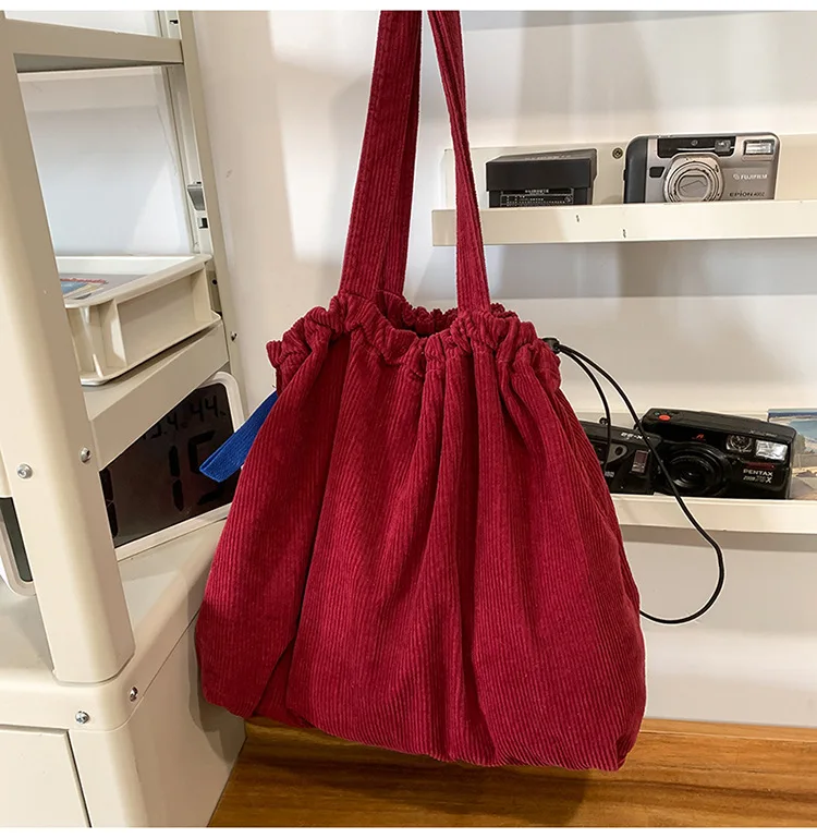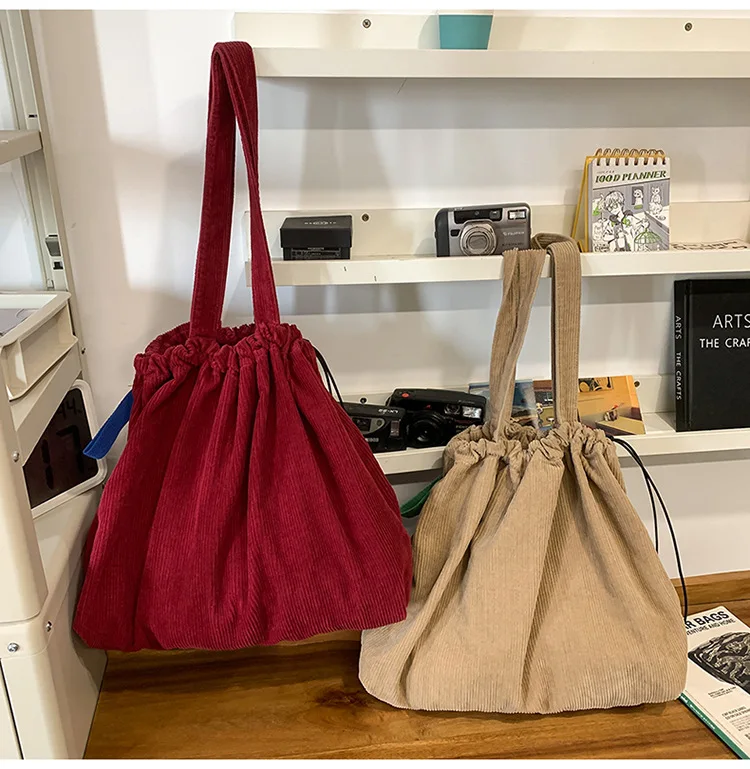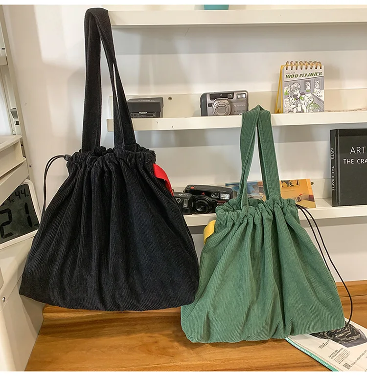 Pbong Korean Canvas Women Shoulder Bag Female Student Tote Shopper Bag Large Fashion Corduroy Ladies Hand Bags Woman Handbags