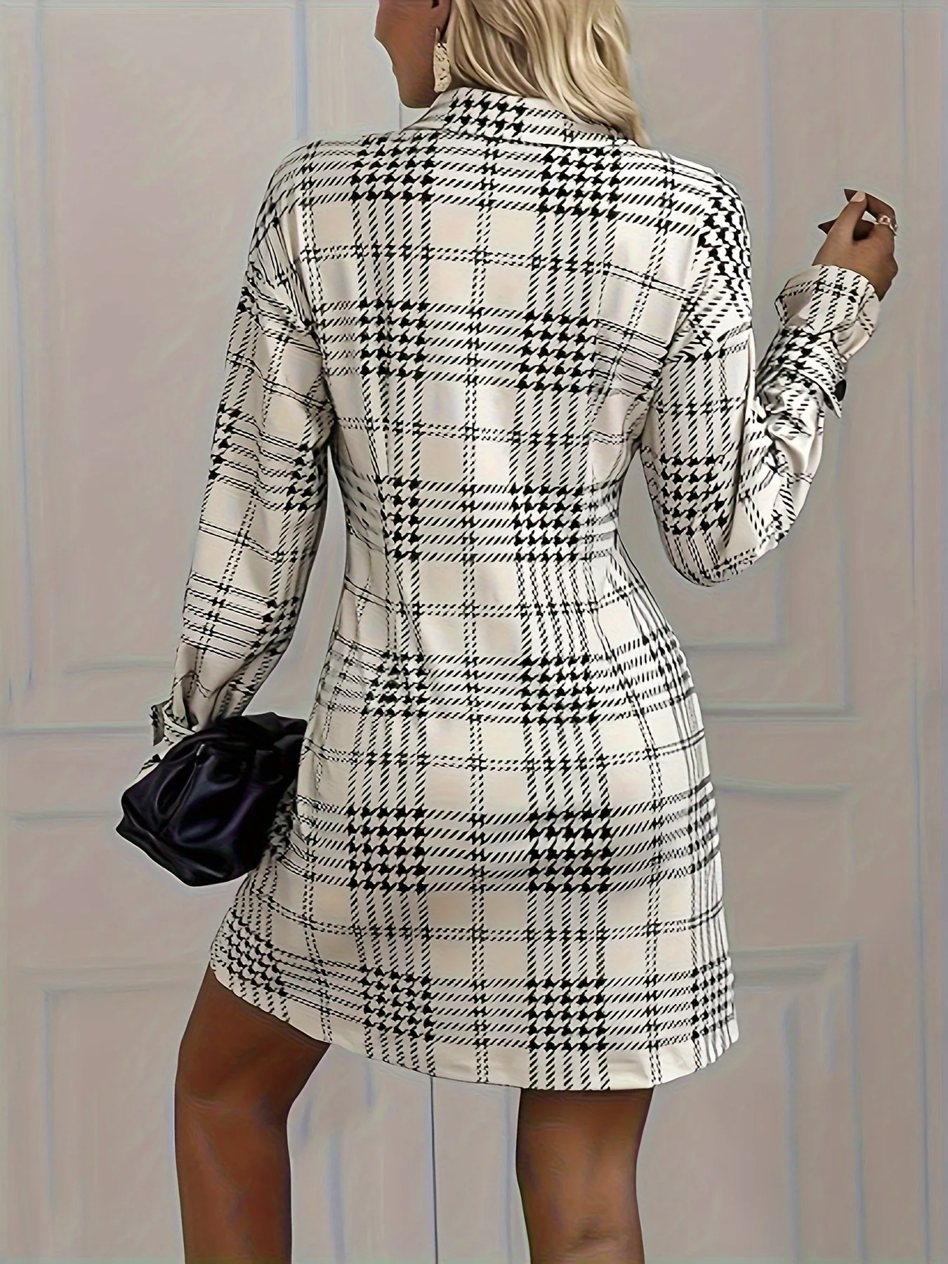 Pbong  Lapel Single-breasted Cardigan Dresses Spring Autumn Lady Long Sleeves VestidosStreetwear Fashion Checkered Print DressesCasual