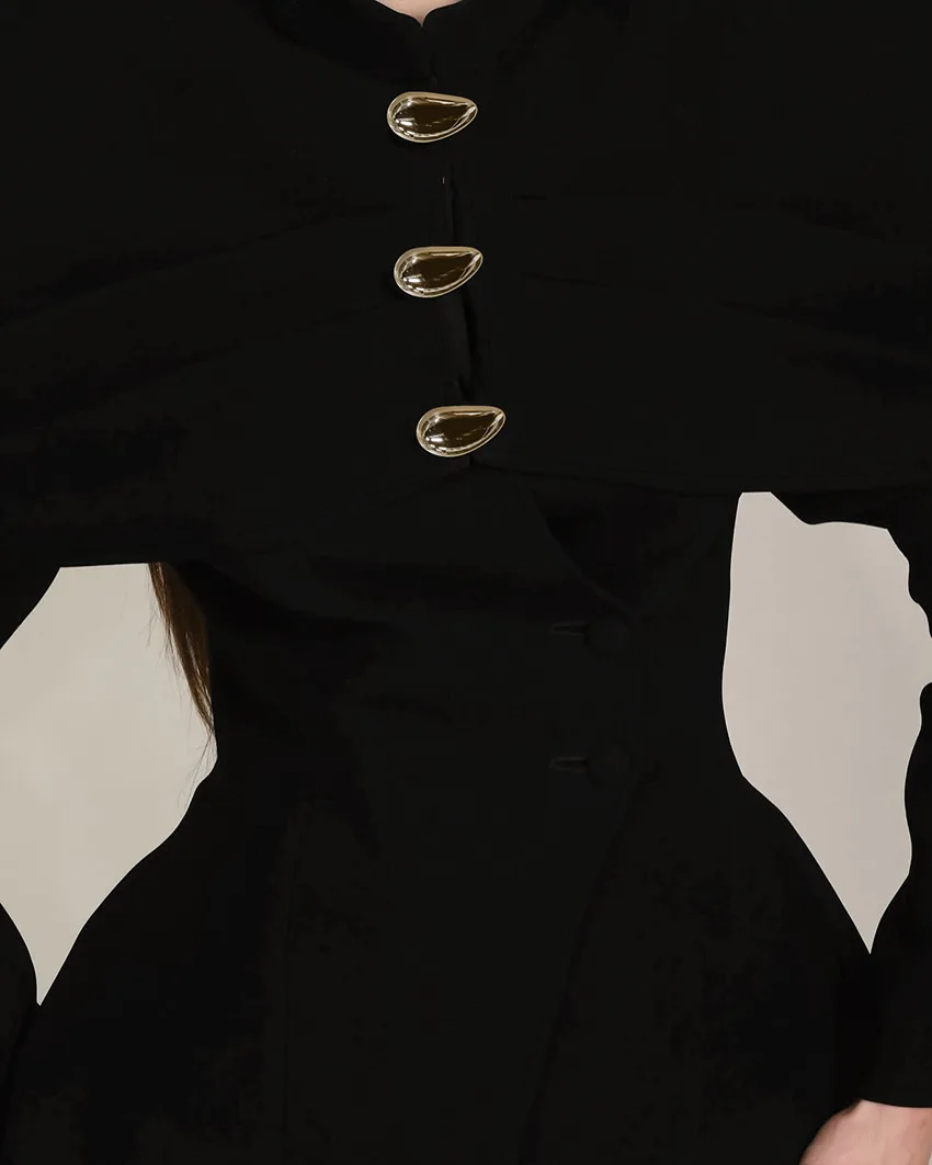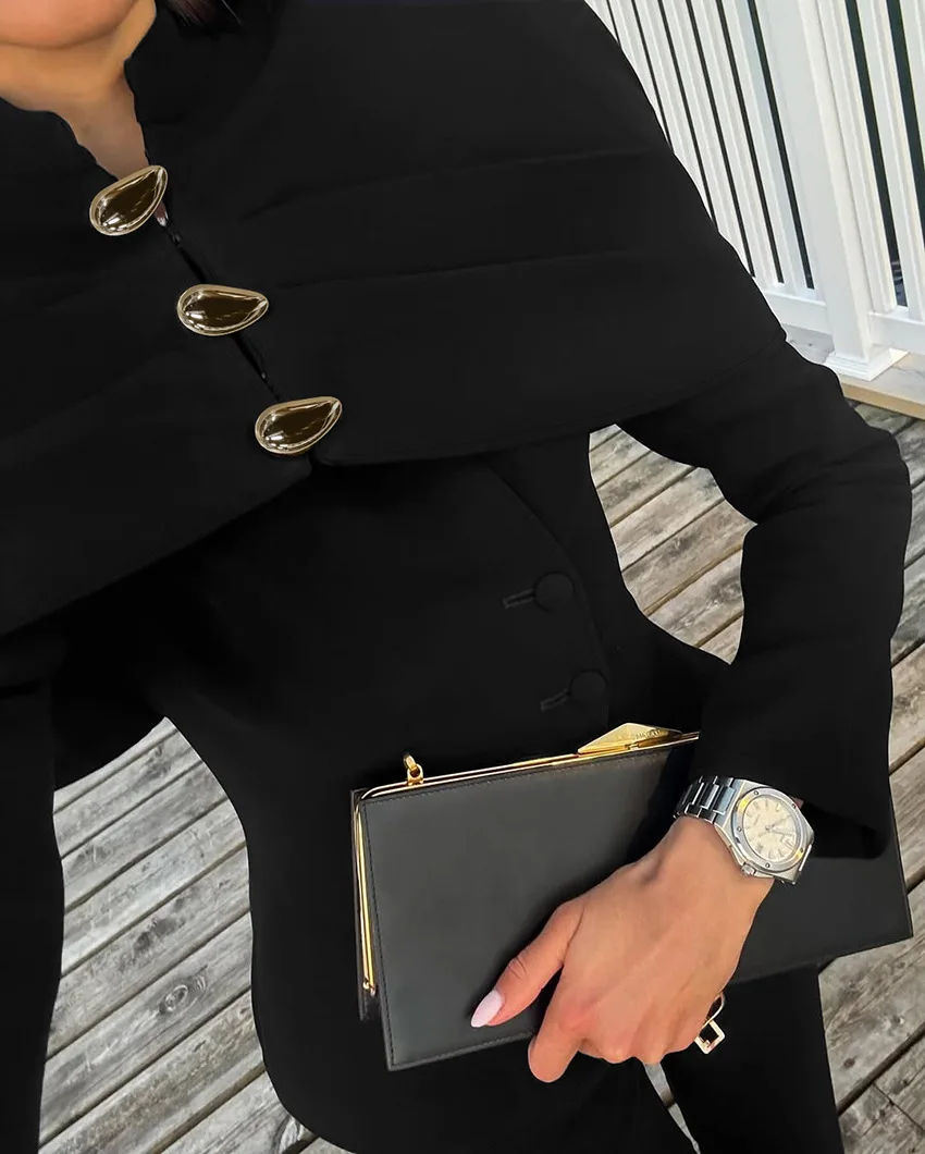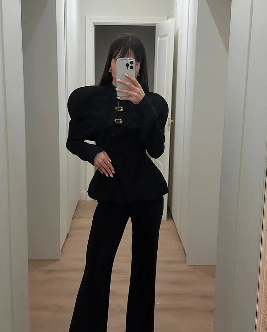 Pbong New Autumn Fashion Solid Shawl Waist Cinching Coat Women Elegant Round Neck Full Sleeve Slim Short Jackets Lady Streetwear