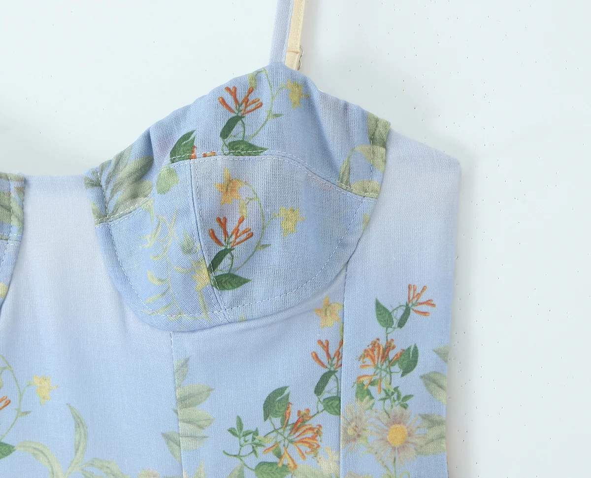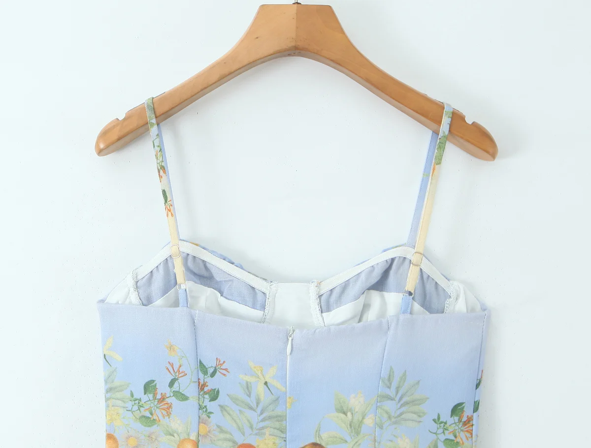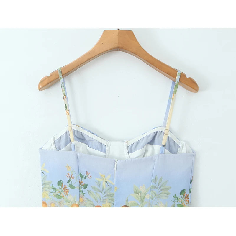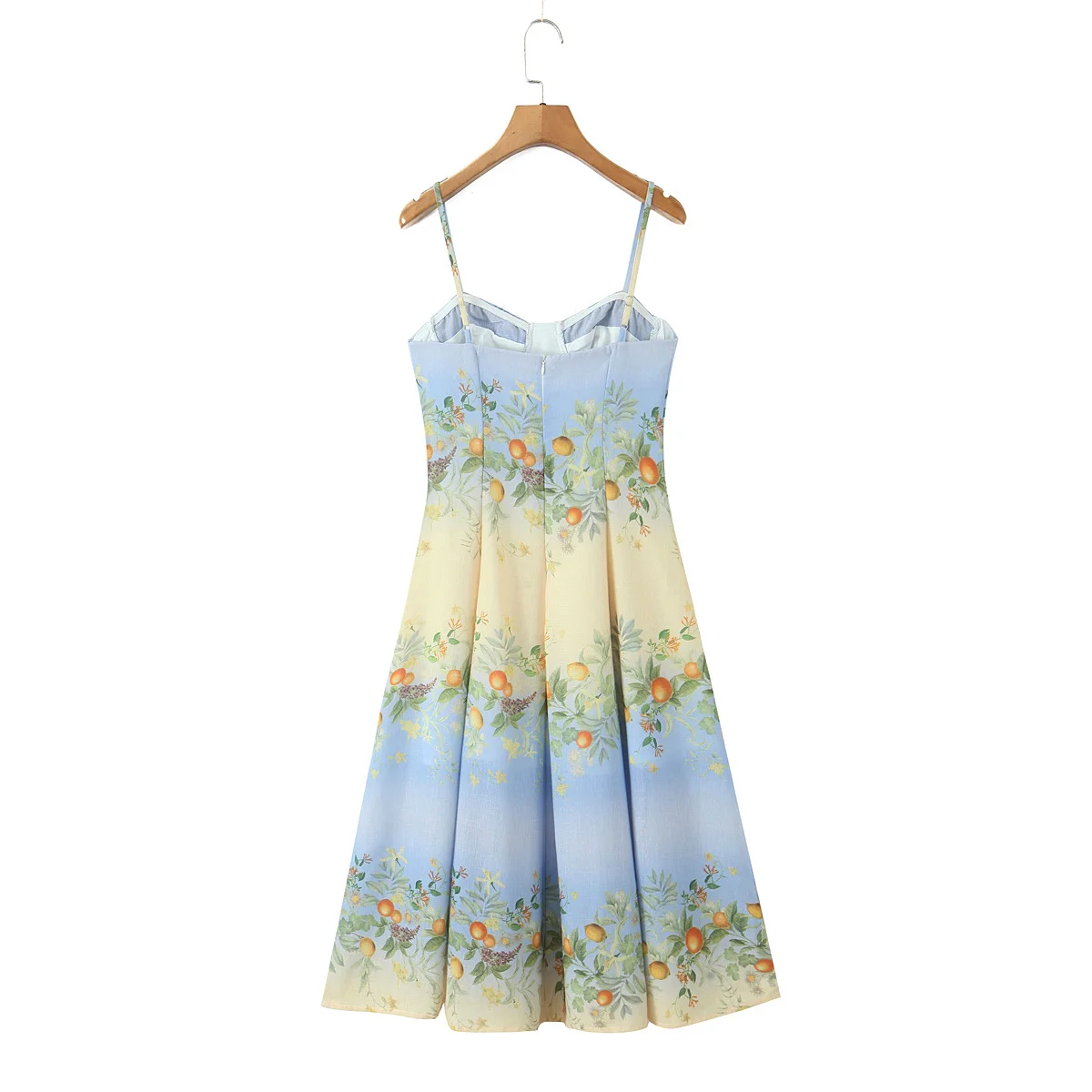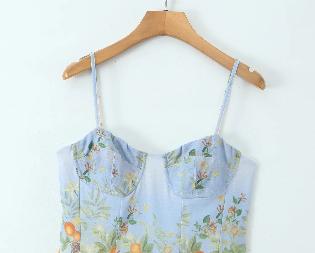 Pbong Sexy Spaghetti Straps Floral Print Boho Dresses Women Elegant A-line Midi Summer Vacation Dress Robe