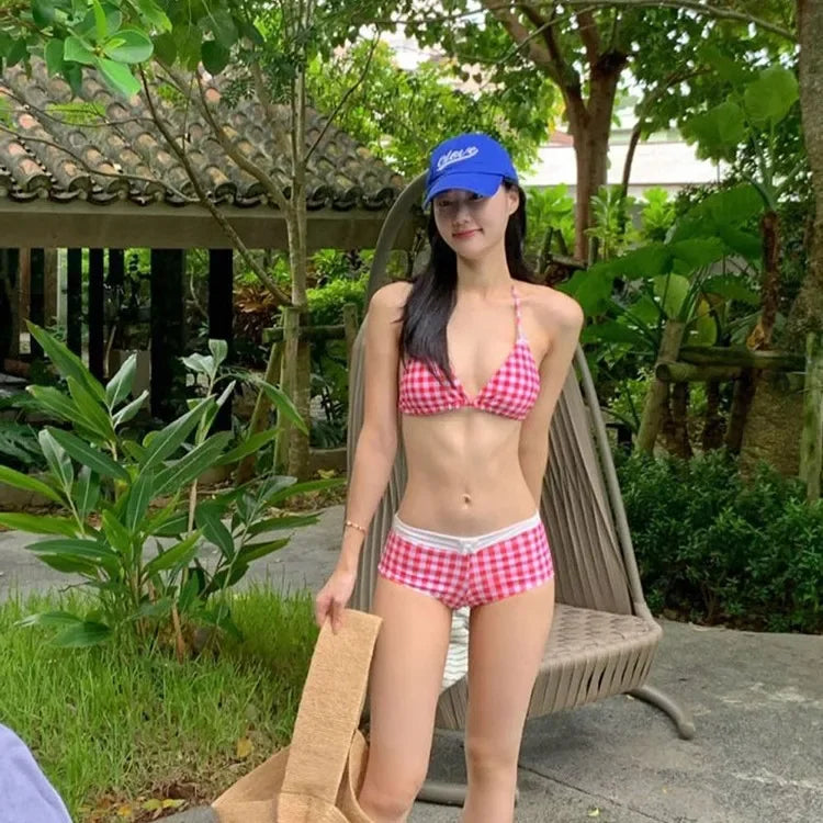 Pbong Sexy Two-Piece Bikini Swimwear Women's Korean Style Hot Spring Suit Small Chest Gathered Baseini Thermal Spa Swimsuit