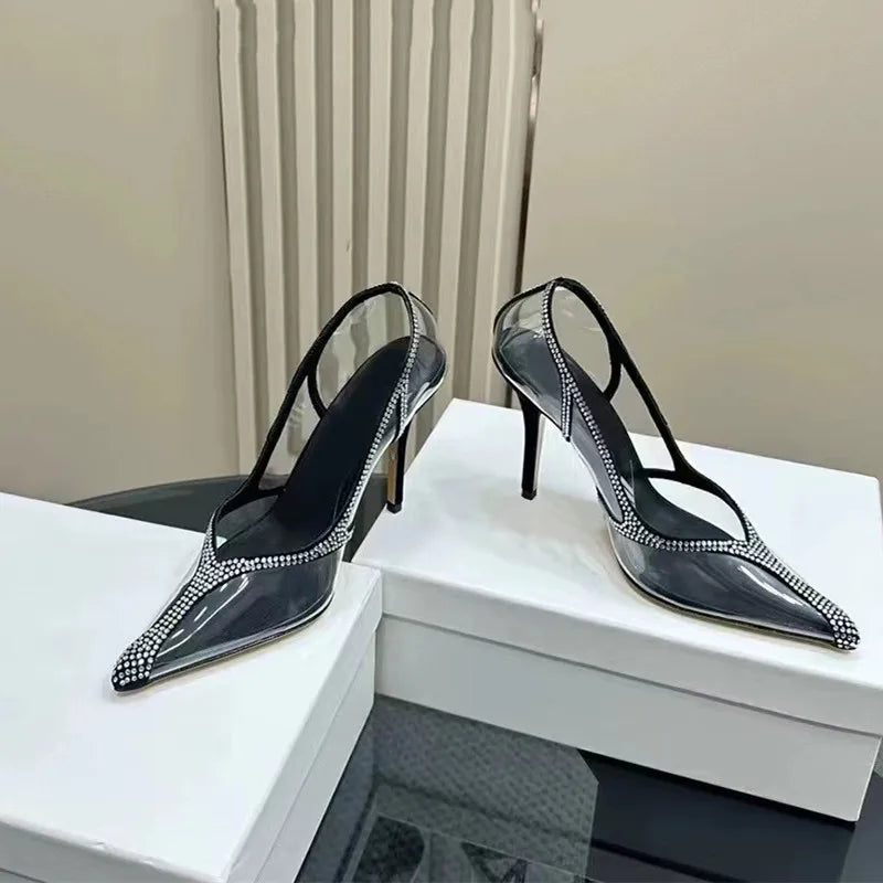 Pbong Star style Luxury Rhinestones Transparent PVC Women Pumps Elegant Pointed toe Thin High heels Crystal Wedding Bridals Shoes