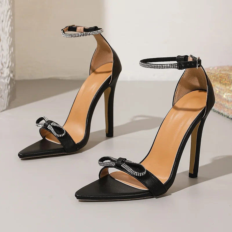 Pbong Summer Fashion Crystal Butterfly-kont Pointed Toe Women Sandals Sexy Thin High Heels Buckle Strap Ladies Shoes